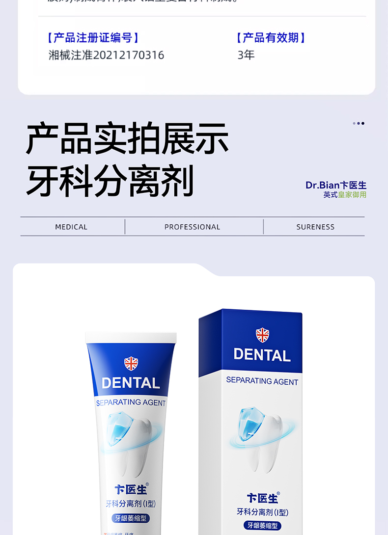[卞医生]英式皇家御用口腔牙科分离剂315认证医用口腔牙膏100g支B