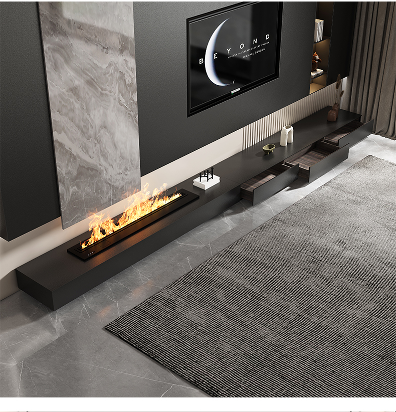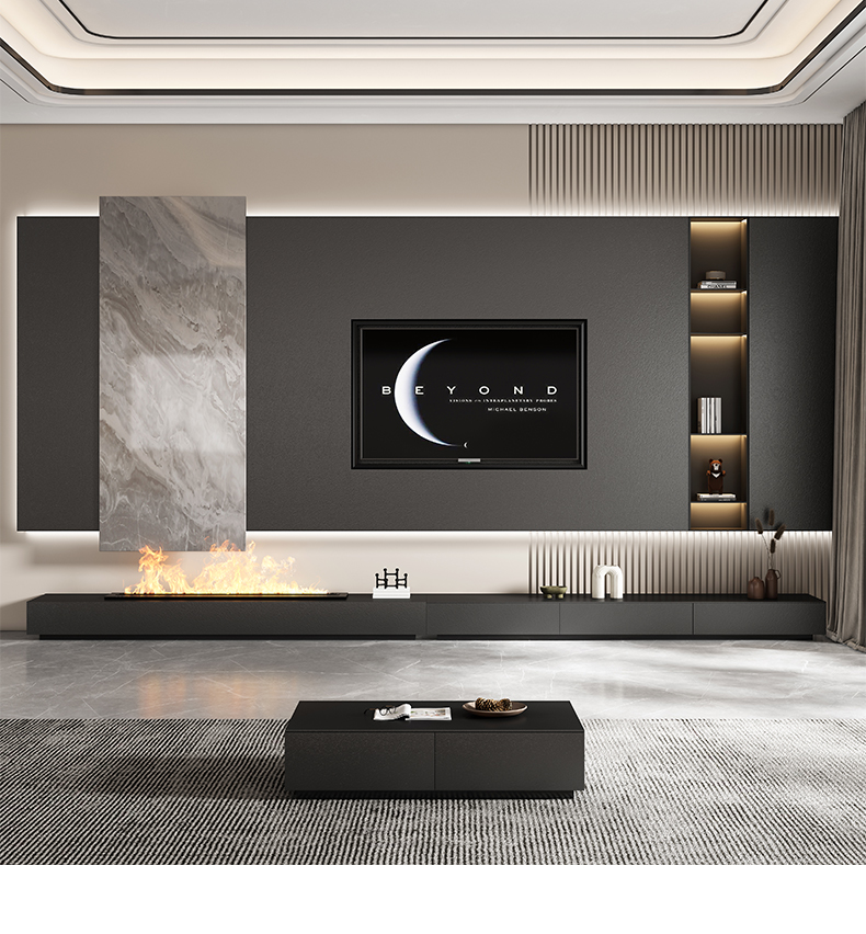 轻奢岩板电视柜地台 仿真火加湿壁炉整装免安装3米储物柜现代极简