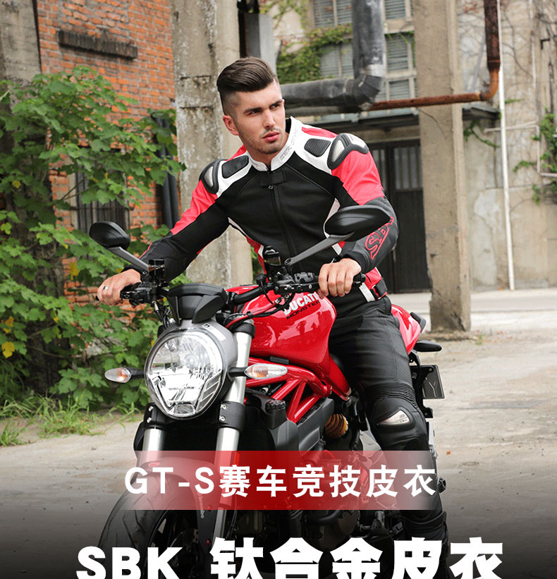 台湾SBK摩托车骑行服牛皮GT-S防摔衣赛车夹克钛合金皮衣带驼峰