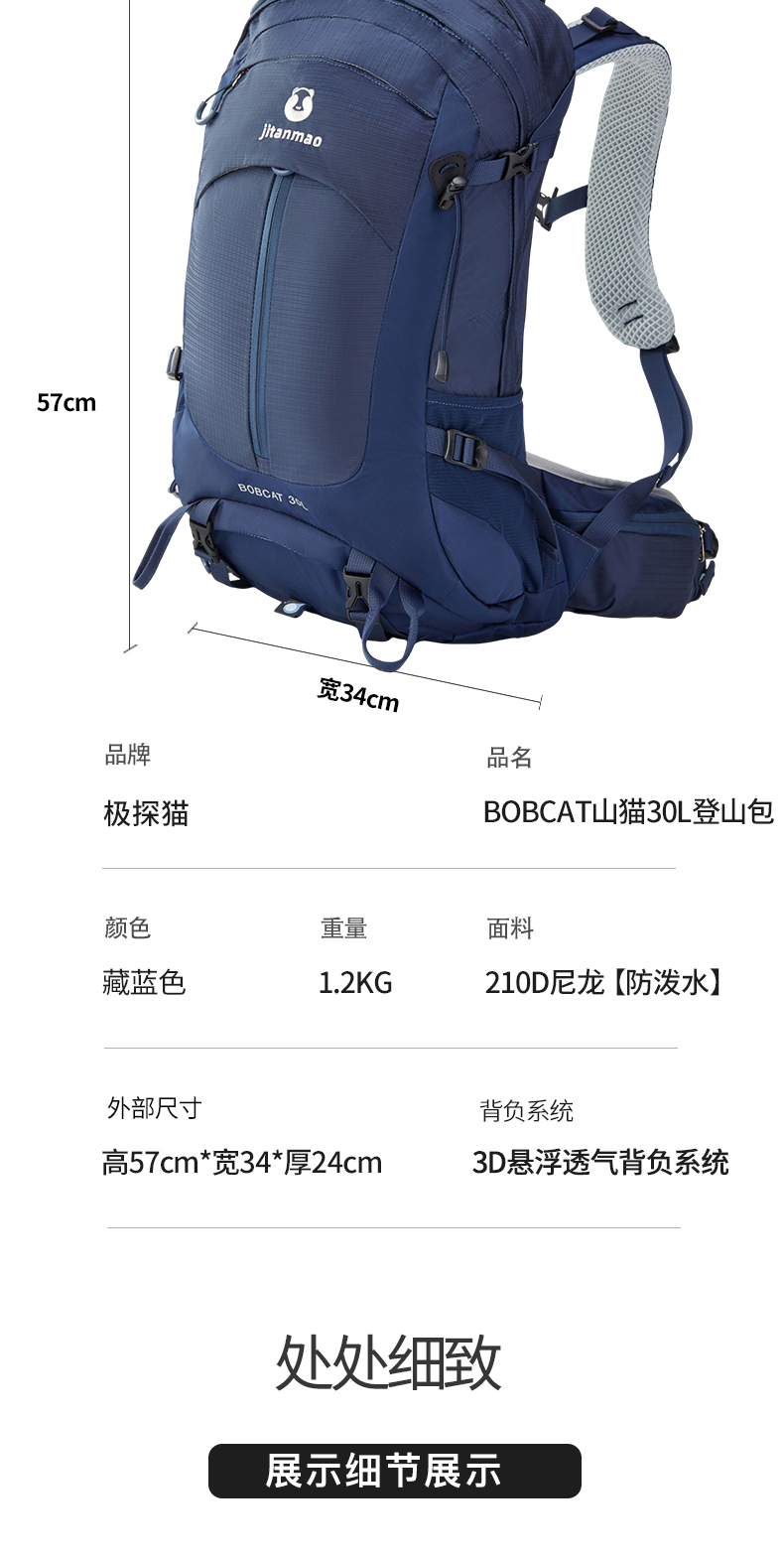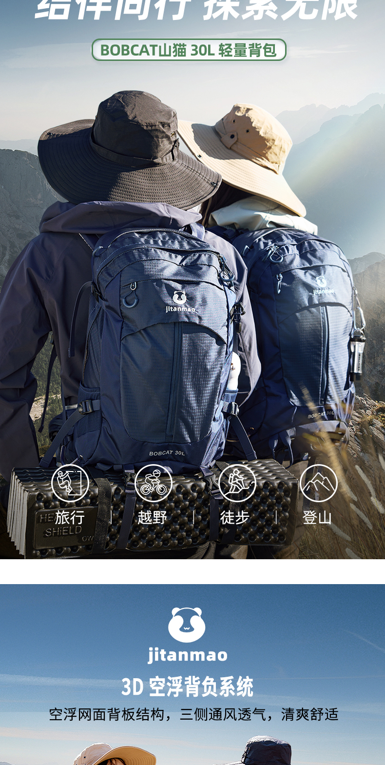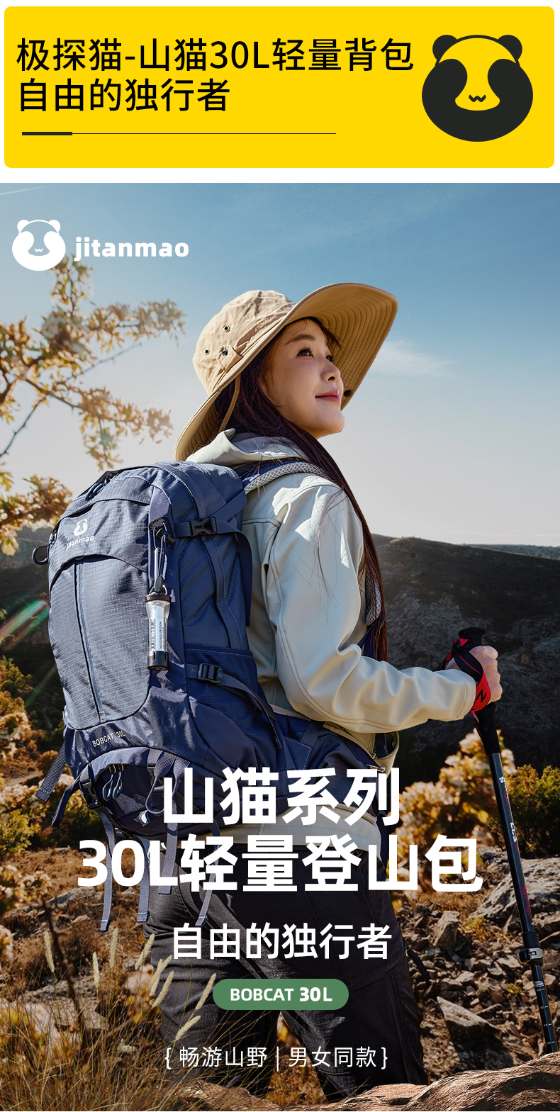 极探猫户外徒步登山包女轻便防水书包旅行露营骑行双肩包男款背包