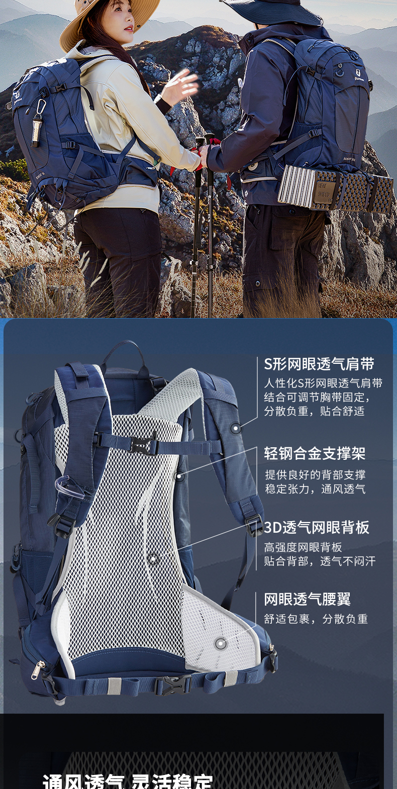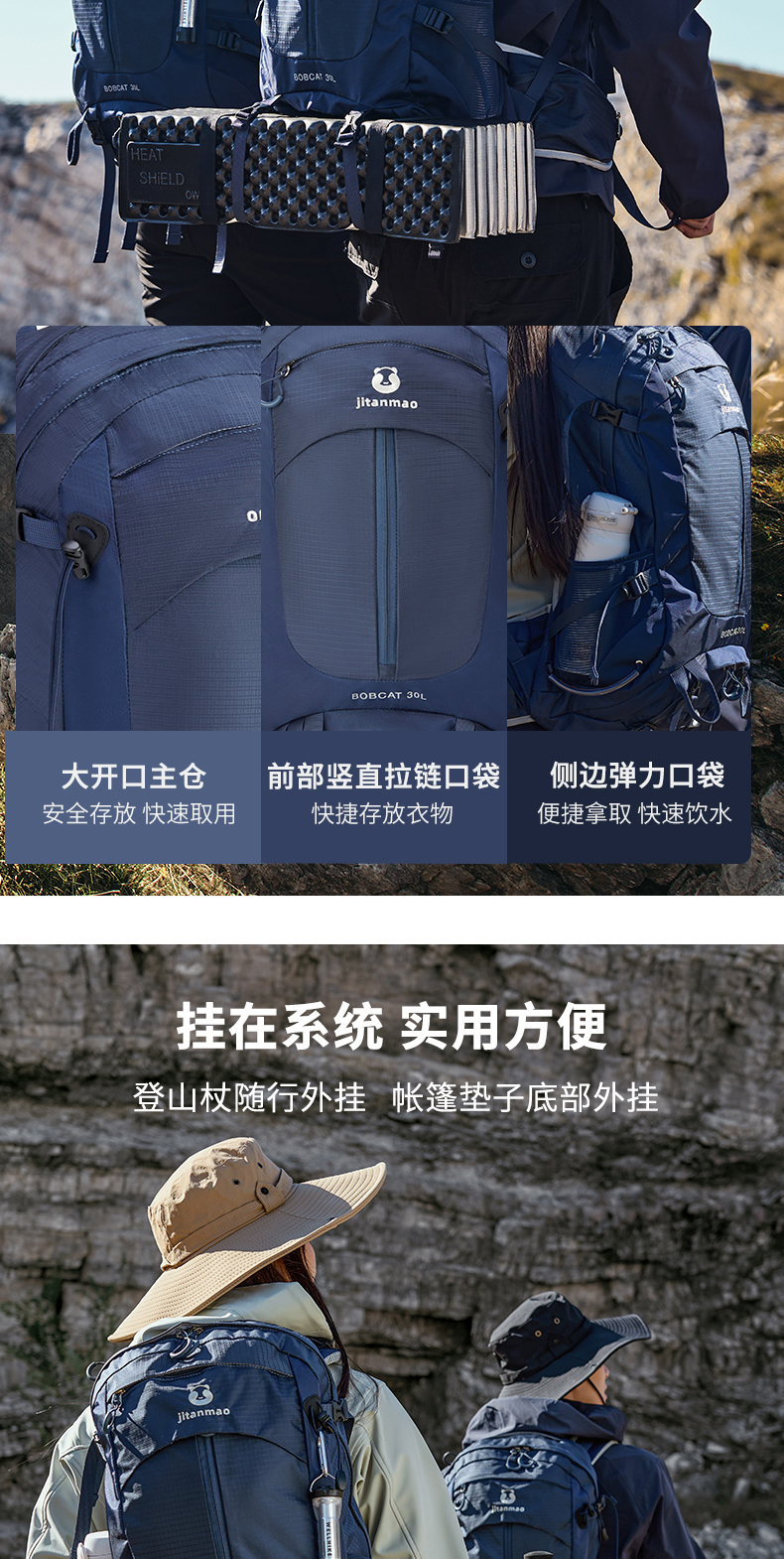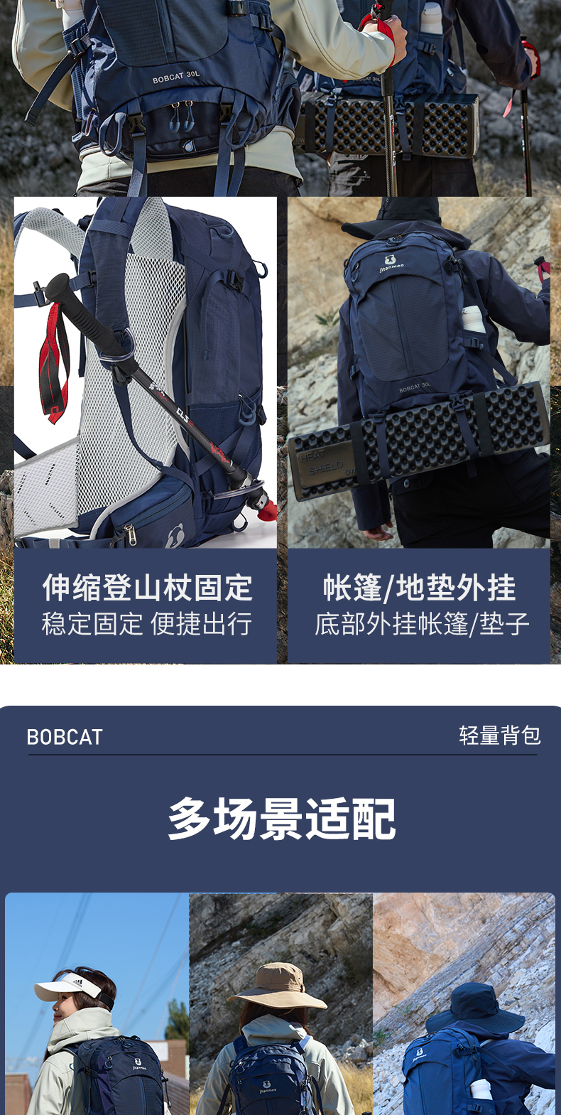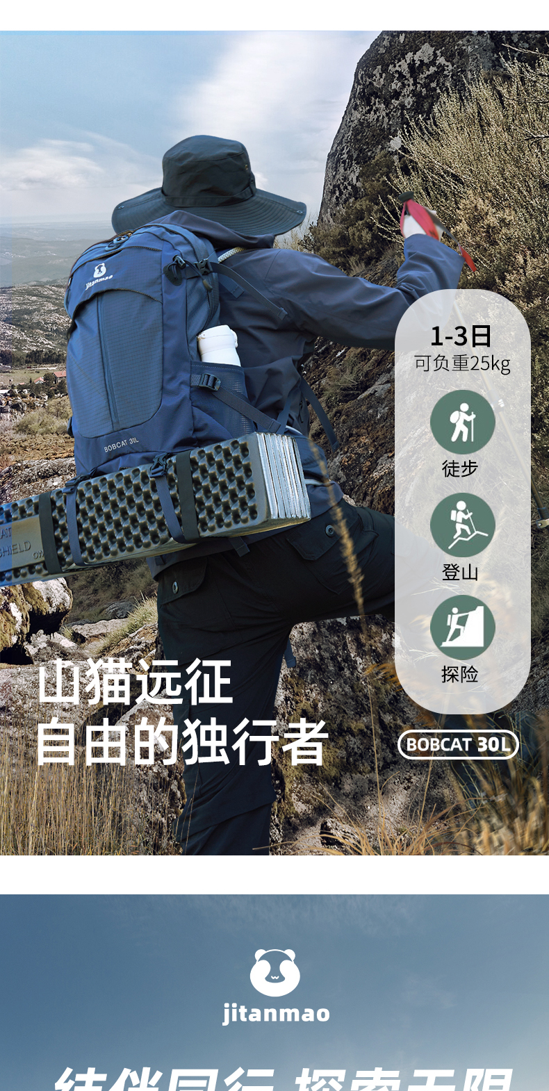 极探猫户外徒步登山包女轻便防水书包旅行露营骑行双肩包男款背包