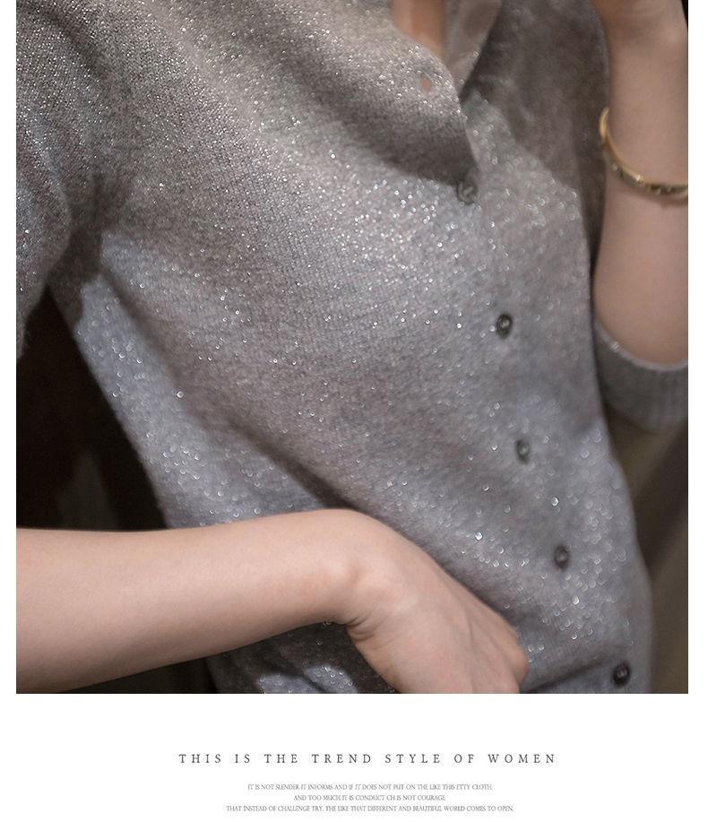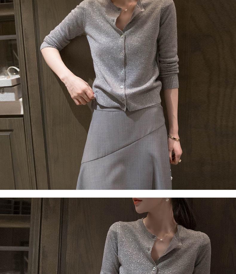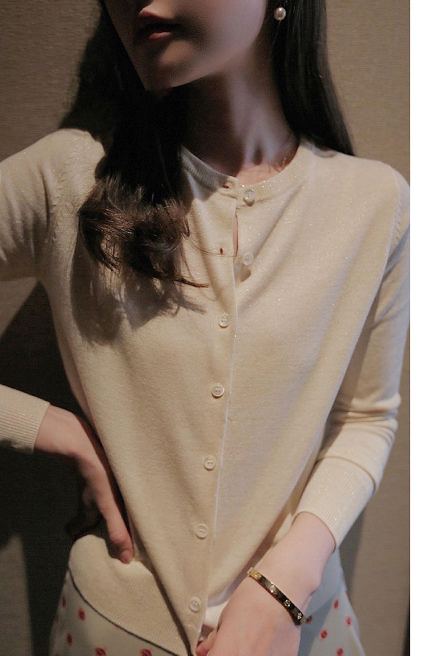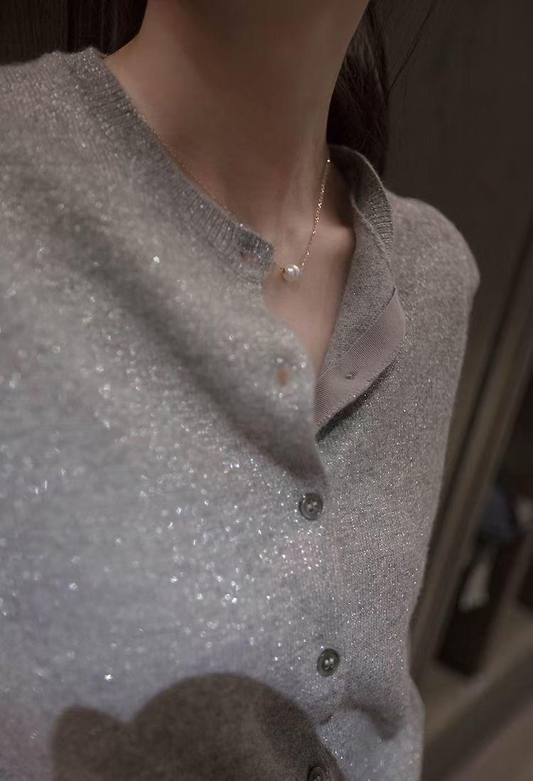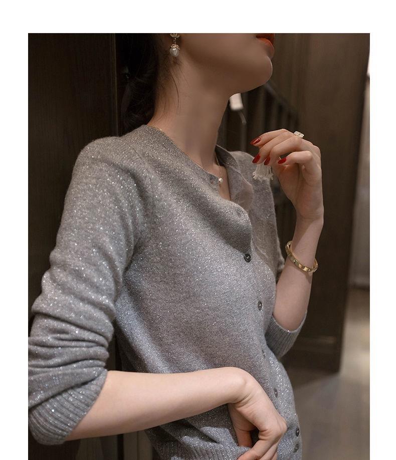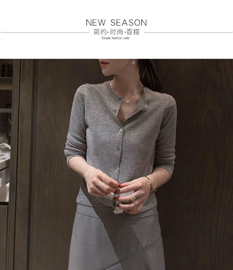 春秋亮丝针织开衫女宽松韩版超薄百搭显瘦短款针织圆领羊毛衫外套