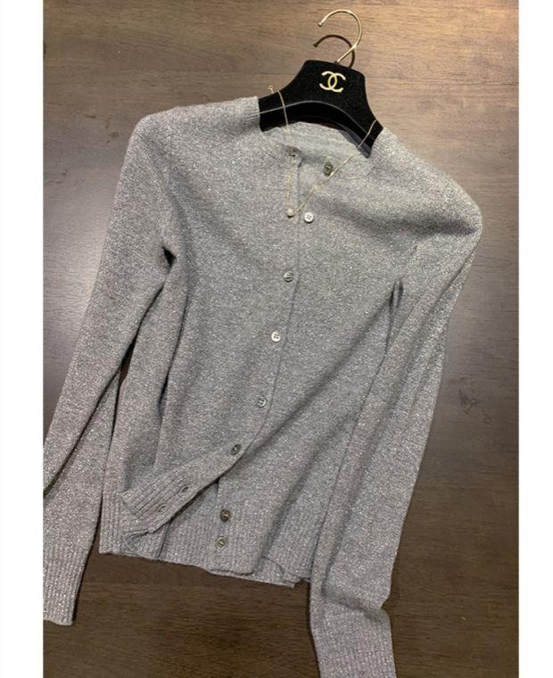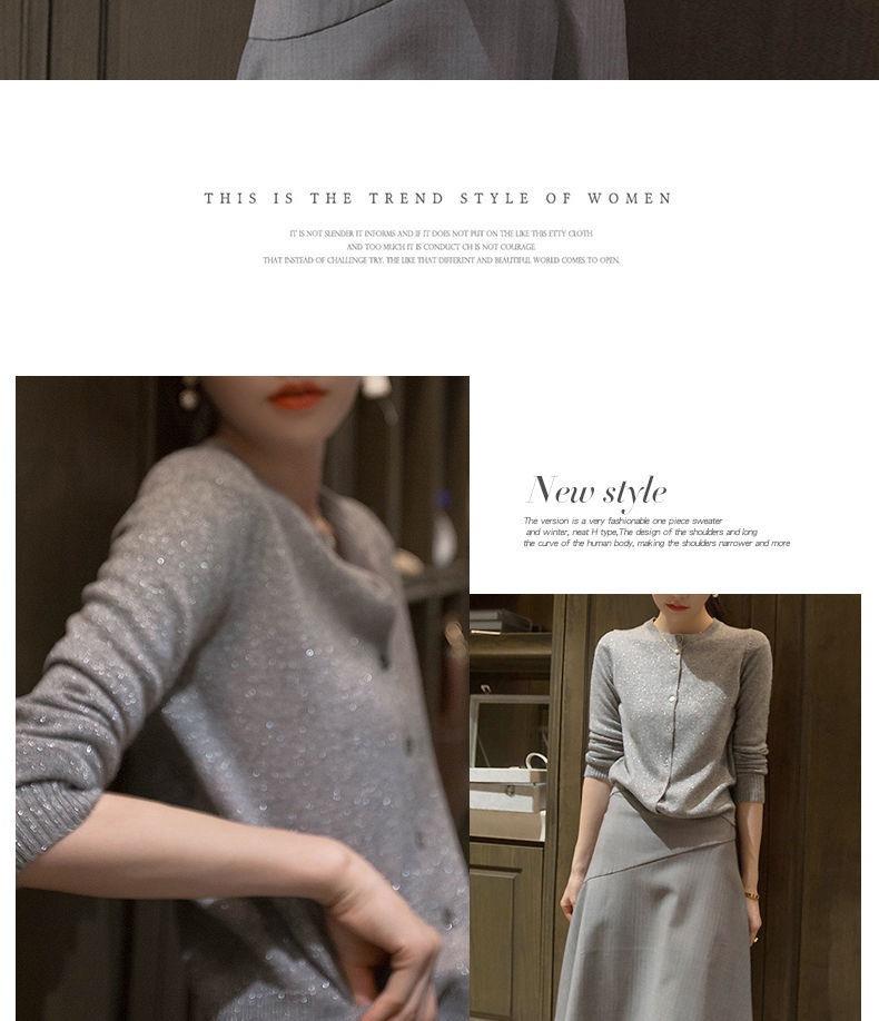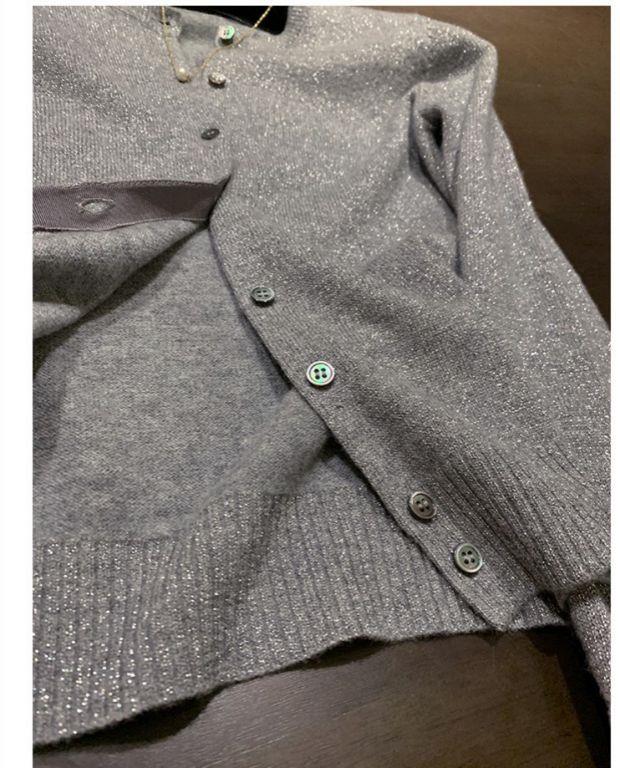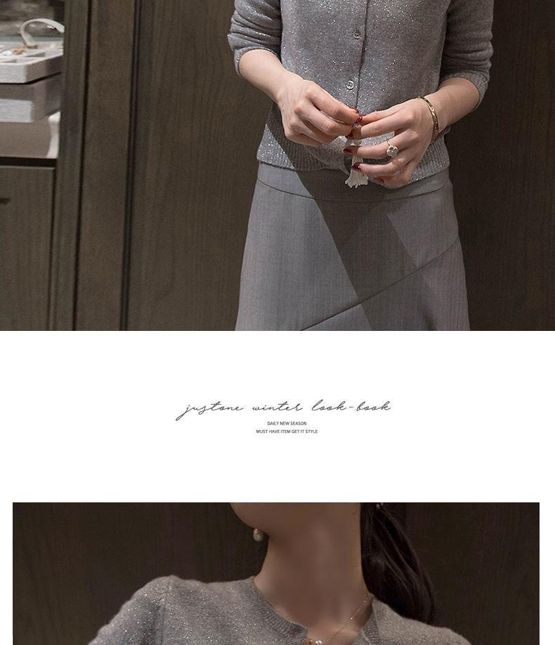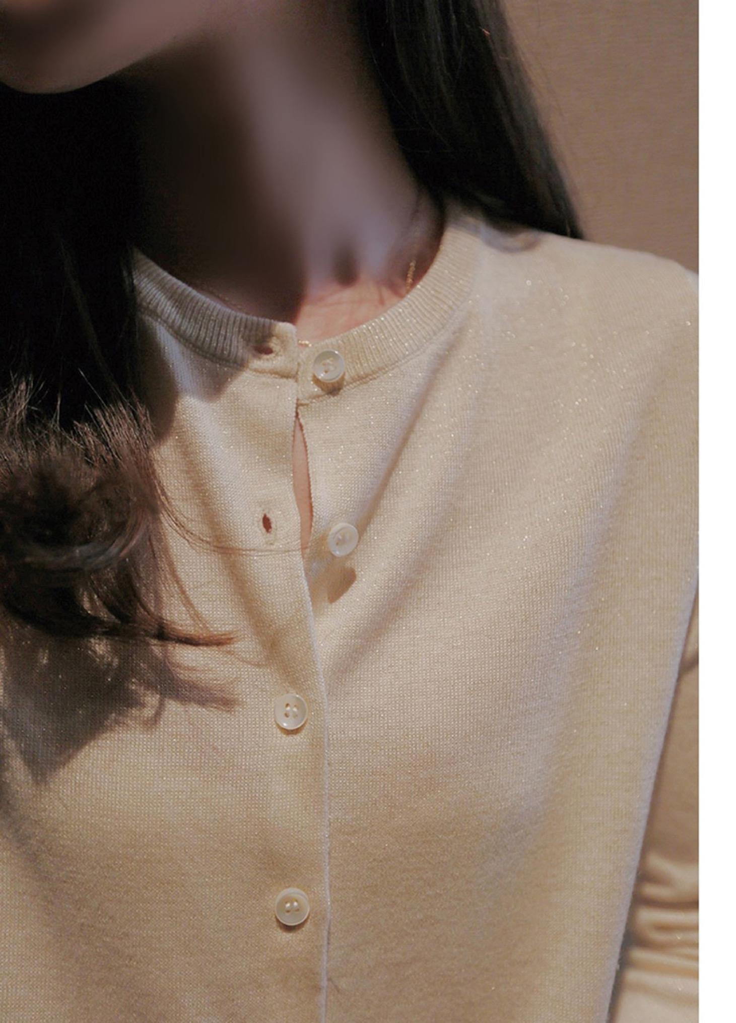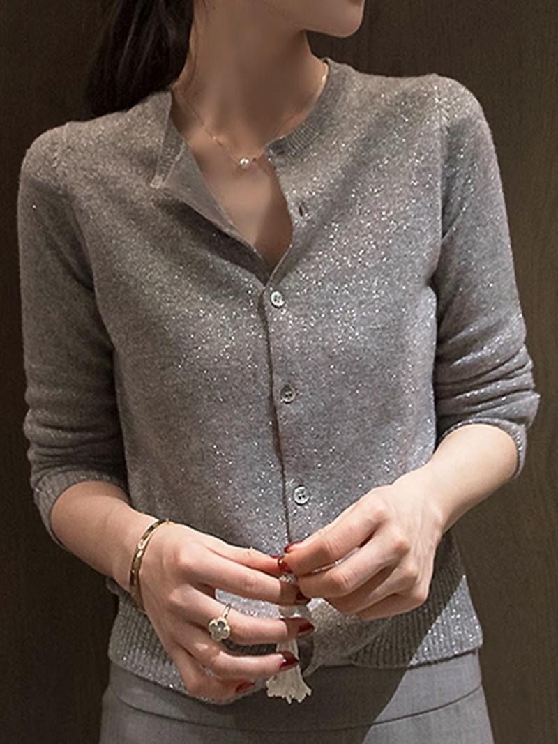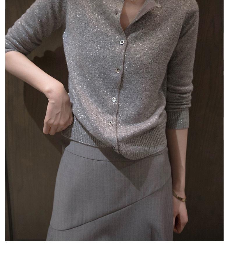 春秋亮丝针织开衫女宽松韩版超薄百搭显瘦短款针织圆领羊毛衫外套