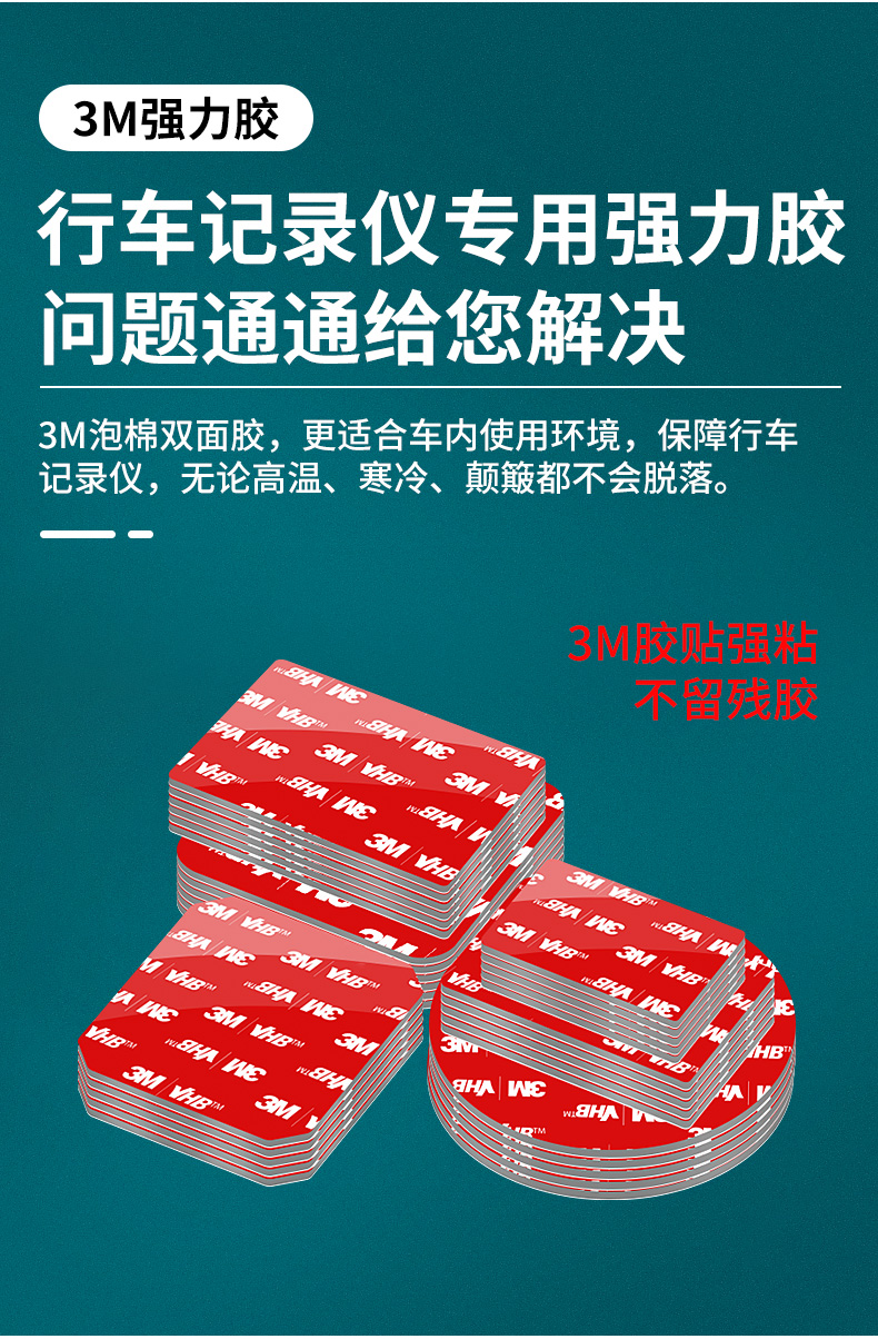 3m行车记录仪360全景行车记录仪固定贴专用双面胶强力粘胶车用