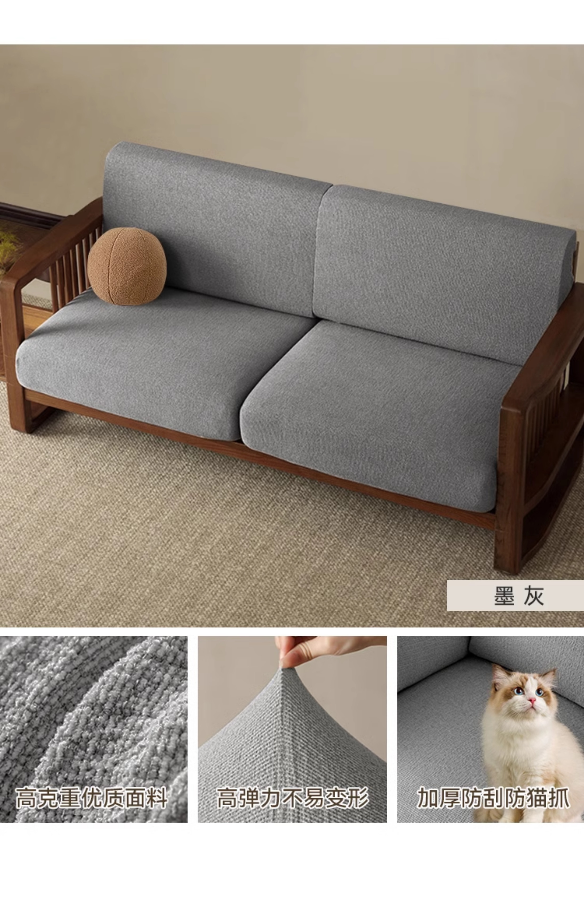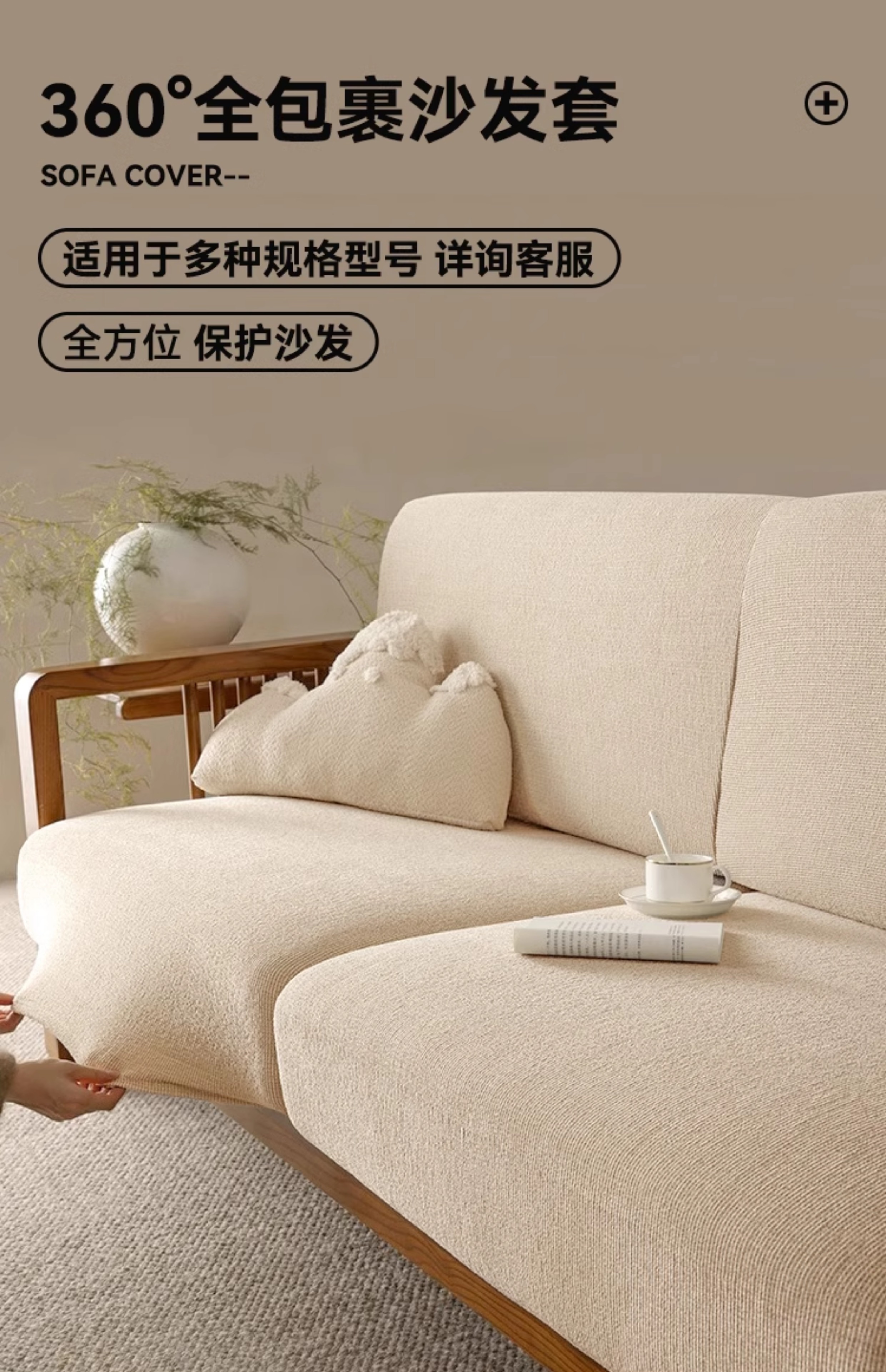 高端棉麻肌理感沙发套罩全包万能套新中式实木沙发笠保护罩坐垫套