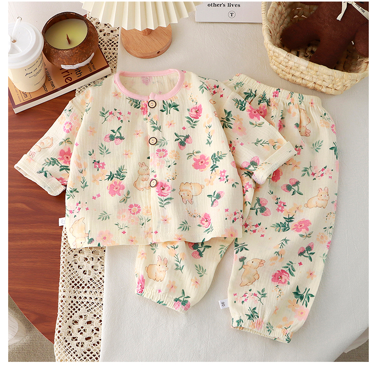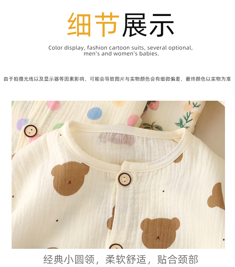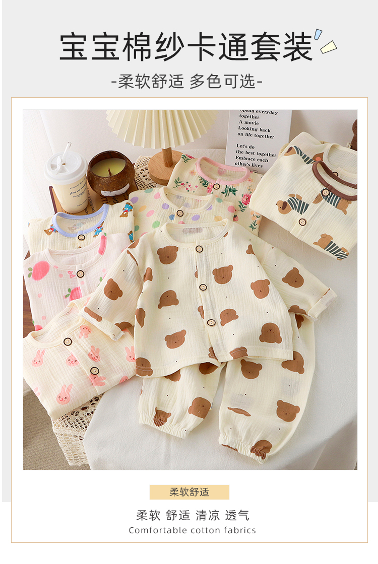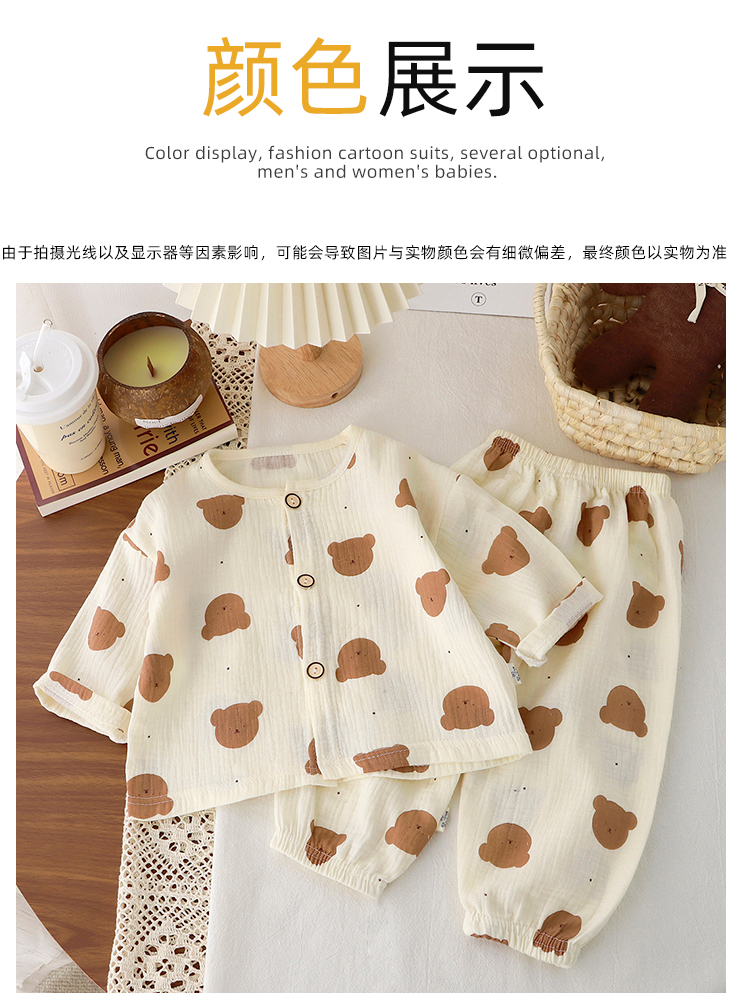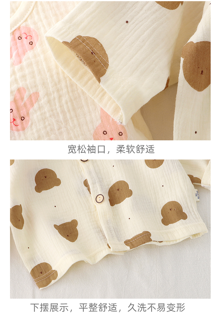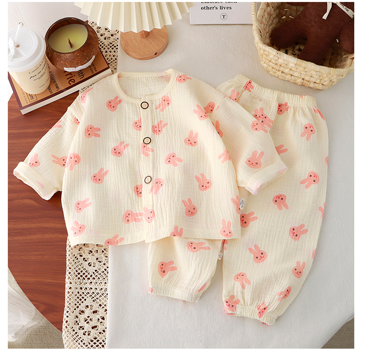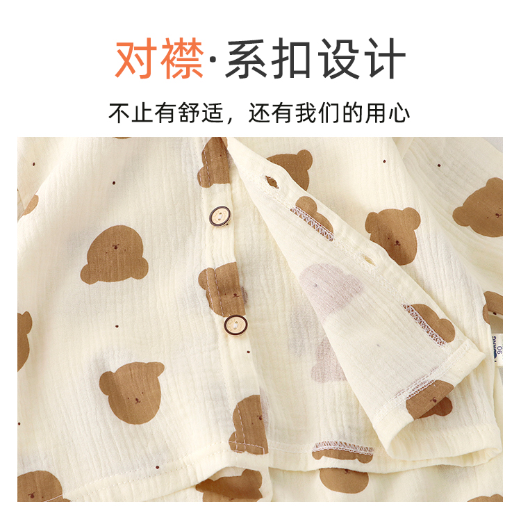 儿童纱布睡衣套装夏薄款开衫婴儿男女孩中小童装宝宝家居空调衣服