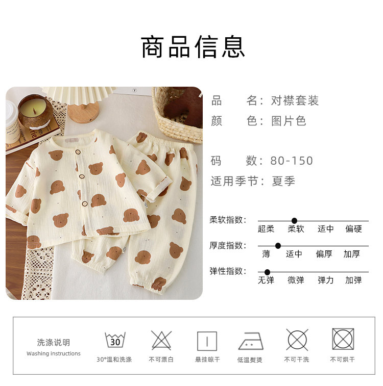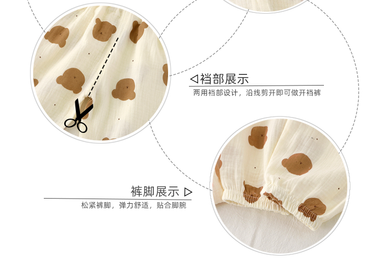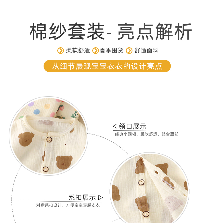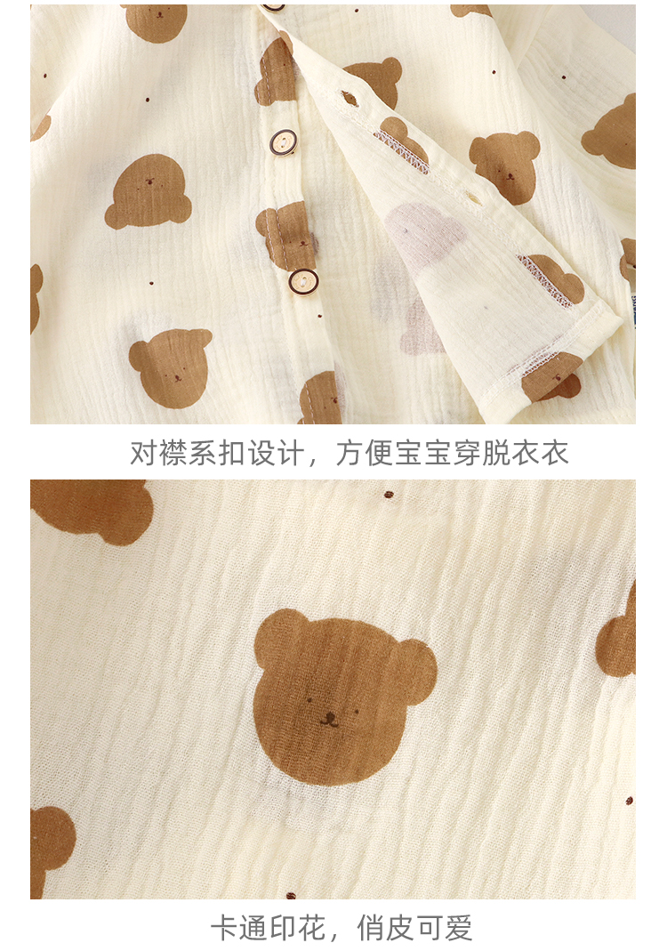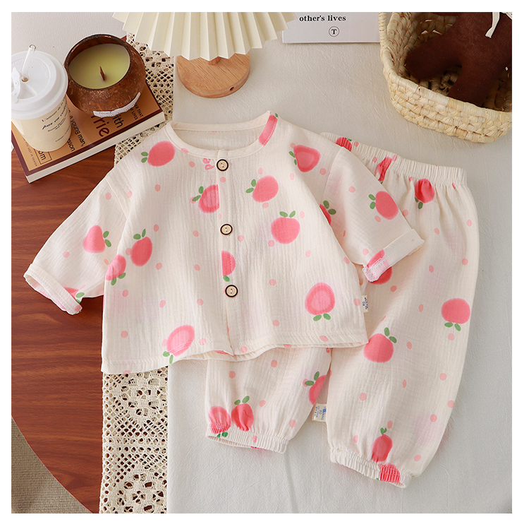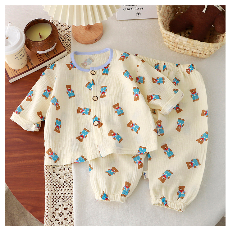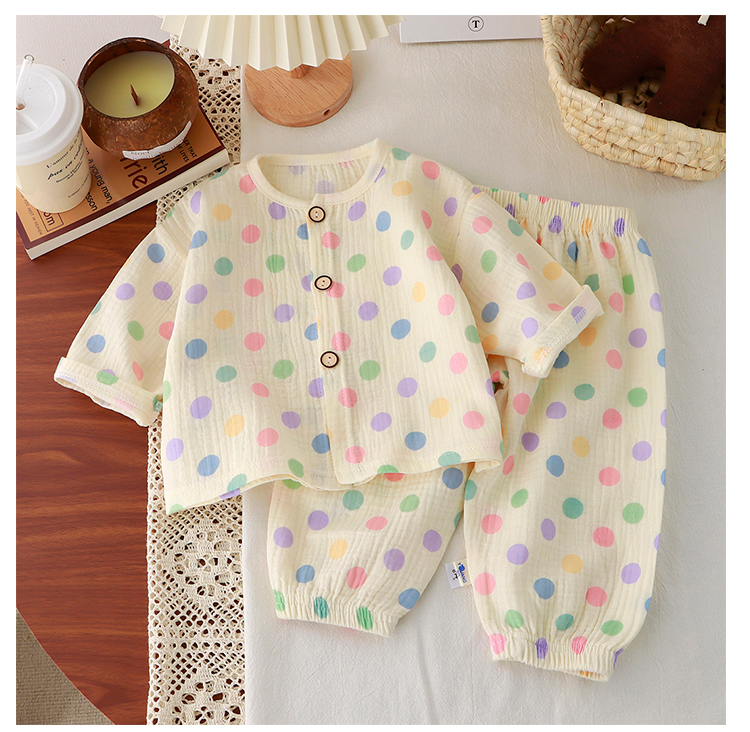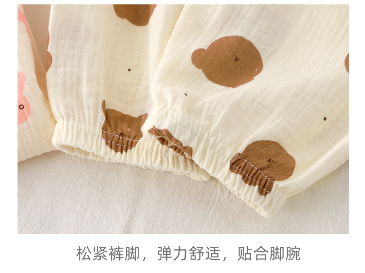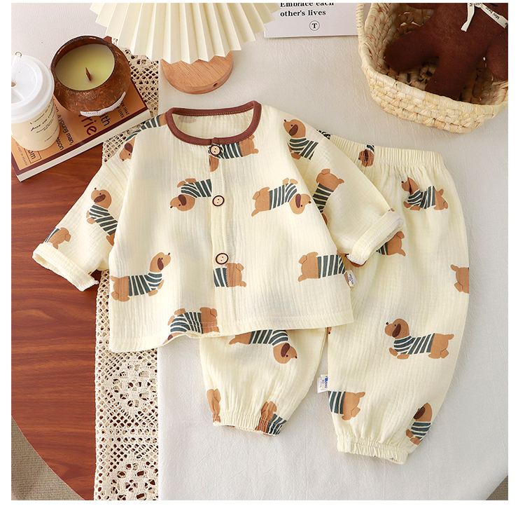 儿童纱布睡衣套装夏薄款开衫婴儿男女孩中小童装宝宝家居空调衣服