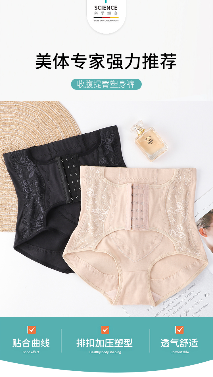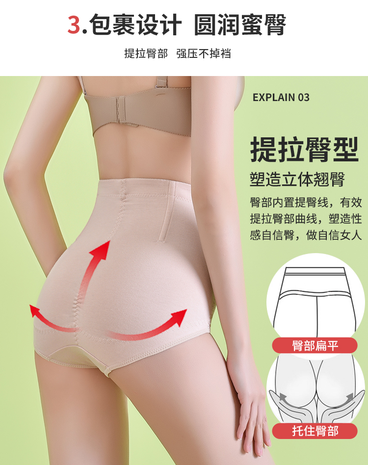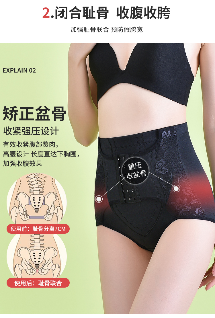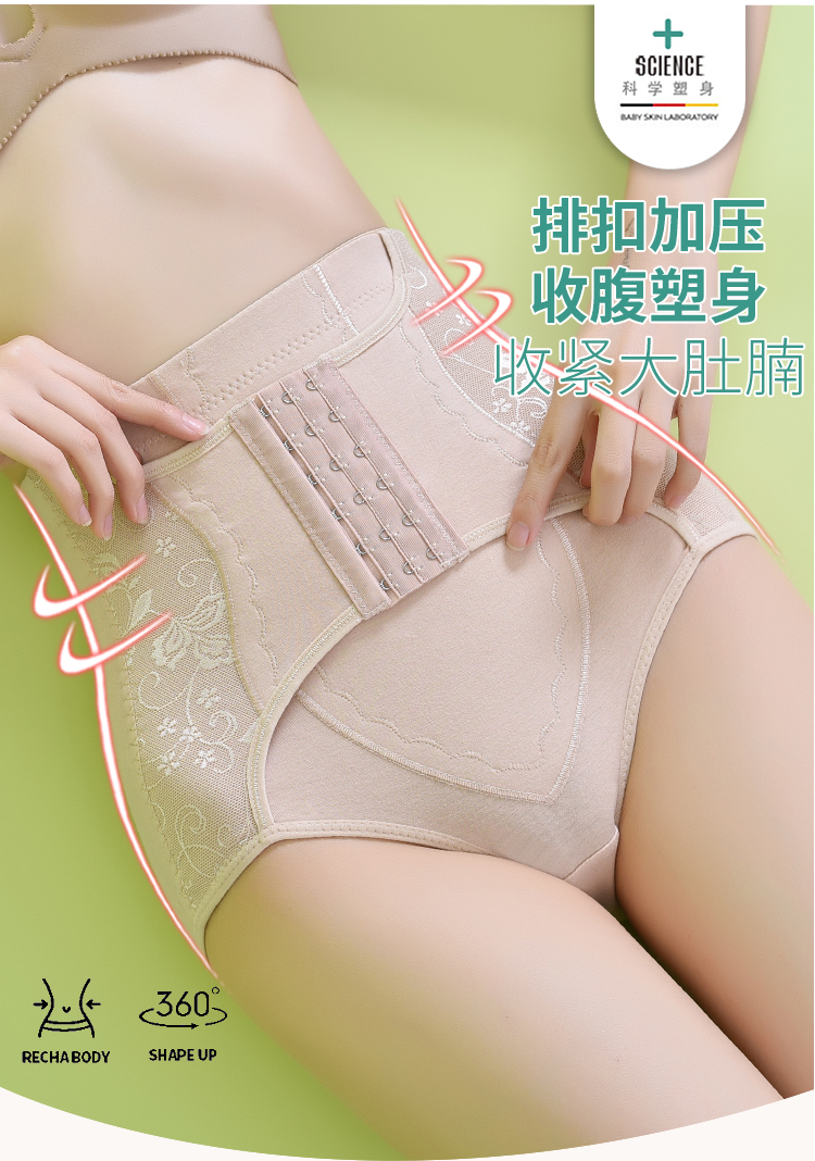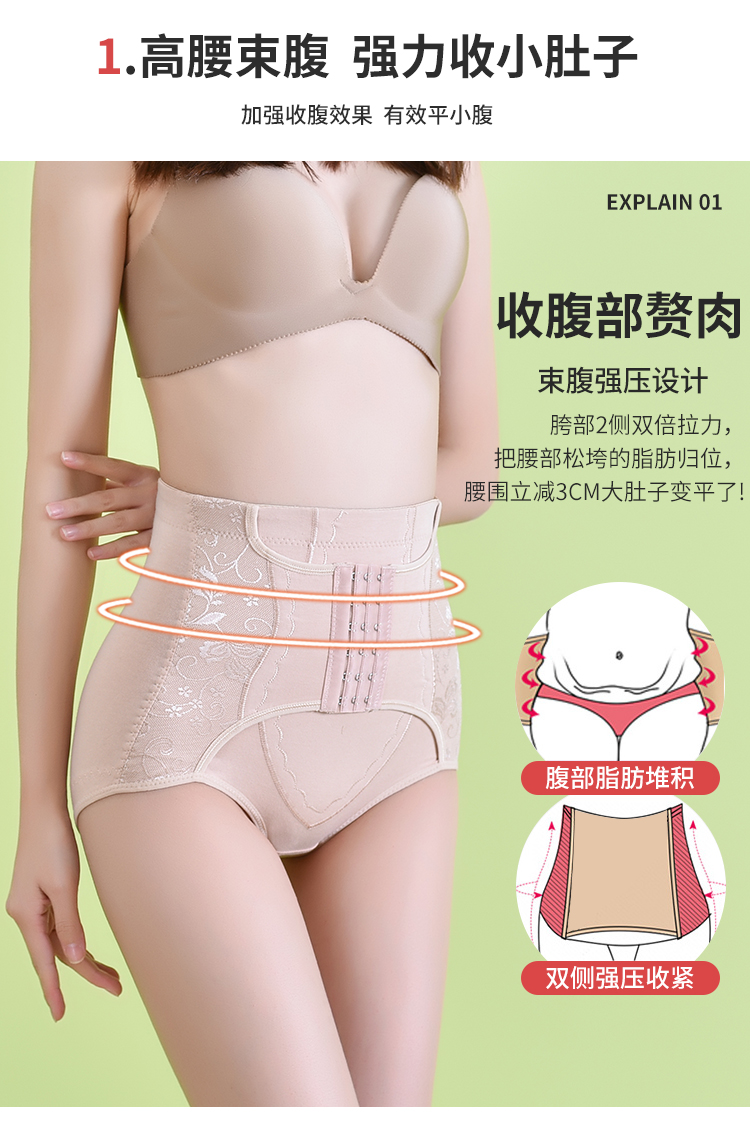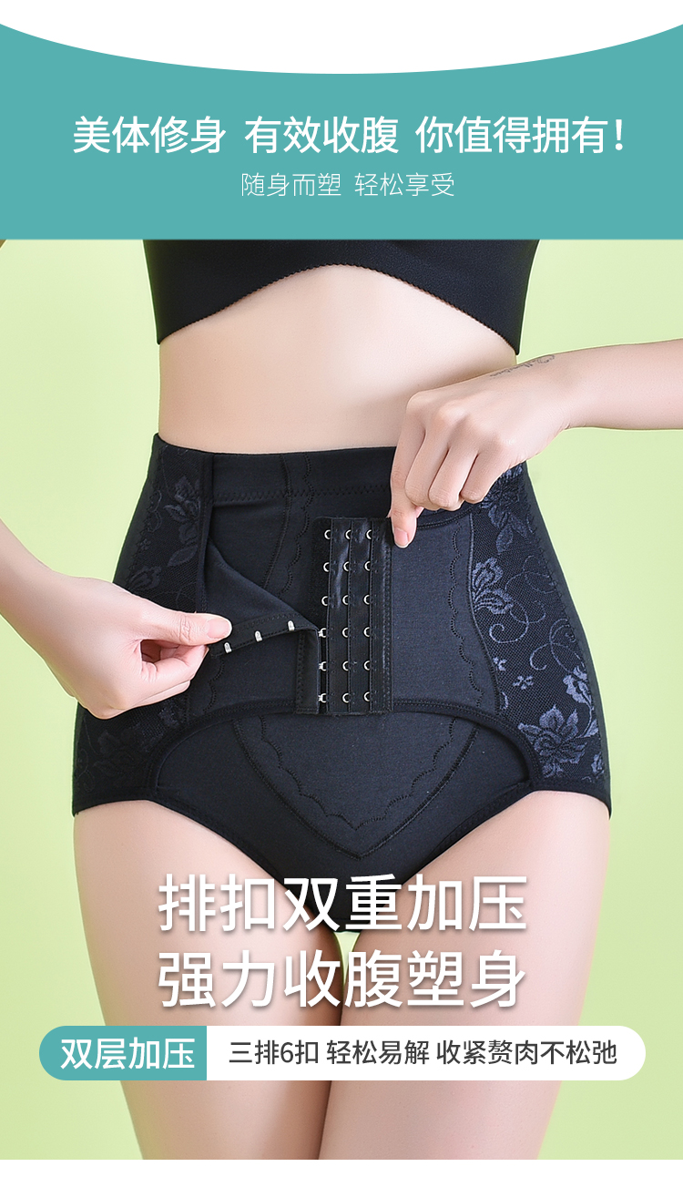 加强款纯棉中腰收腹内裤女产后收肚子提臀排扣塑身束腰美体内裤女