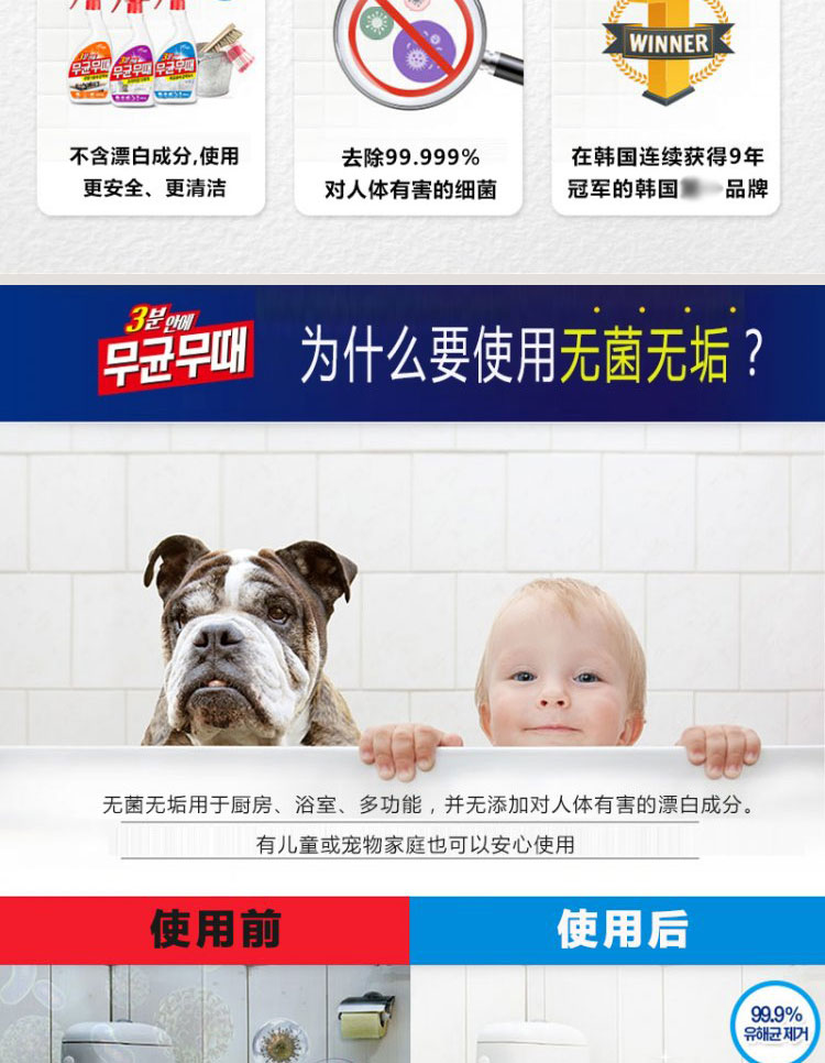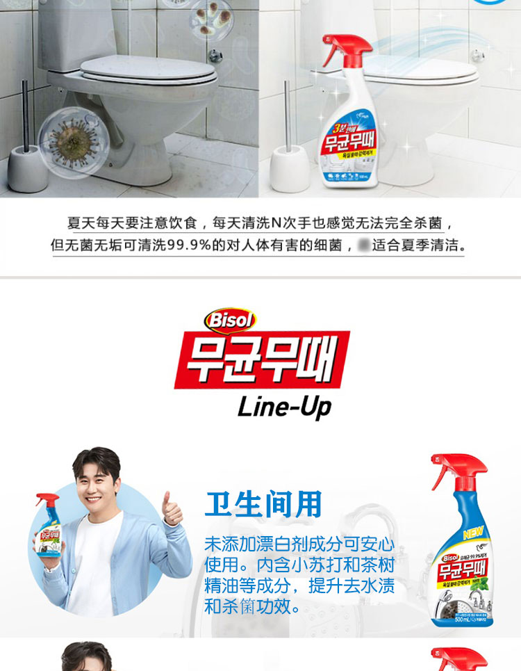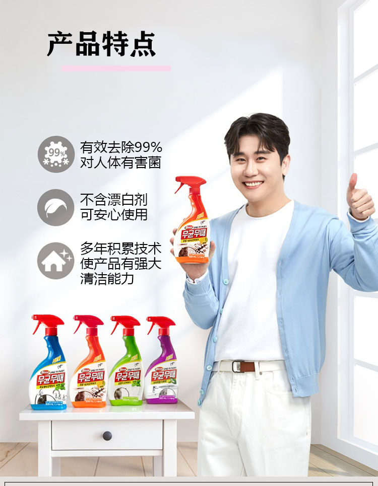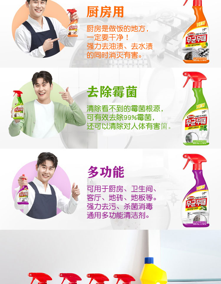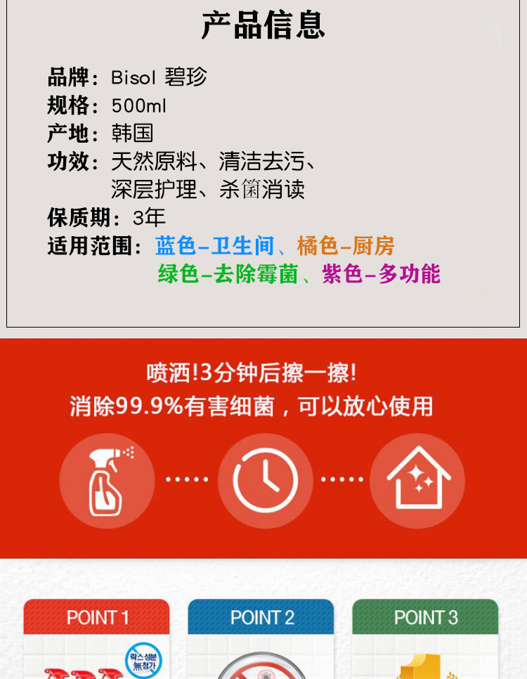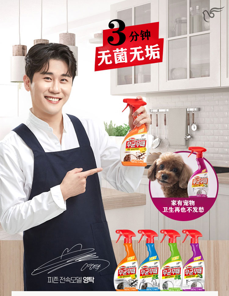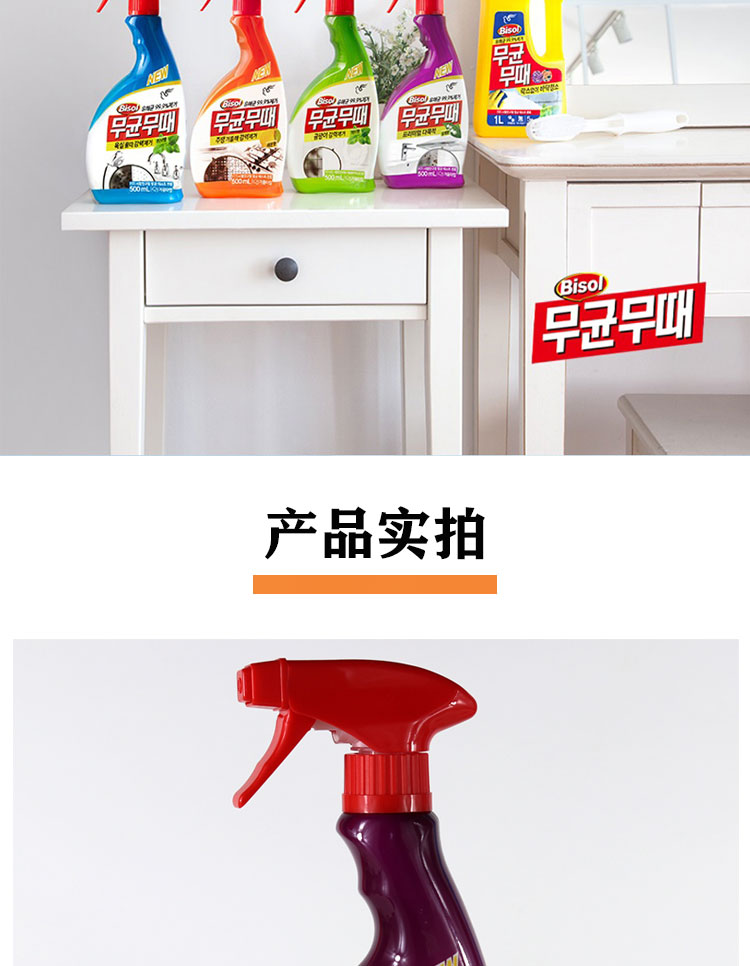韩国进口正品碧珍厨卫清洁剂去污去渍水垢成分天然浴室多功能喷雾