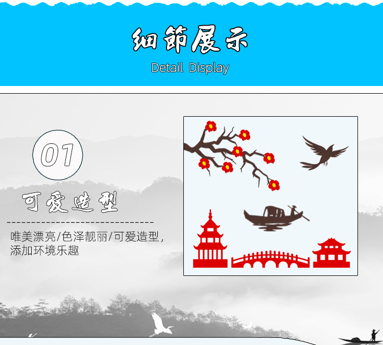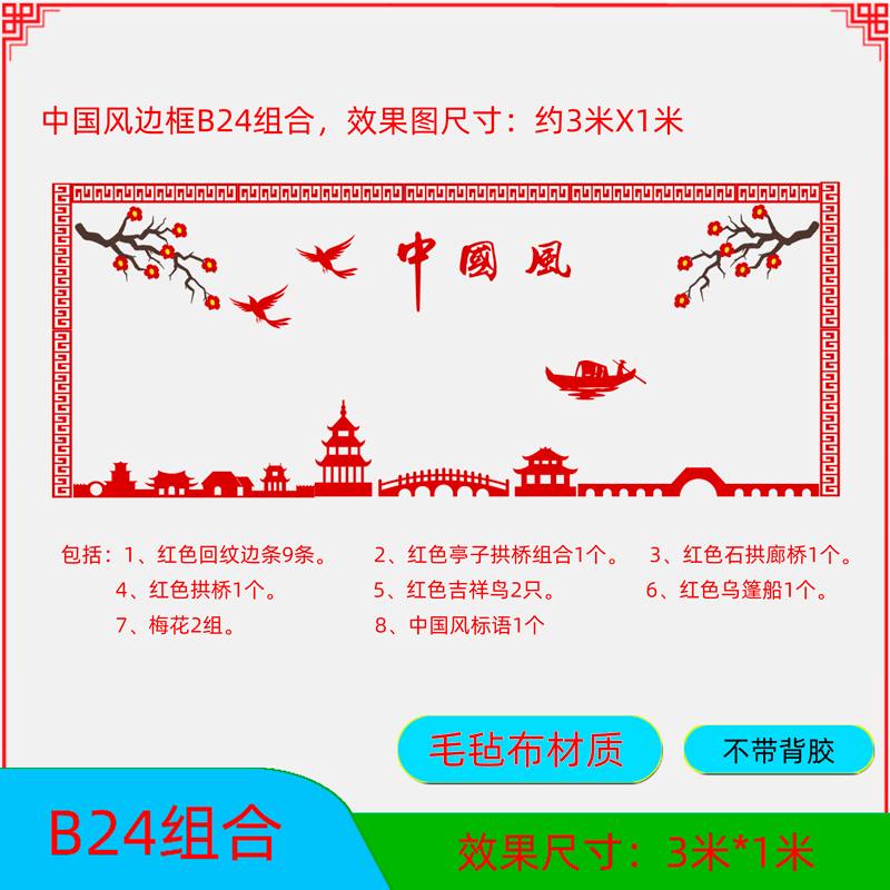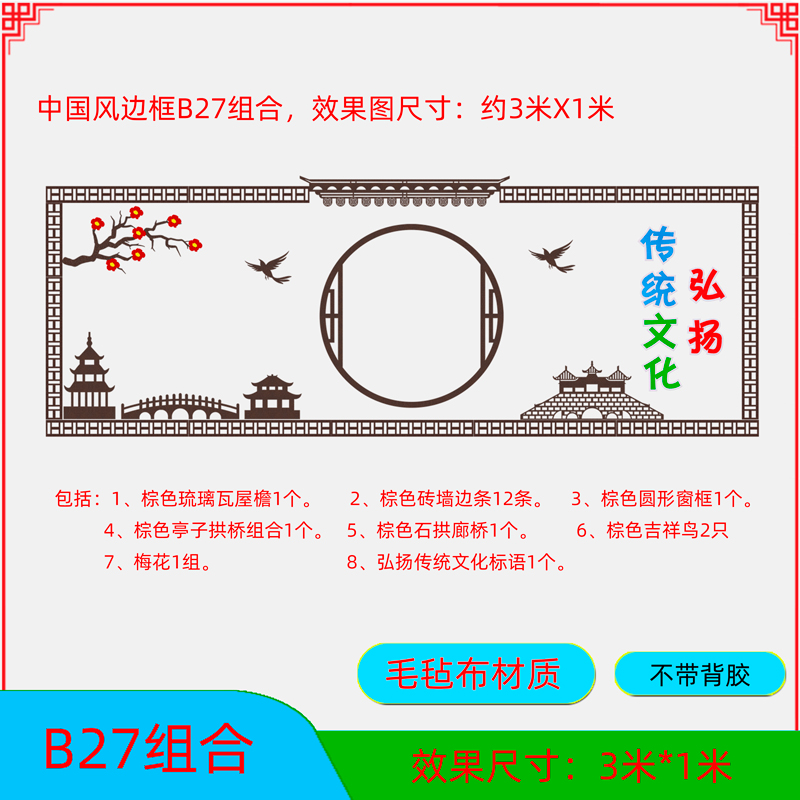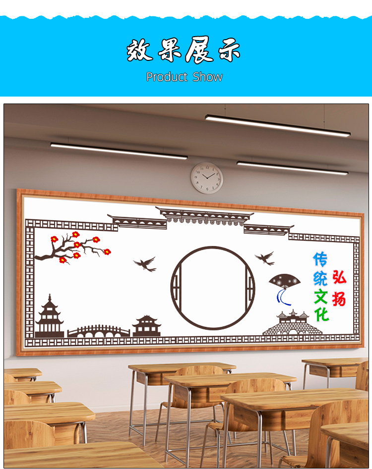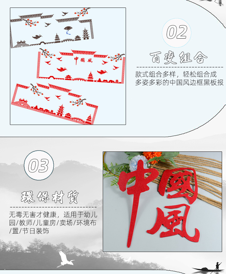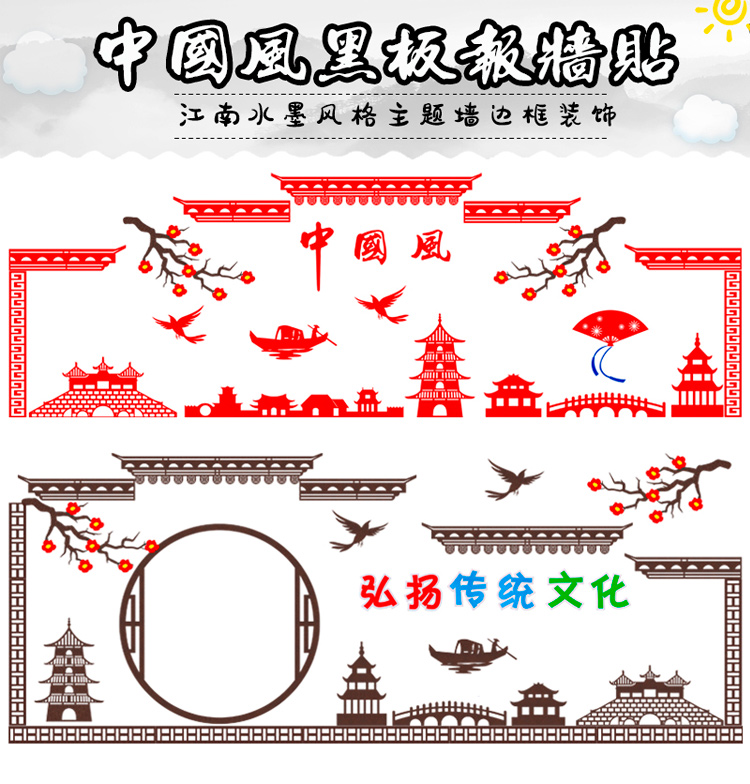 幼儿园中国风环创边框墙贴江南水墨古风主题黑板报文化墙布置材料