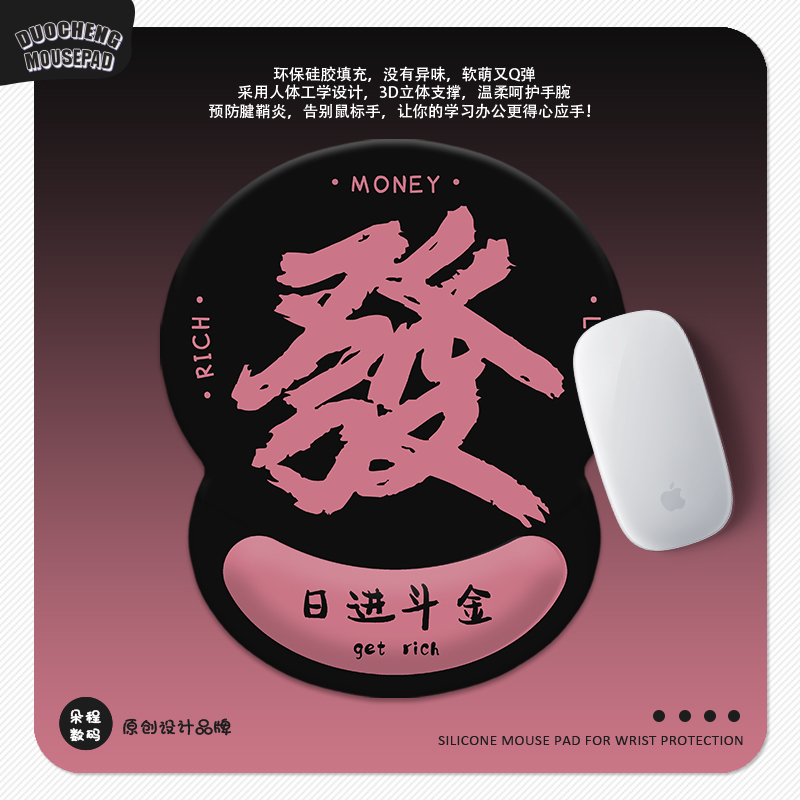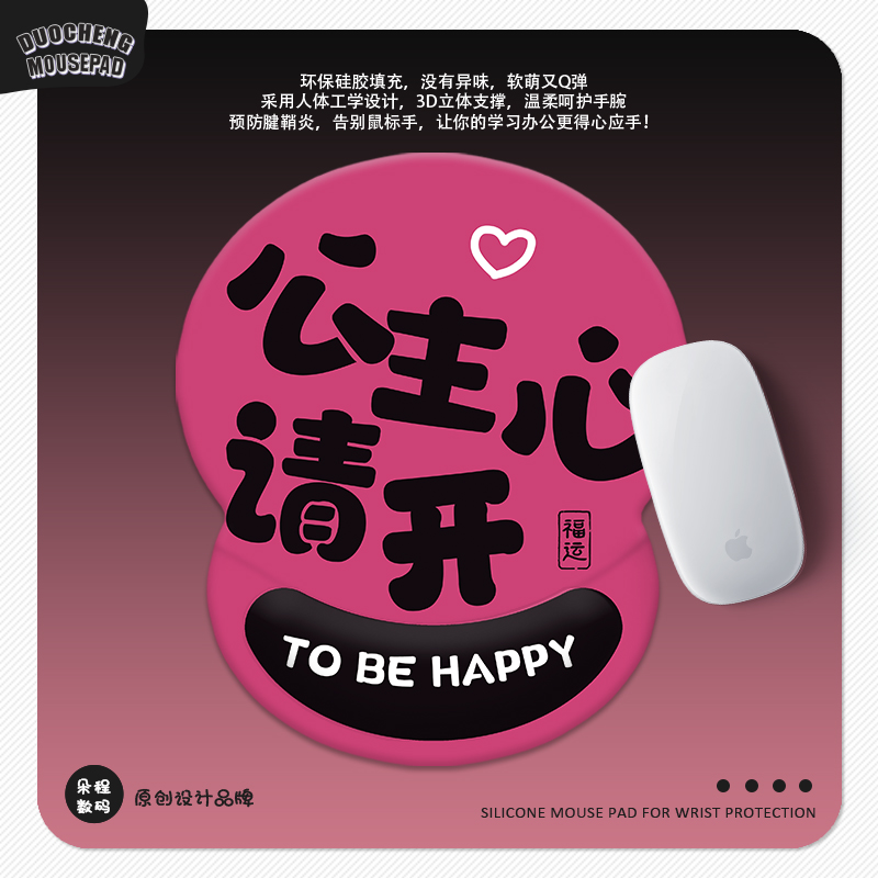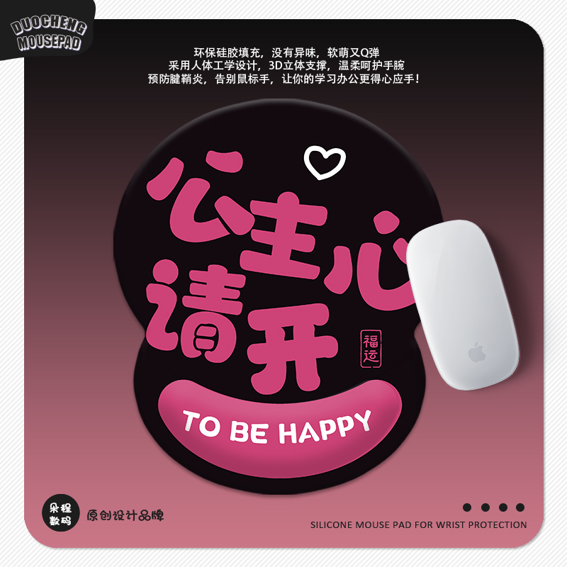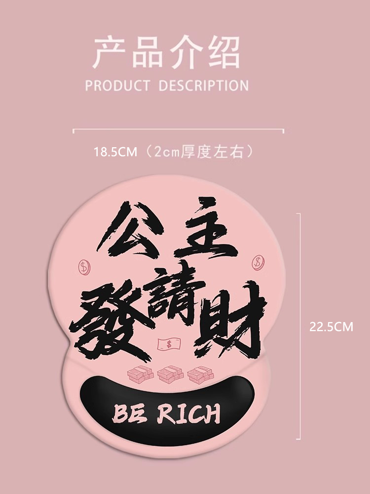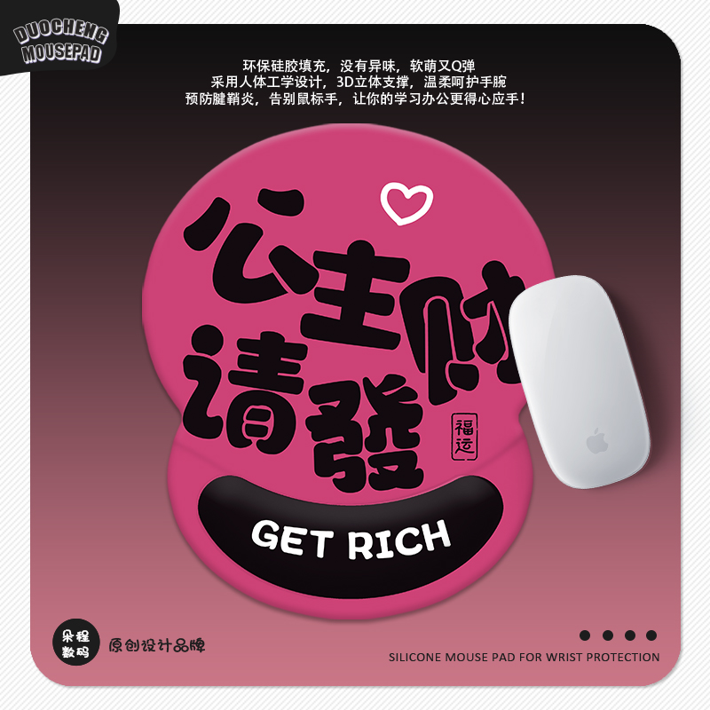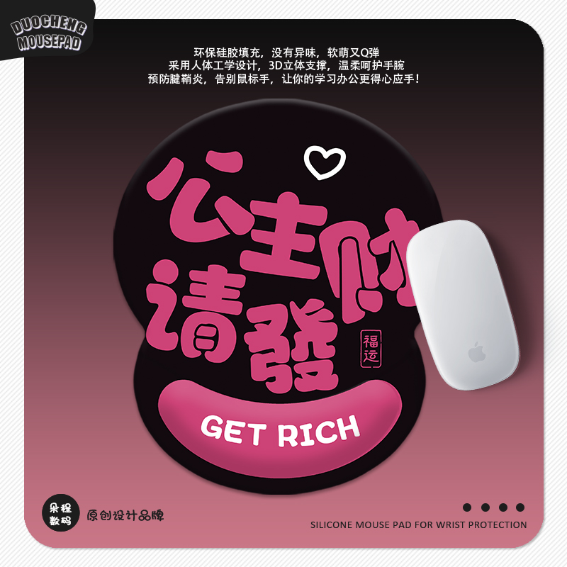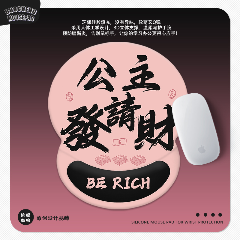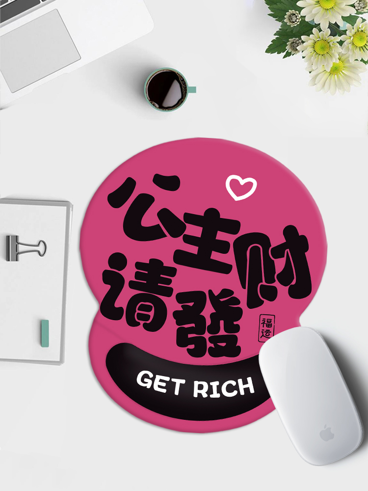 公主请发财护腕垫3D硅胶鼠标垫趣味文字定制家用办公室工位腕托垫