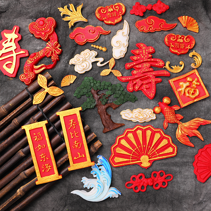 祝寿巧克力硅胶模具摆件寿星寿婆蛋糕装饰插件字牌中国风福字寿字