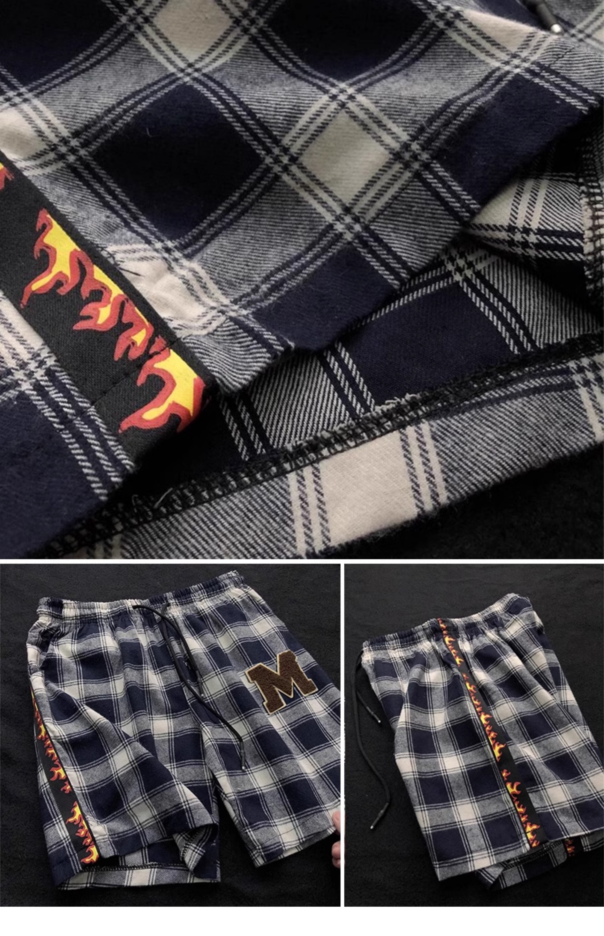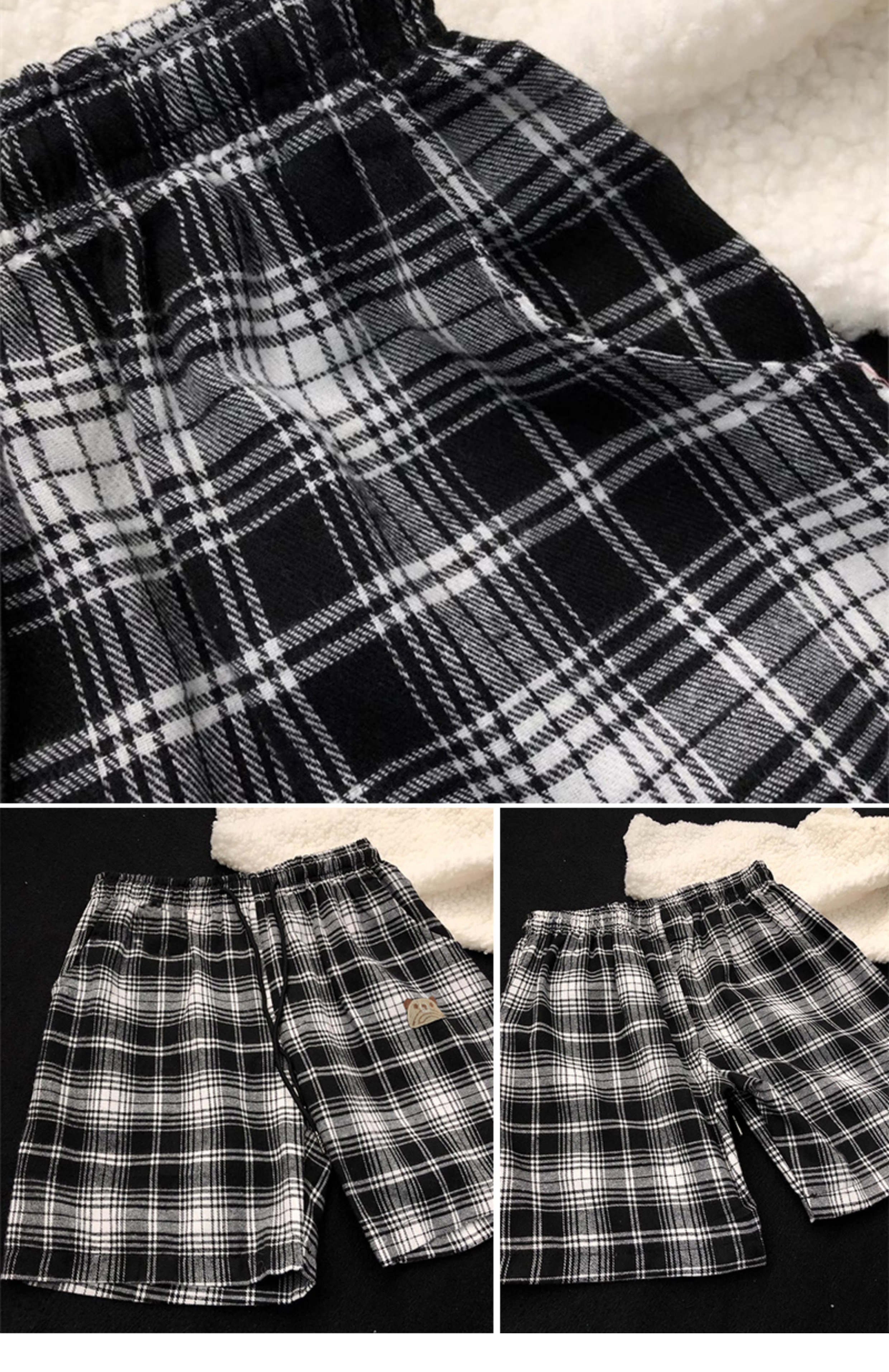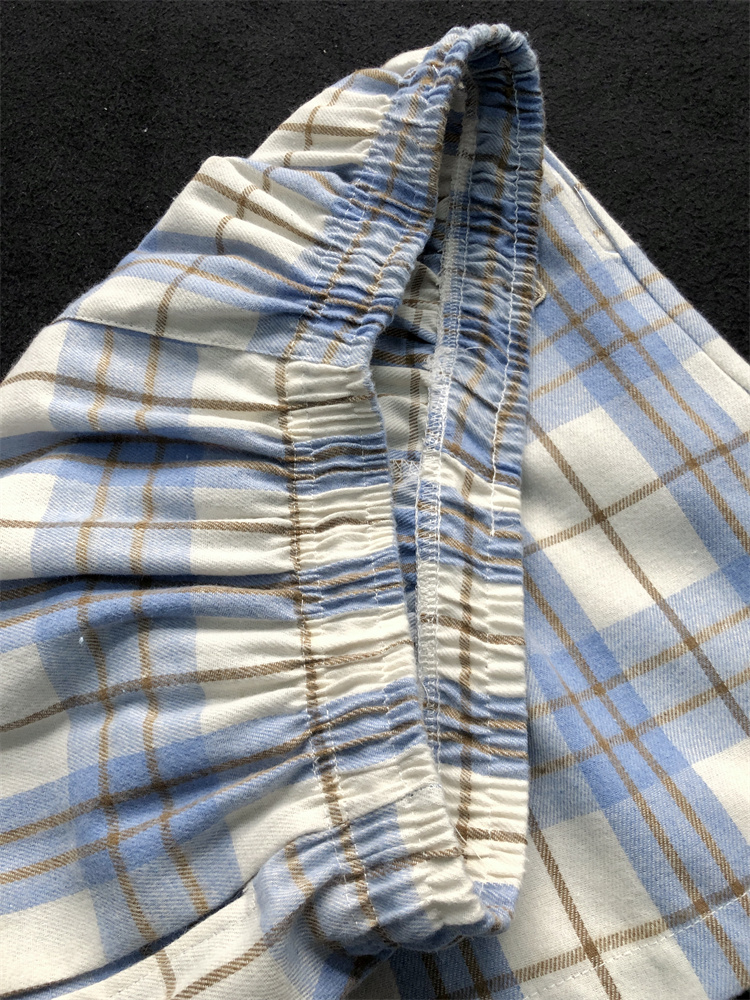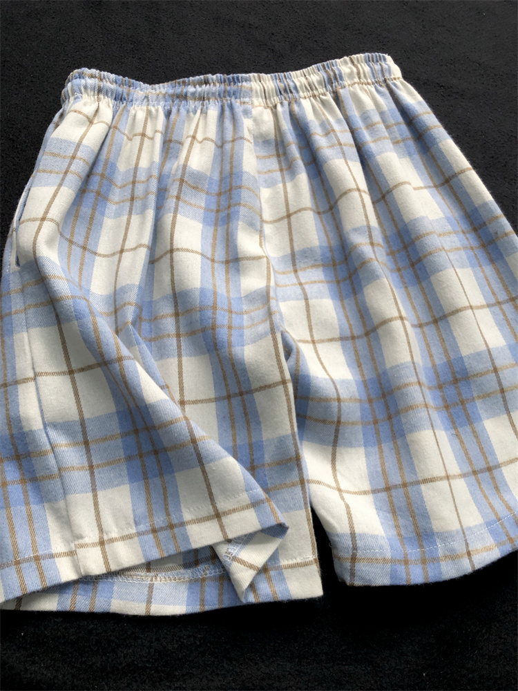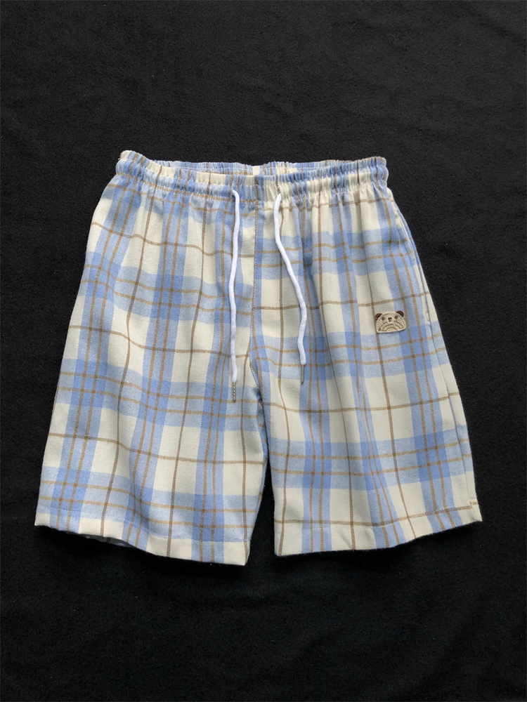 小熊刺绣蓝色格子短裤男计设感裤子2025新款夏季家居裤休闲裤睡裤