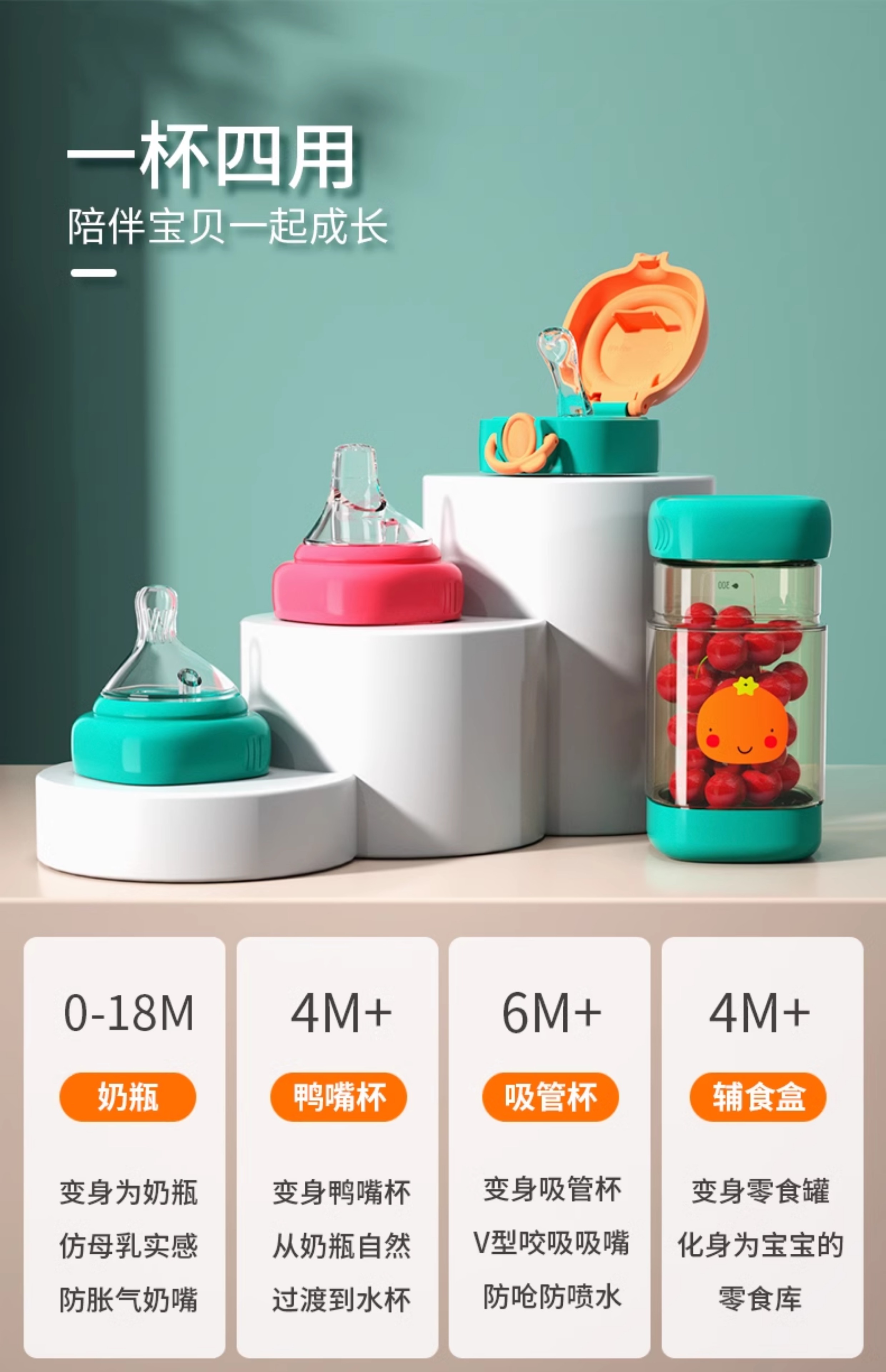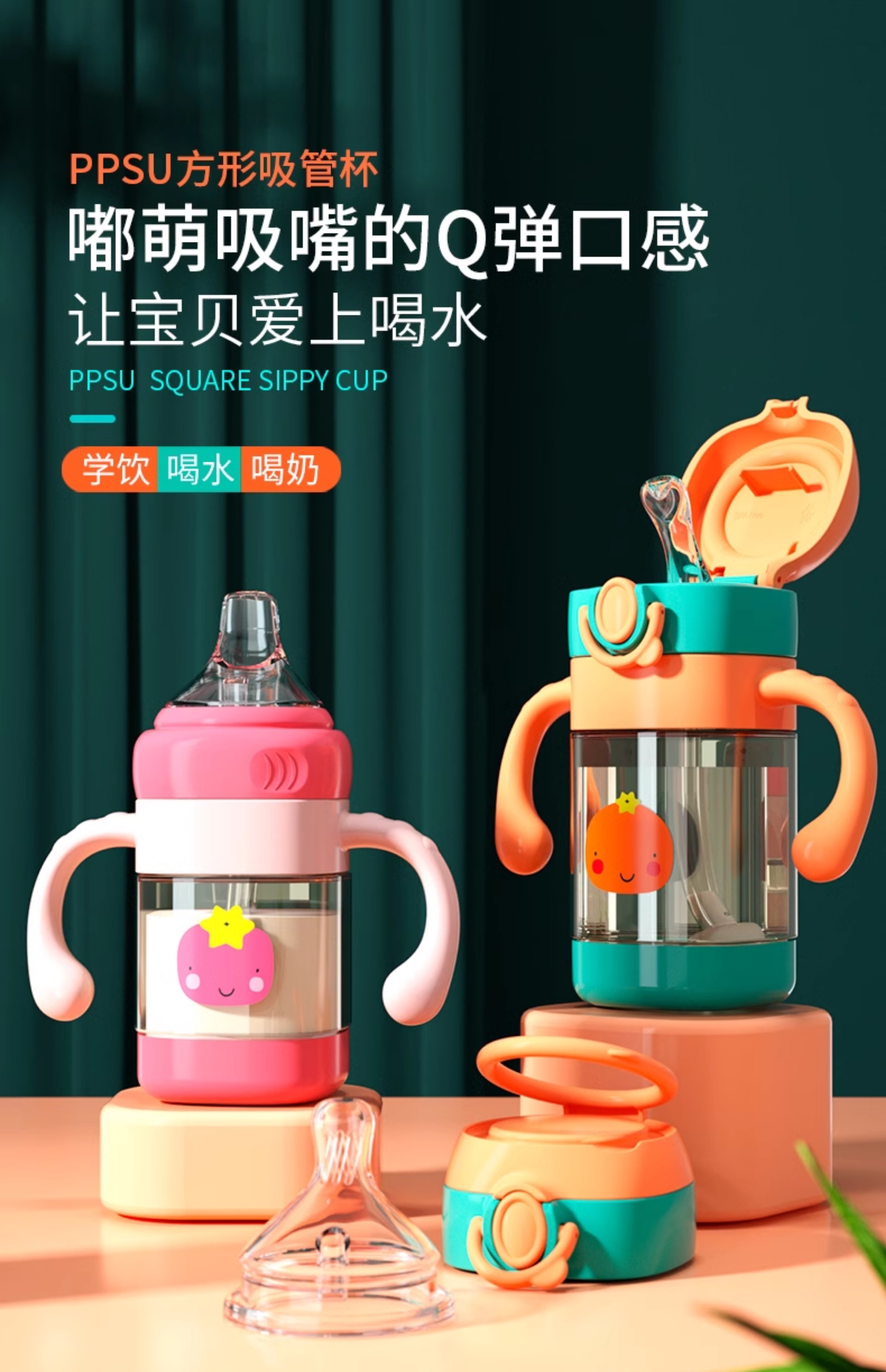 ppsu学饮杯宝宝吸管杯鸭嘴杯儿童水杯6个月婴儿鸭嘴奶瓶家用杯子