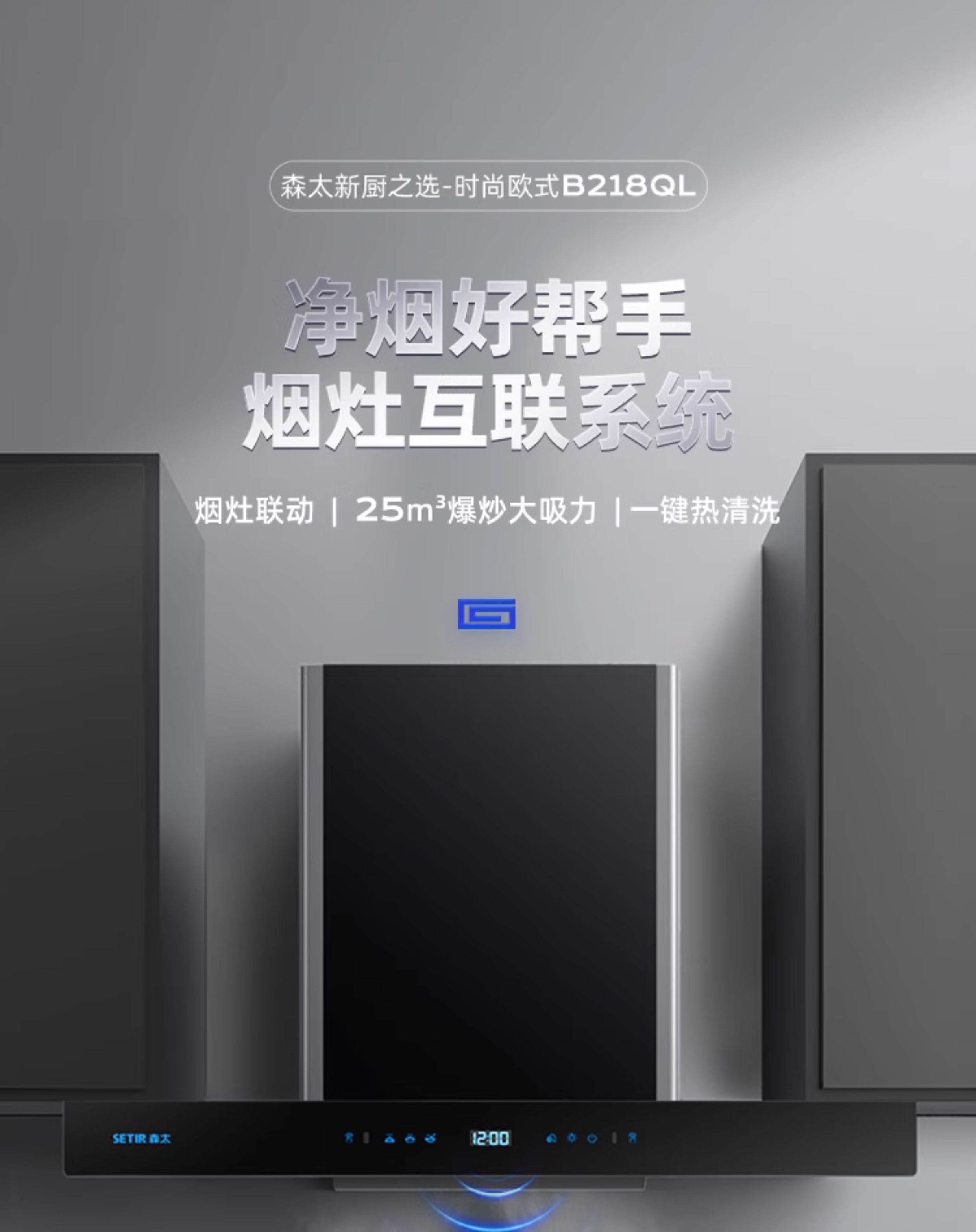 森太B218QL欧式抽油烟机套装欧式顶吸式烟灶联动油烟机燃气灶家用