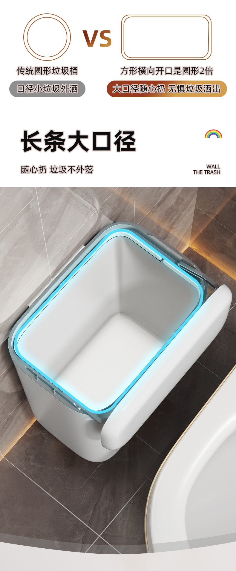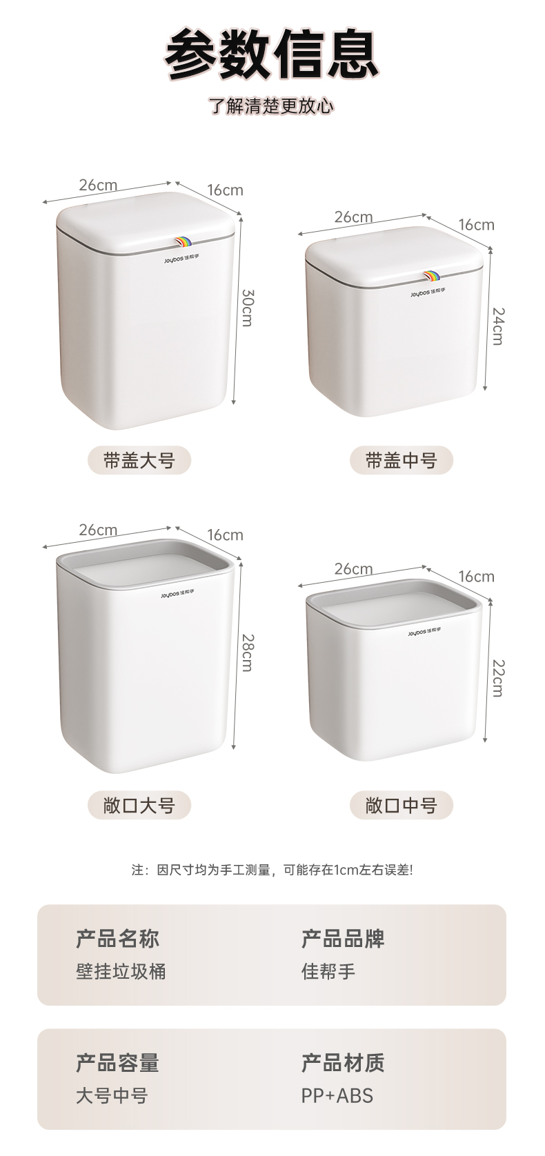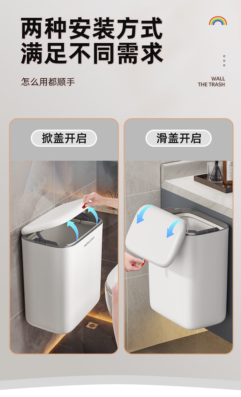 佳帮手壁挂式垃圾桶厕所卫生间专用桶带盖厨房家用2025新款厕纸桶