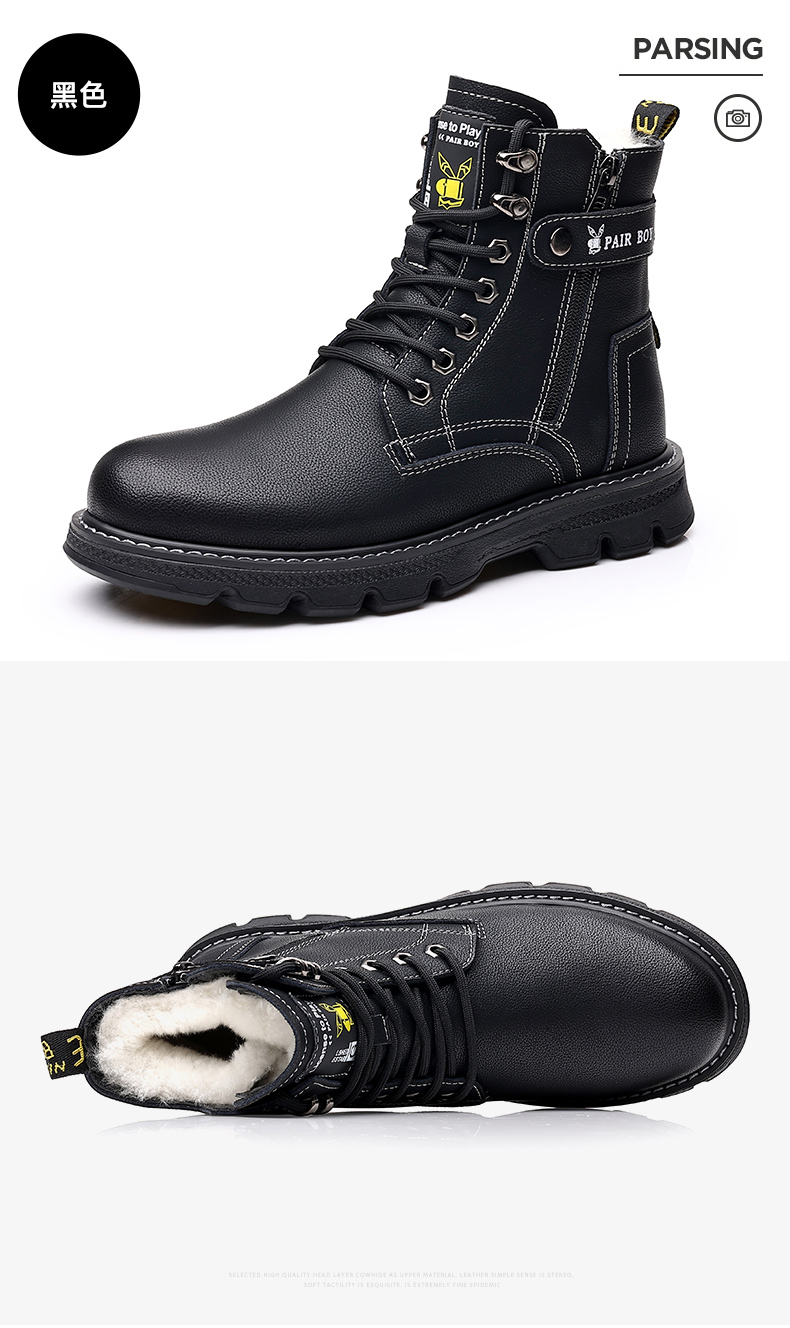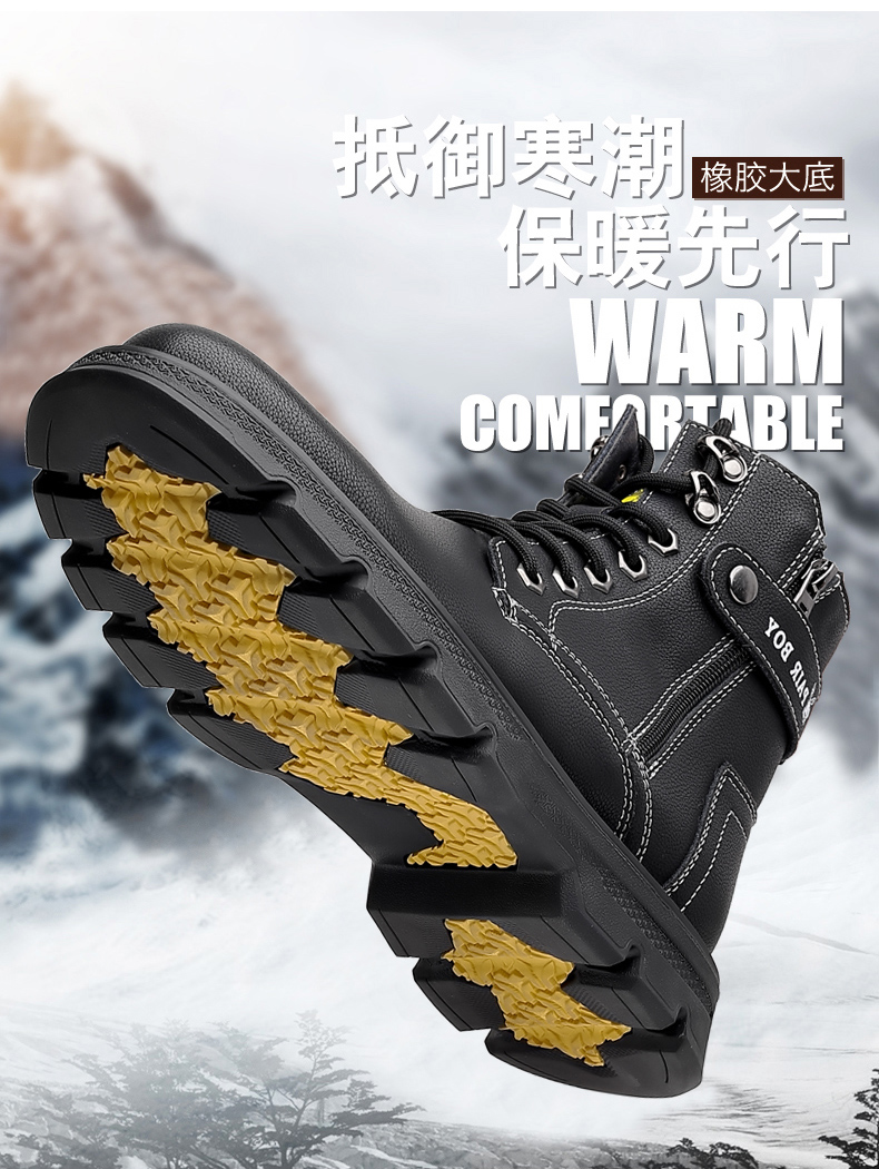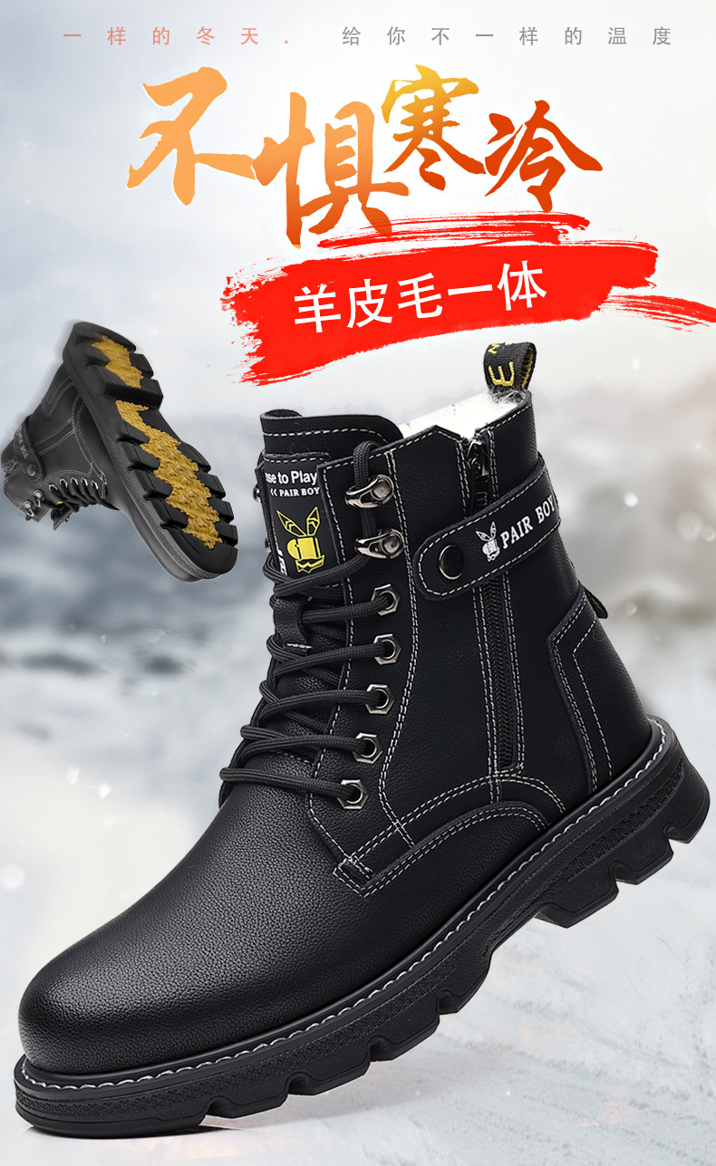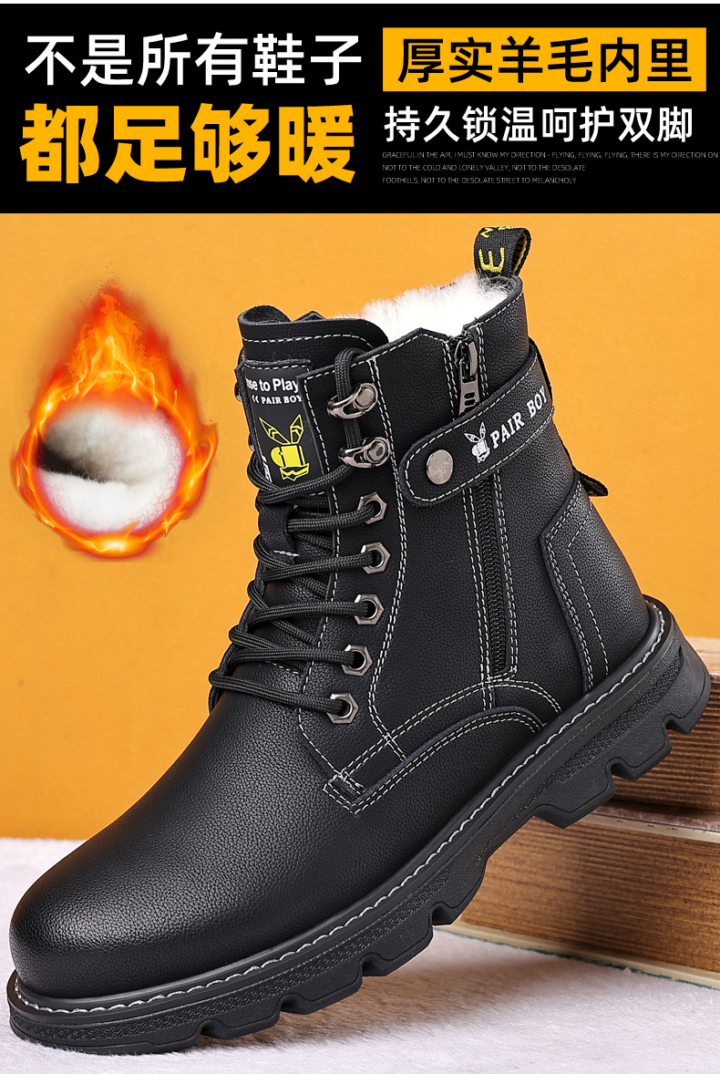 冬季马丁靴加绒高帮男士靴子保暖加厚棉鞋东北零下40度防寒雪地靴