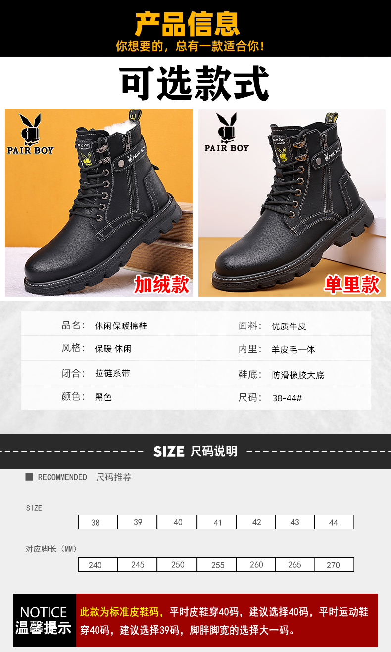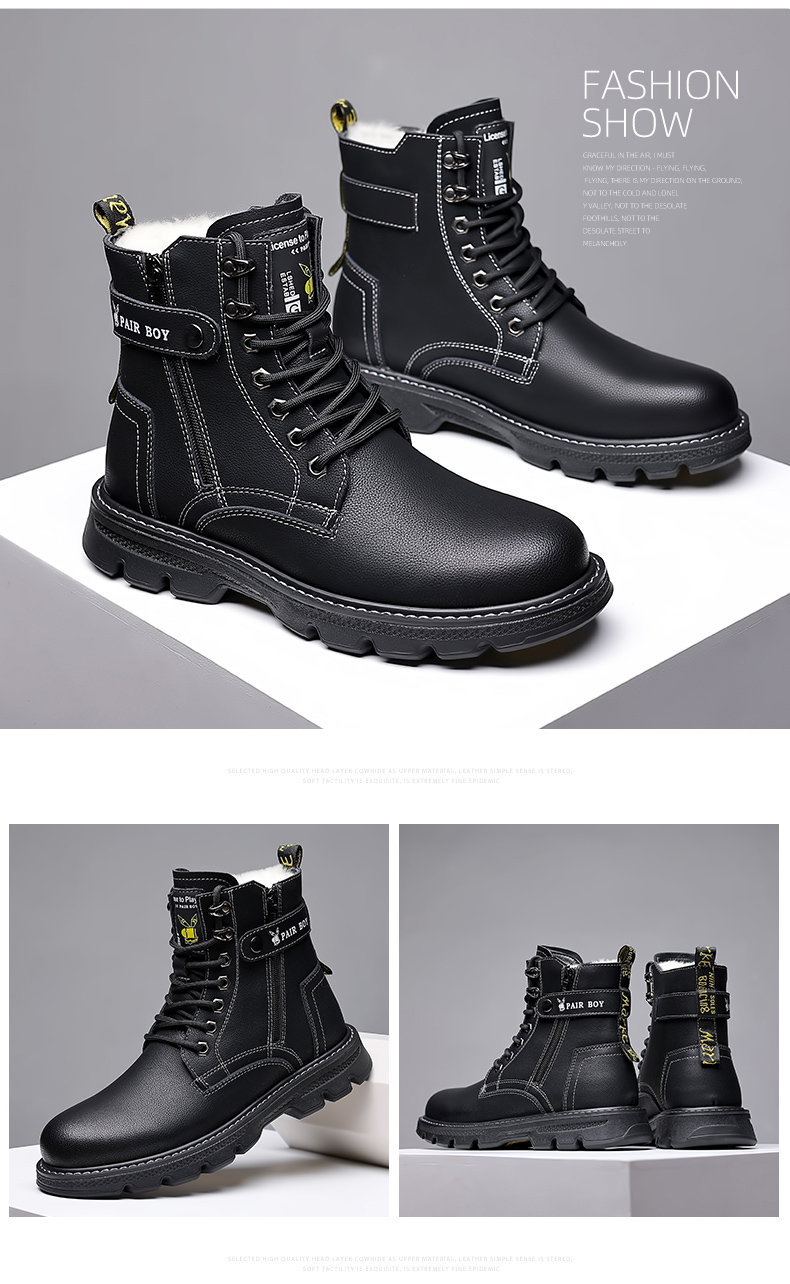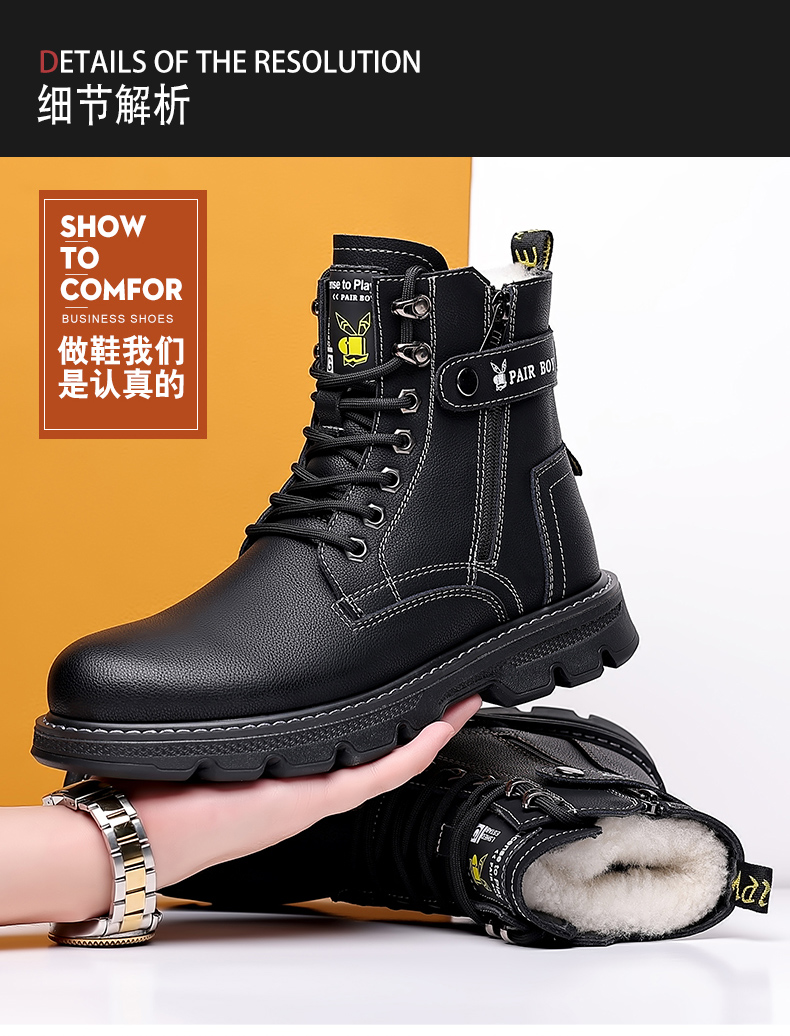 冬季马丁靴加绒高帮男士靴子保暖加厚棉鞋东北零下40度防寒雪地靴