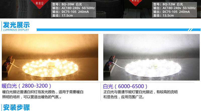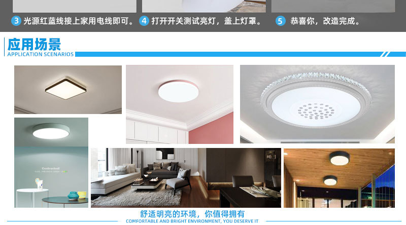 吊扇灯led灯盘改造圆形灯板风扇灯替代透镜灯芯灯板马蹄吸顶灯源