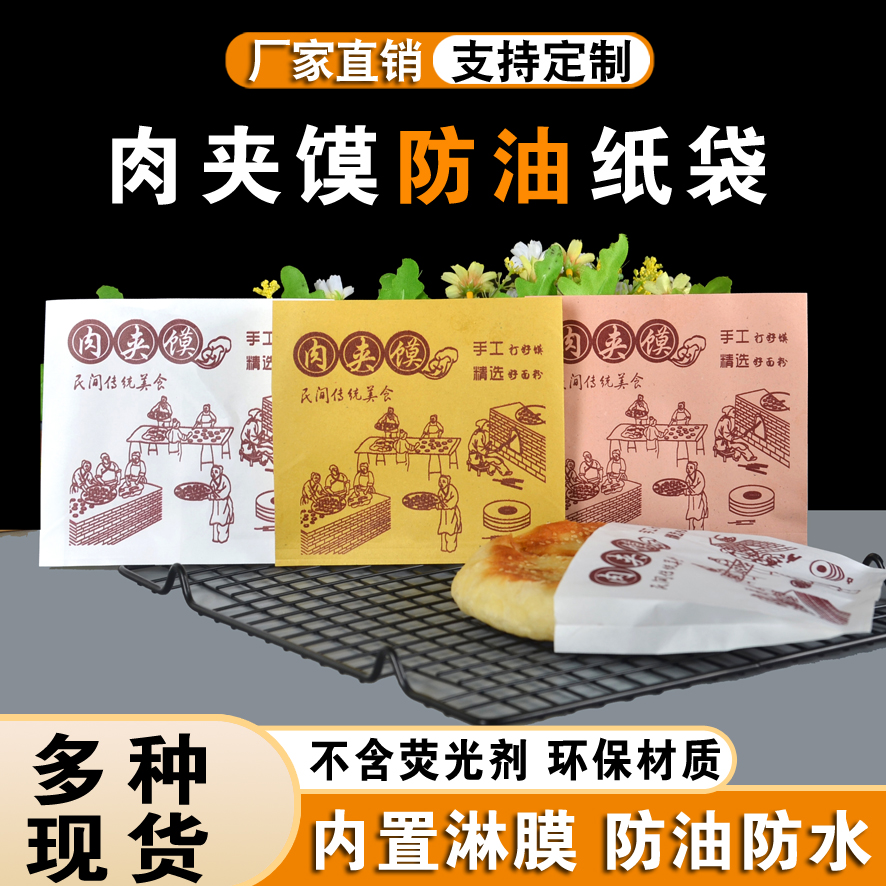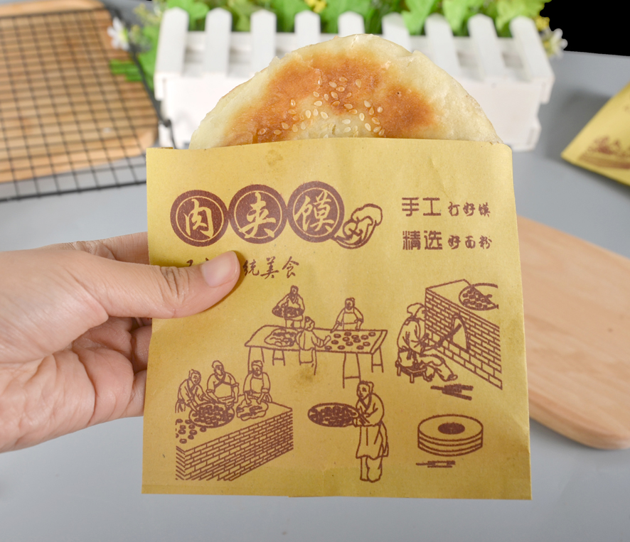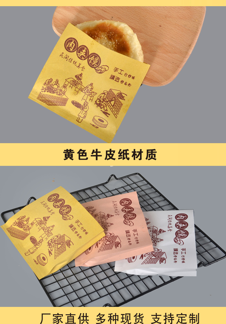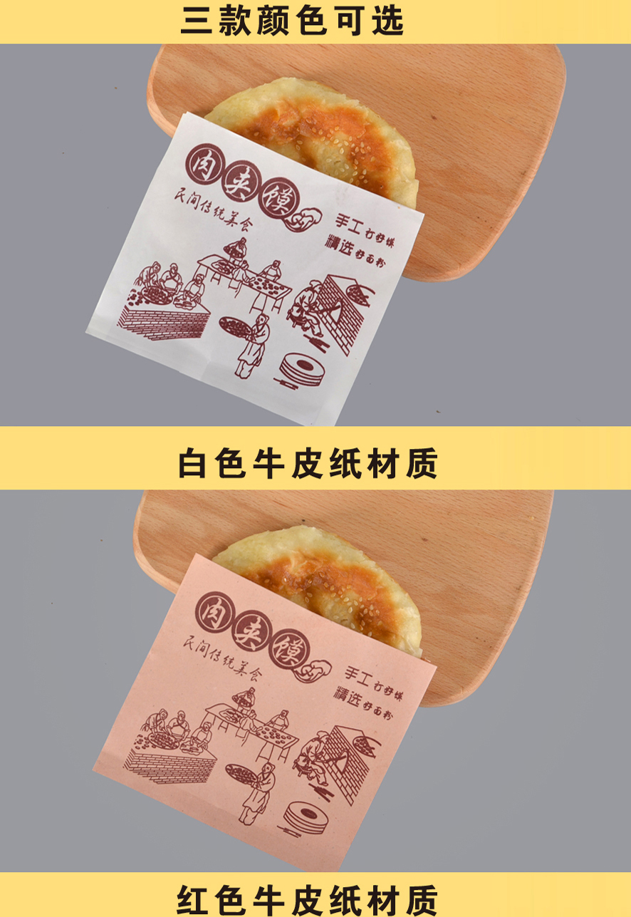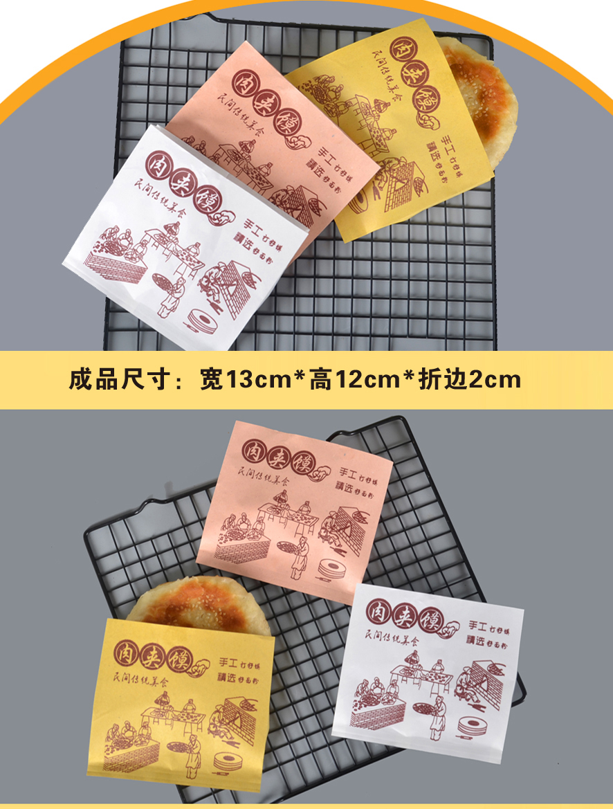 肉夹馍纸袋定做防油纸袋腊汁里脊肉饼袋子厚老潼关三角小吃袋商用
