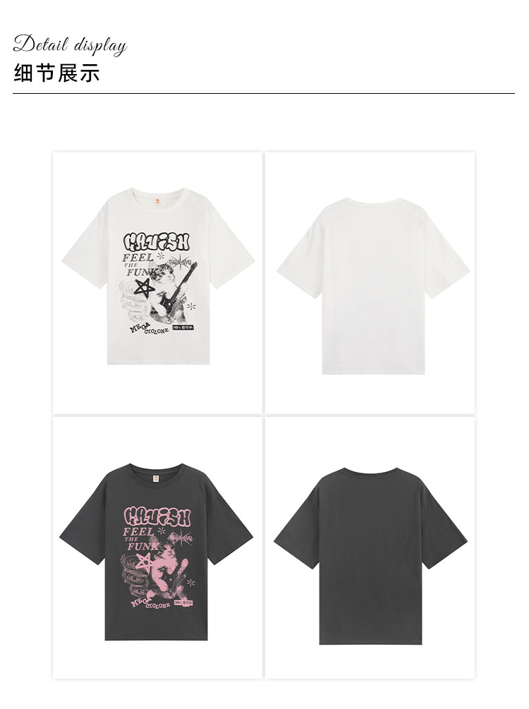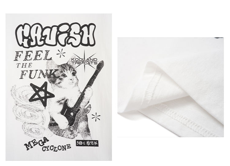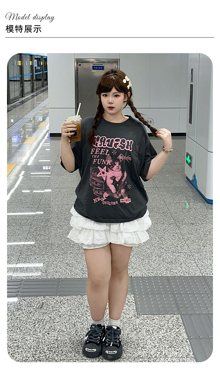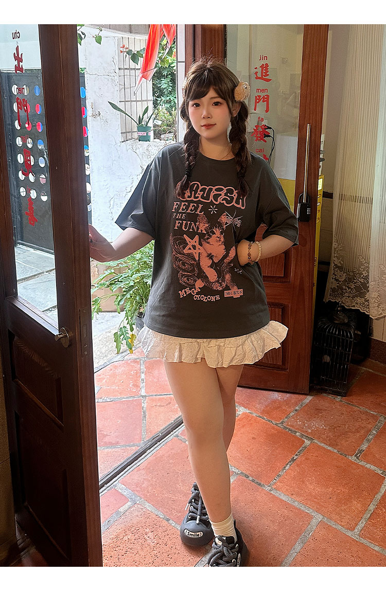 YUZI鱼子减龄撞色猫咪T恤大码女装微胖mm显瘦遮肉200斤重磅纯棉