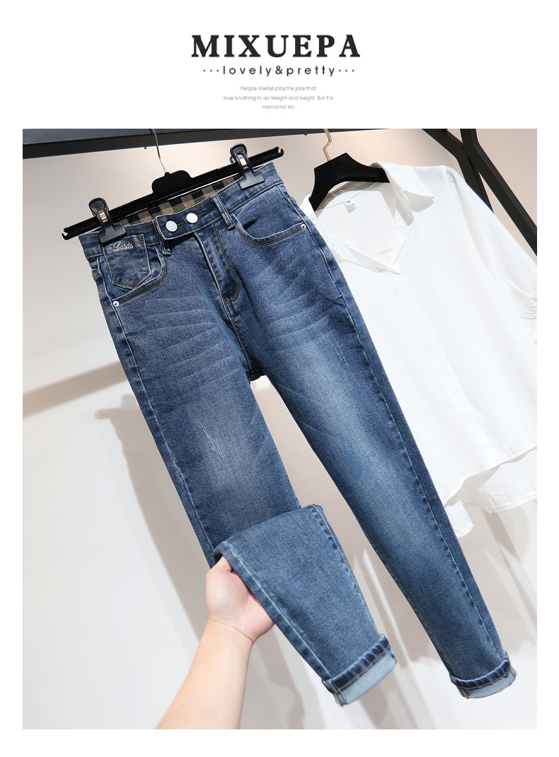 大码牛仔裤女小脚裤高腰梨形身材胖MM裤子显瘦200斤胯大腿粗长裤