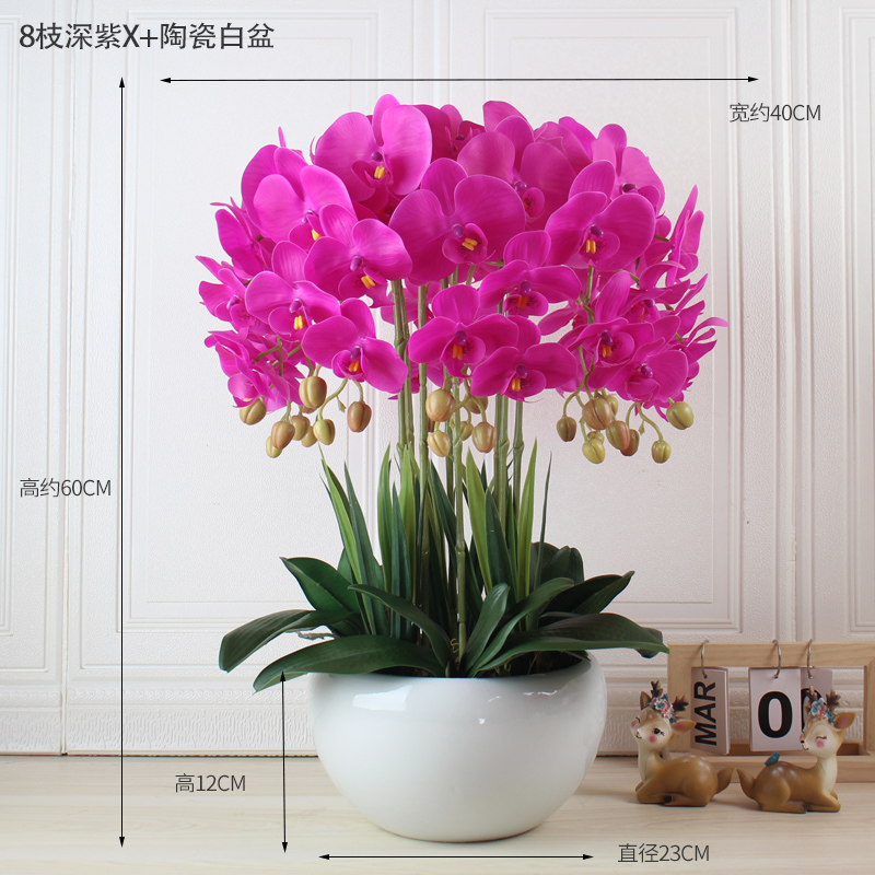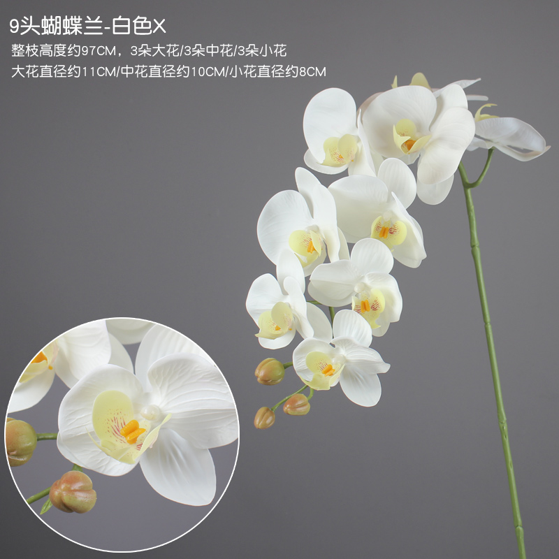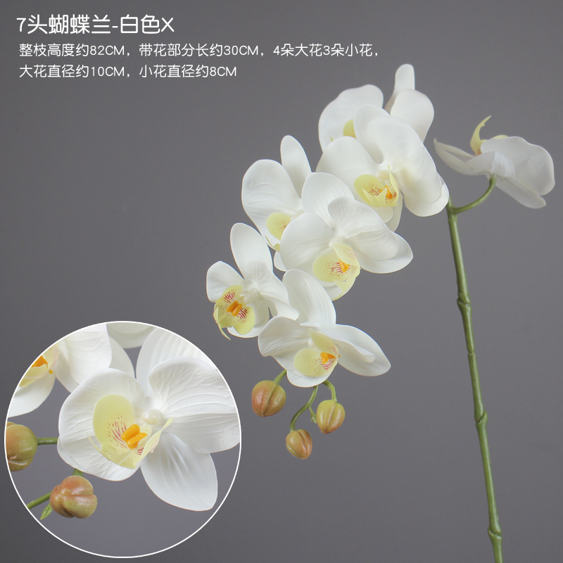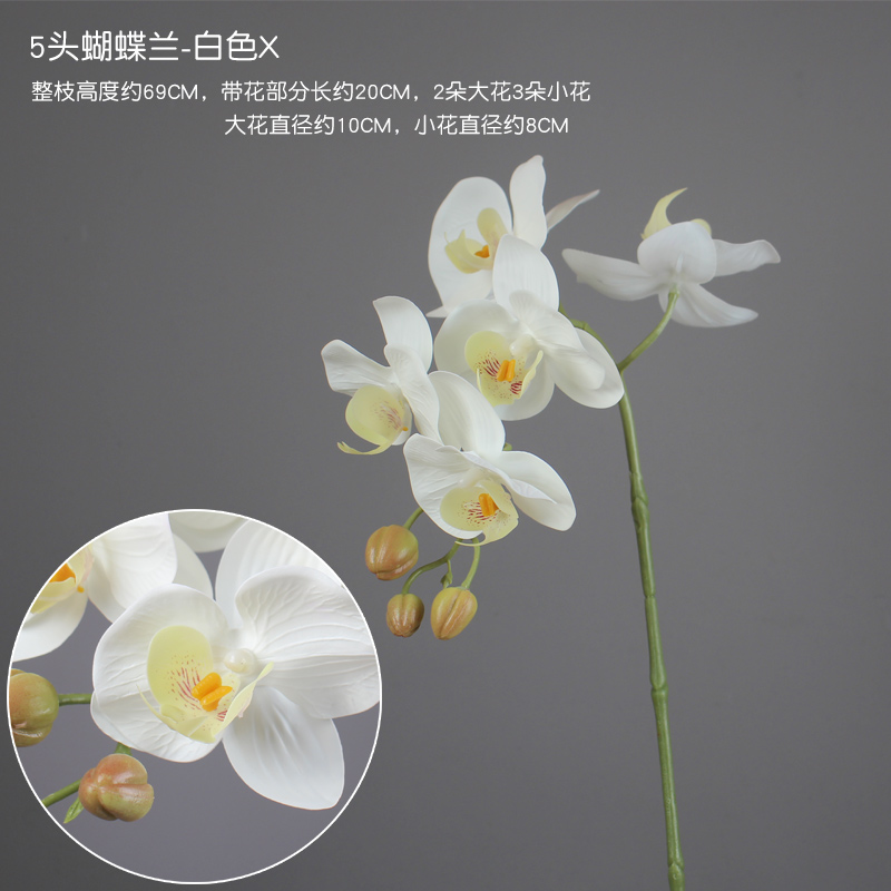 PU手感白色蝴蝶兰仿真花假花单枝楼盘酒店前台室内摆件客厅装饰花
