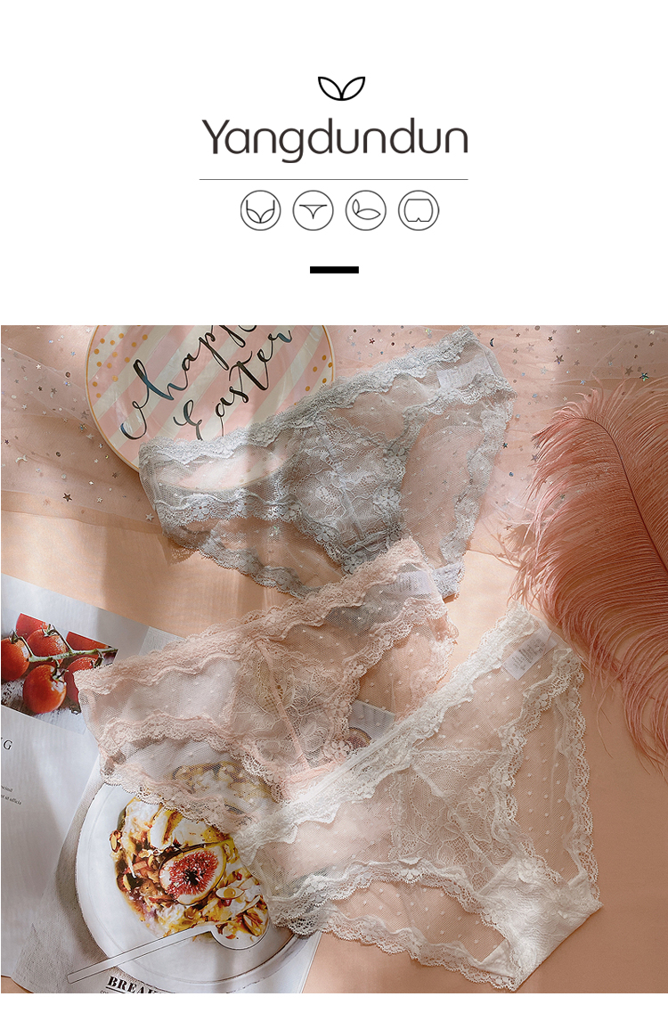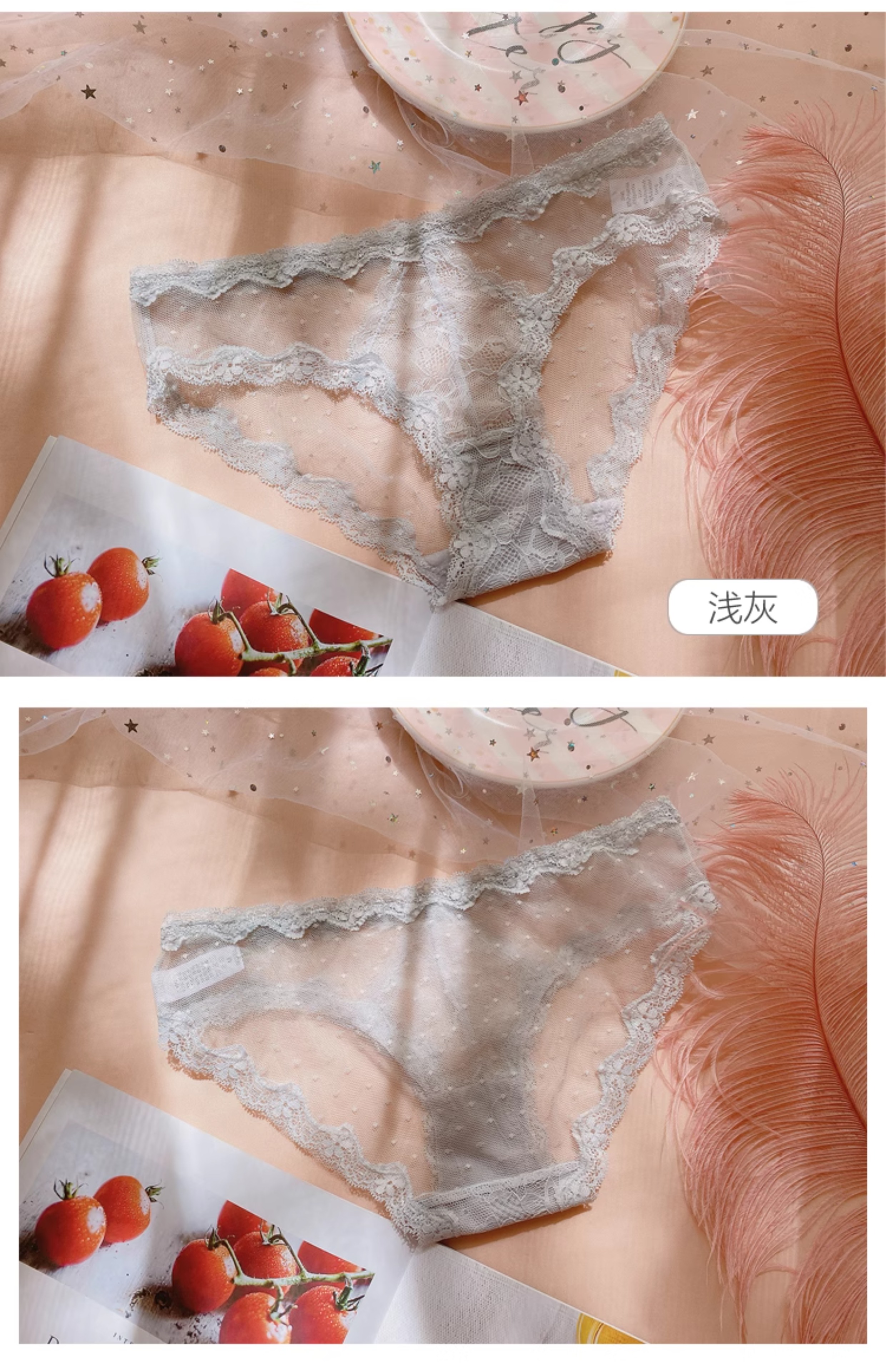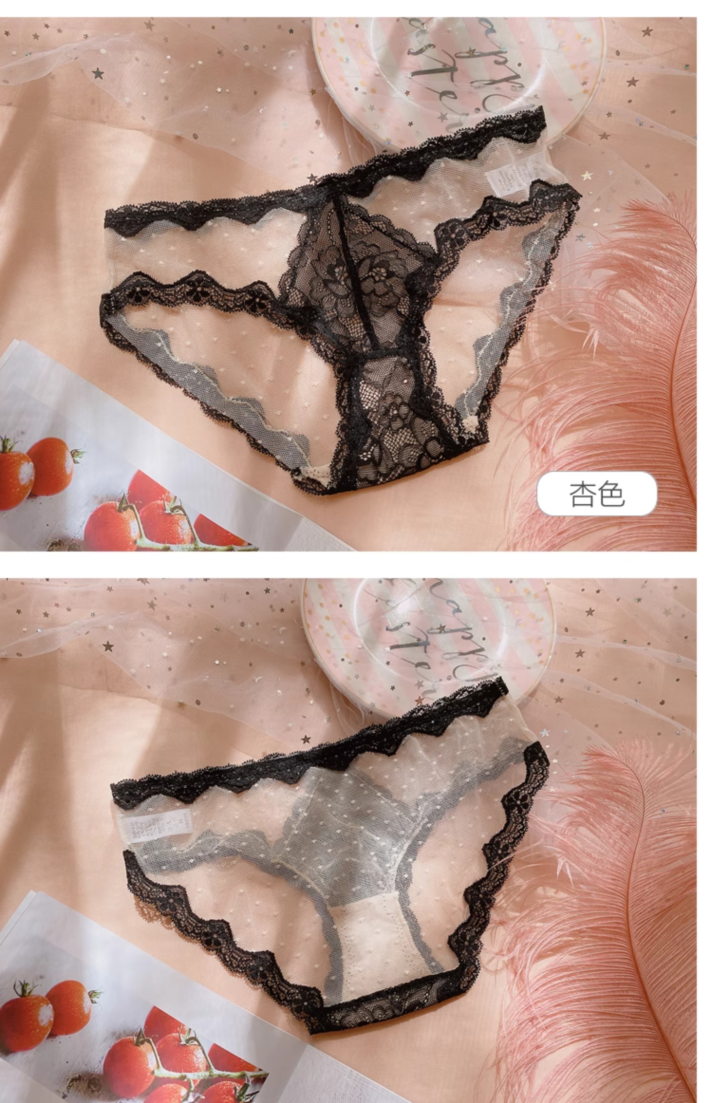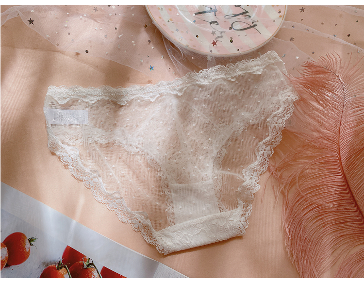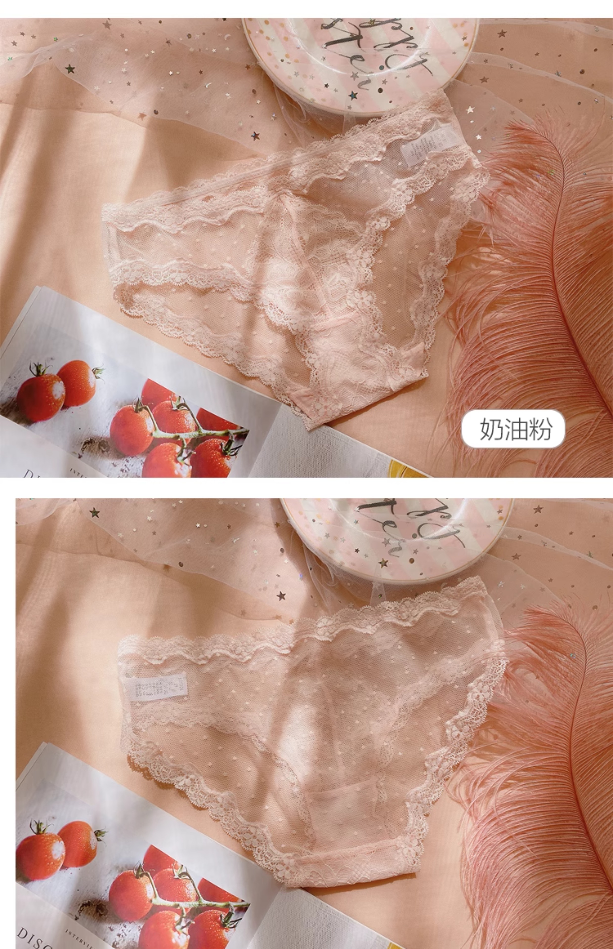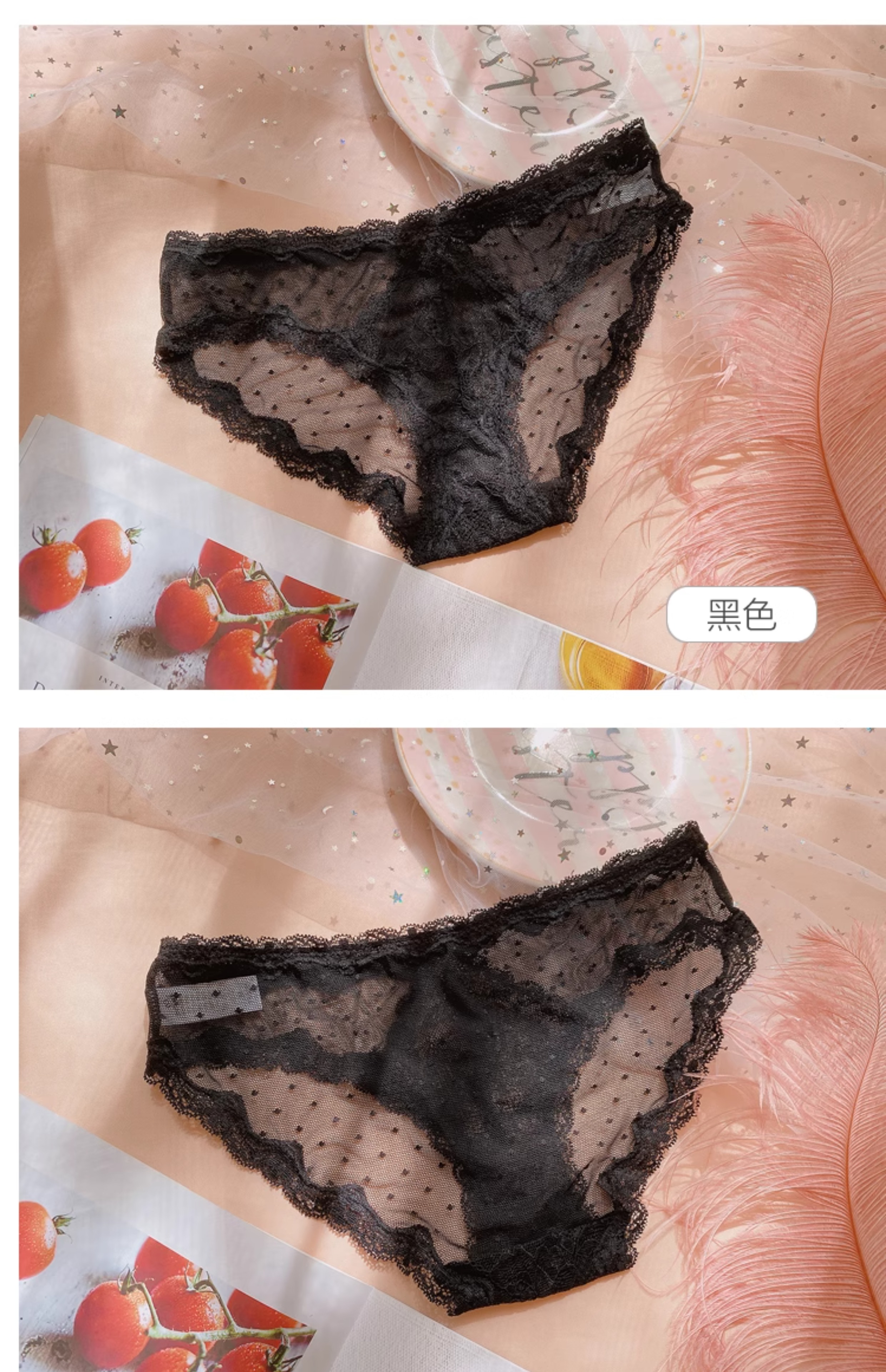 一米云间~网纱点点蕾丝低腰三角裤无痕镂空诱惑超薄性感少女内裤