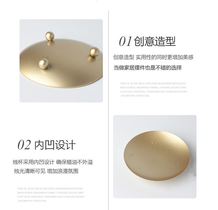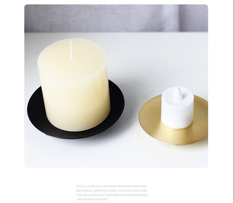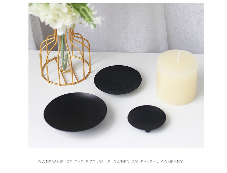 北欧复古圆形金色黑色香薰蜡烛托台铁艺托盘座摆件小烛台蜡台烛碟