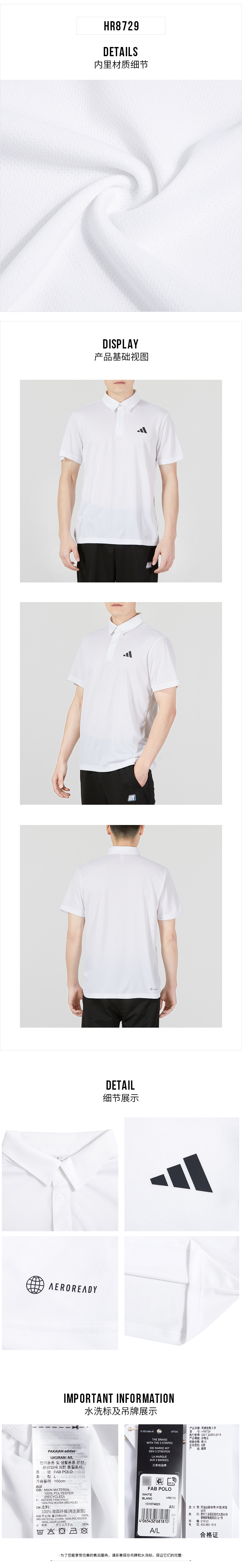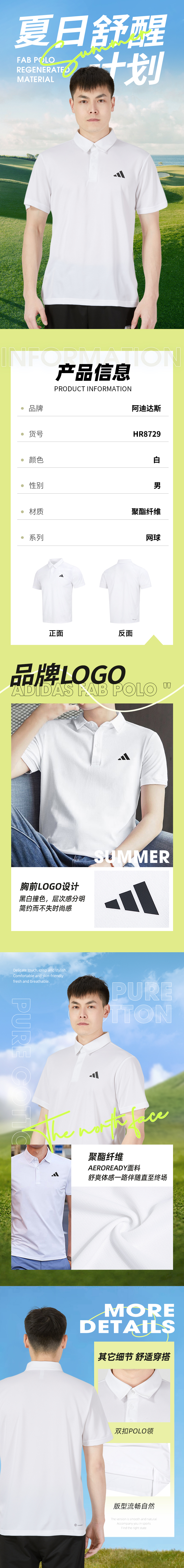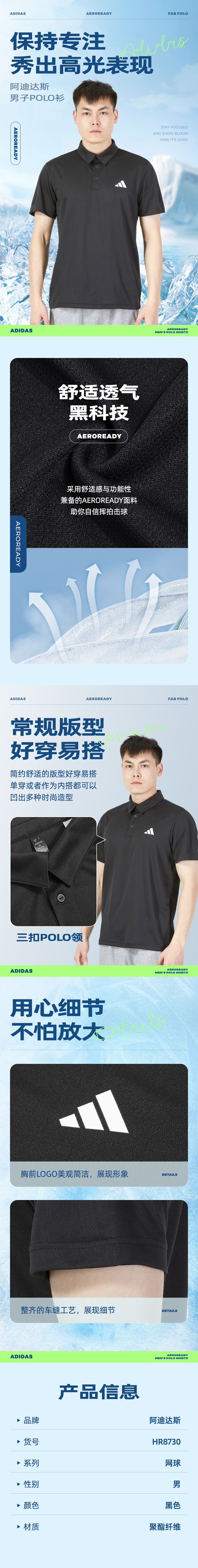 adidas阿迪达斯男装夏季新款快干翻领T恤短袖休闲POLO衫HR8729