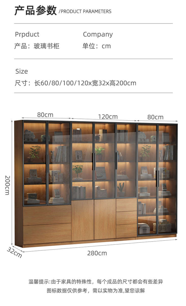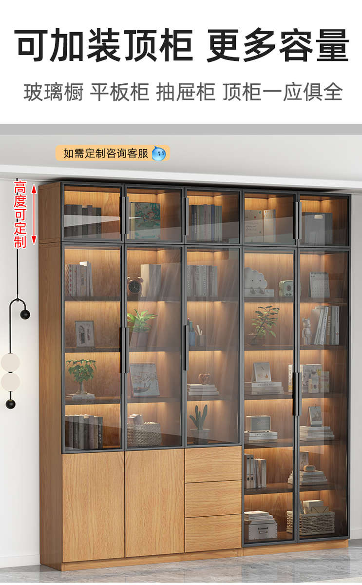 定制文件柜玻璃门书柜办公室置物柜档案资料陈列柜奖杯证书展示柜