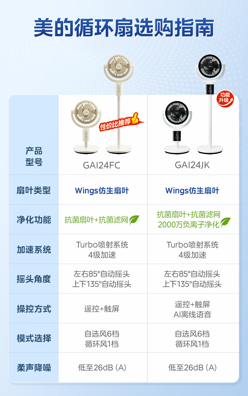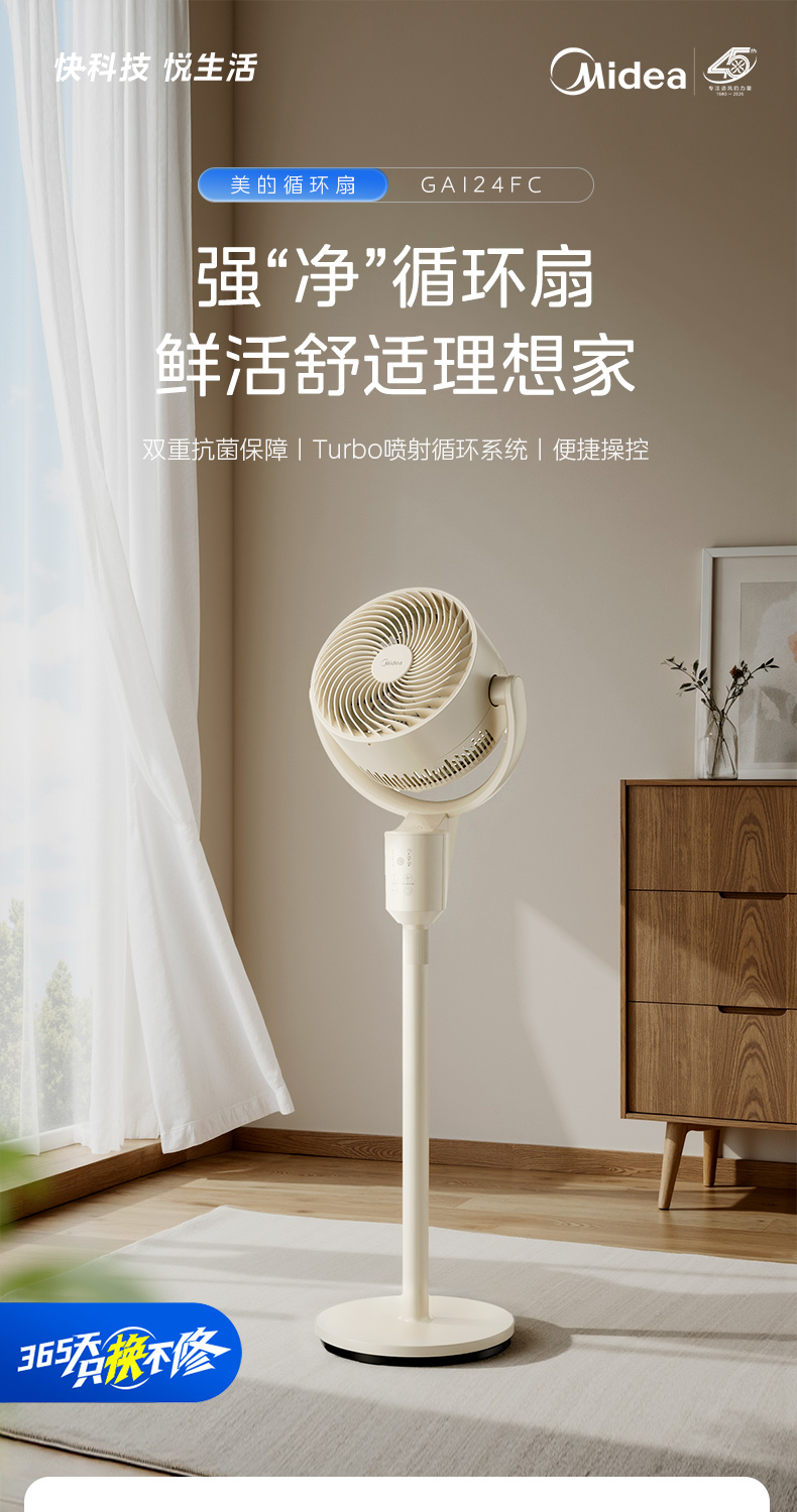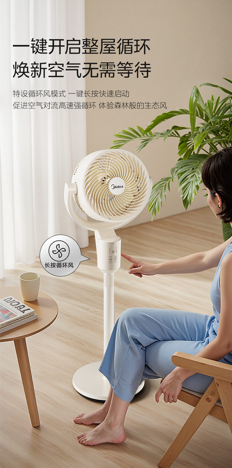 美的空气循环扇家用电风扇音静落地遥控超大风力台立式25新款卧室