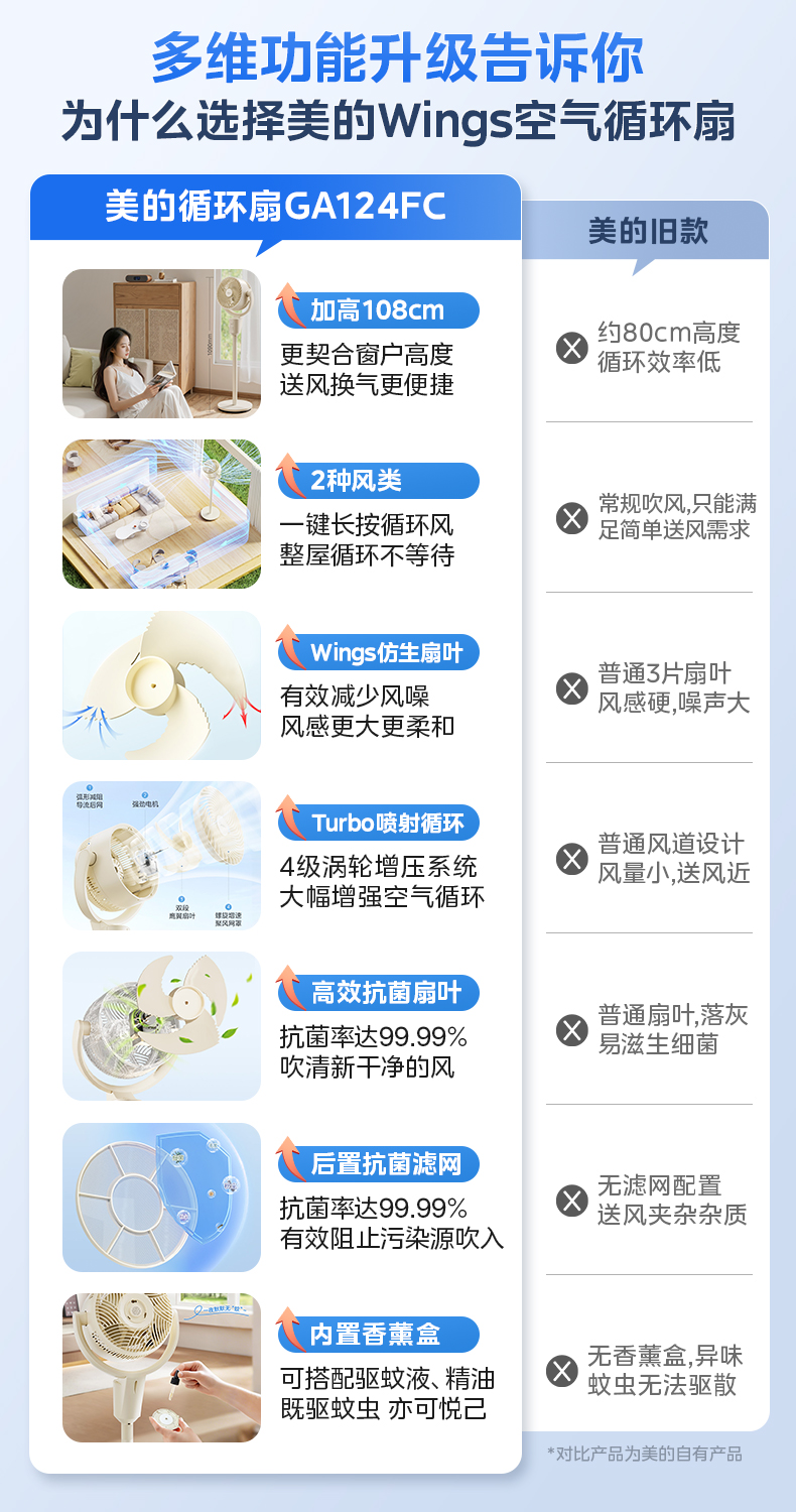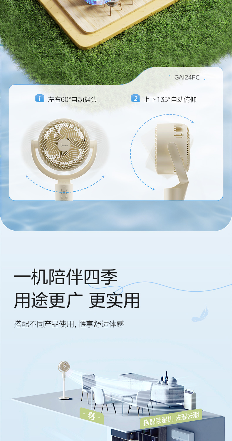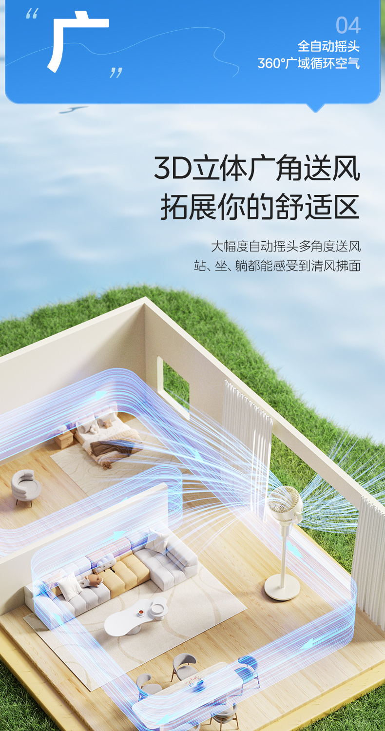 美的空气循环扇家用电风扇音静落地遥控超大风力台立式25新款卧室