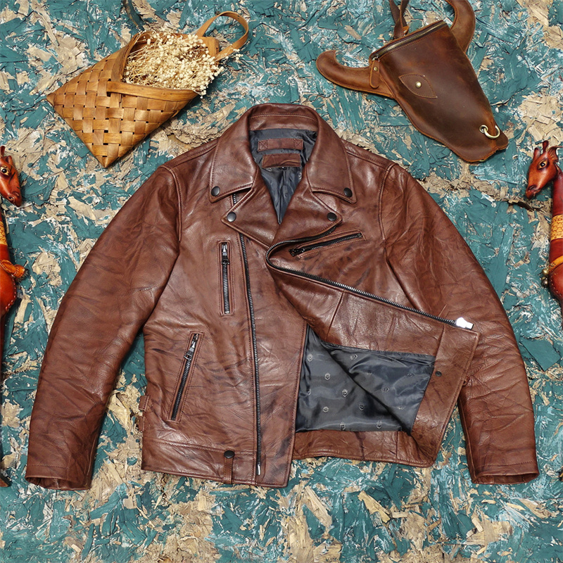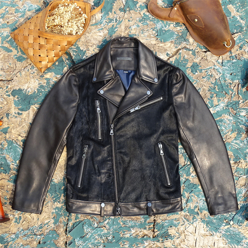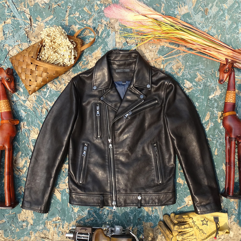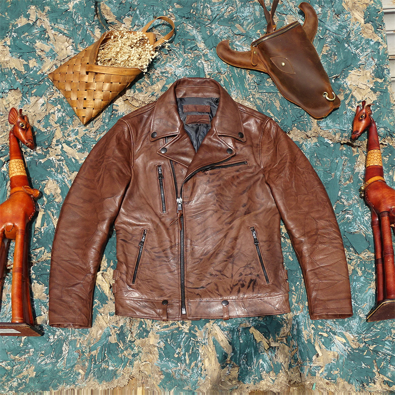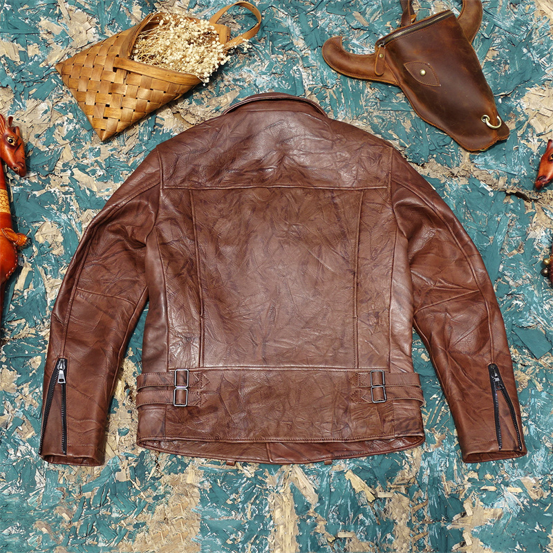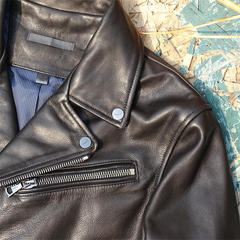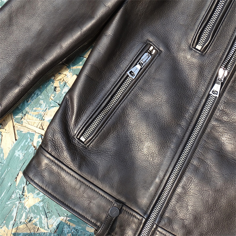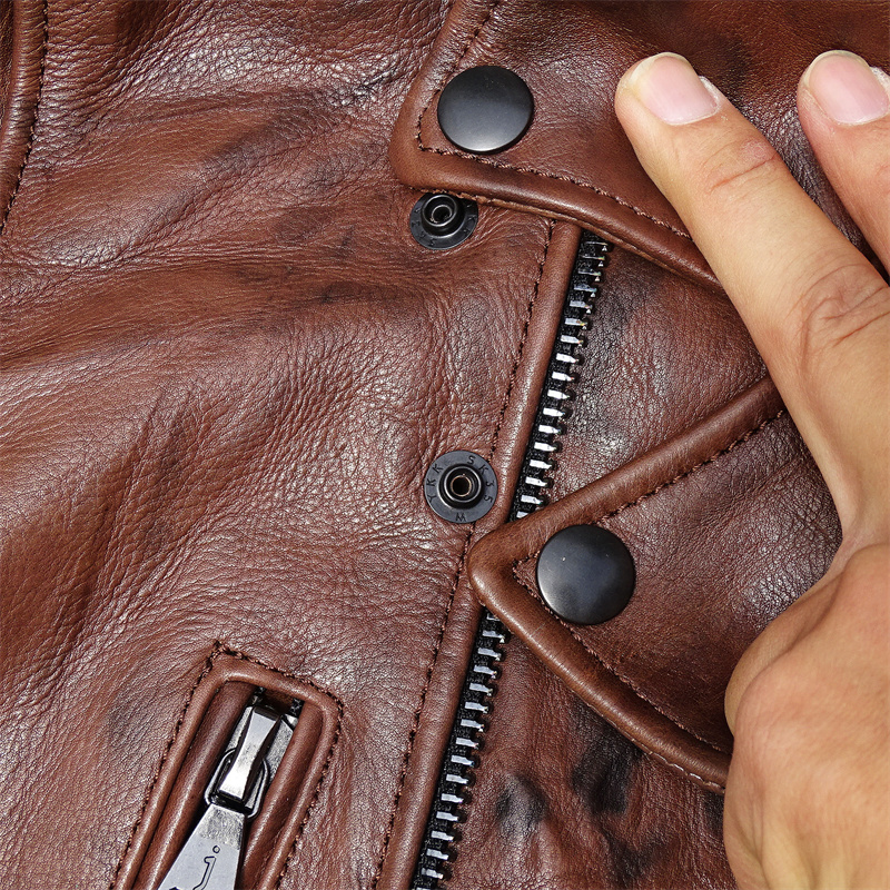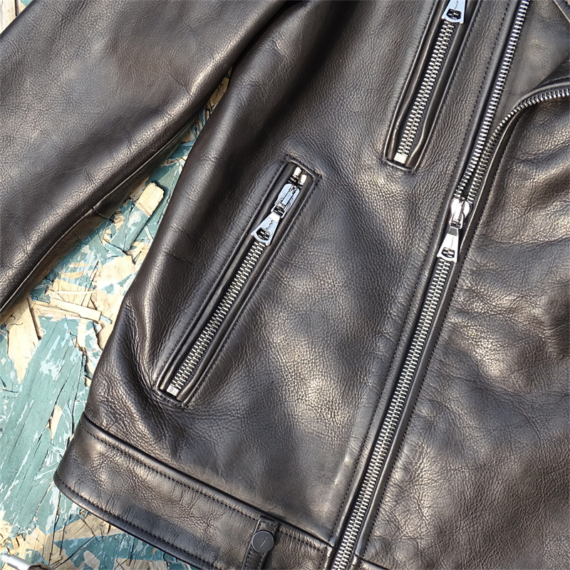 油蜡头层软糯厚实牛皮真皮皮衣男出口剩余100件经典修身帅气机车