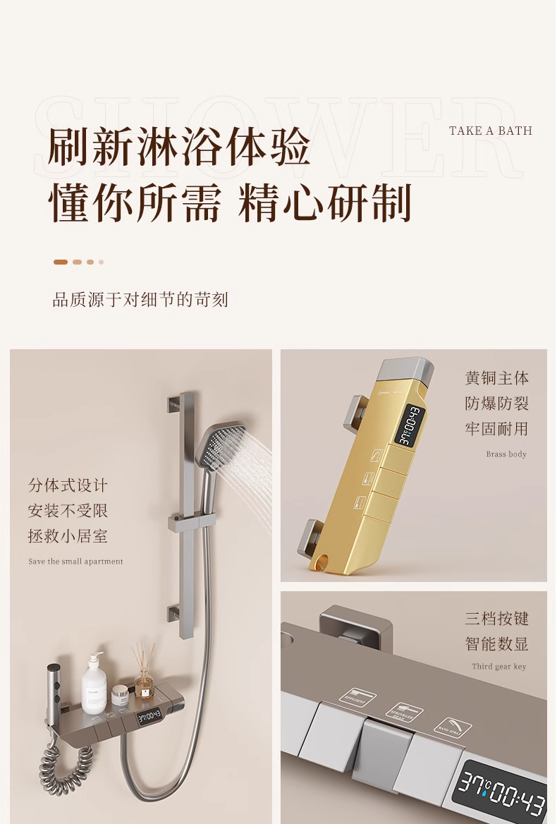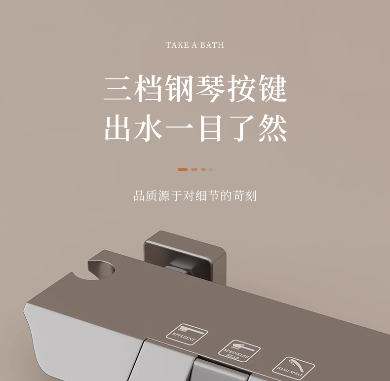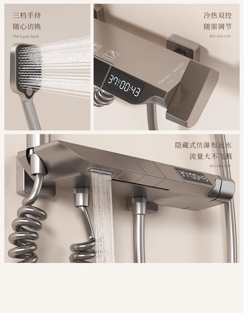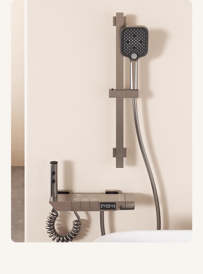 枪灰全铜混水阀冷热浴缸水龙头简易花洒无顶喷淋浴三合一家用套装