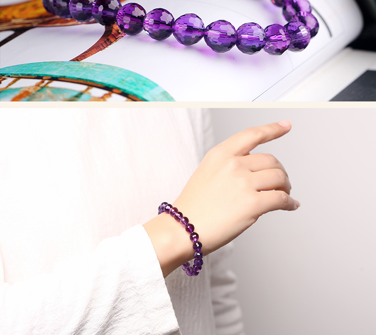巴西紫水晶128钻石切面刻面单圈手链手串女生饰品送女友升学礼品