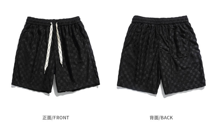 悟空有货夏季潮牌格子设计感休闲短裤男复古街头宽松bf风五分裤子