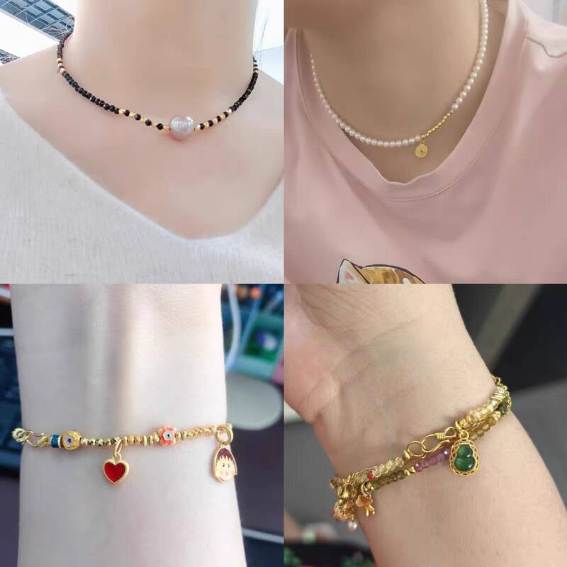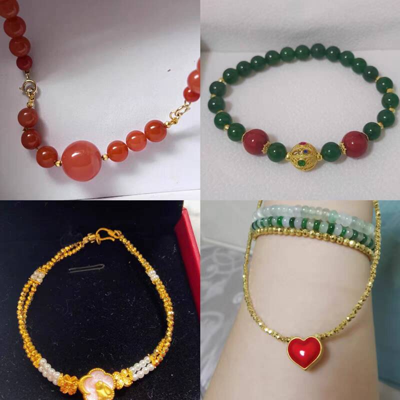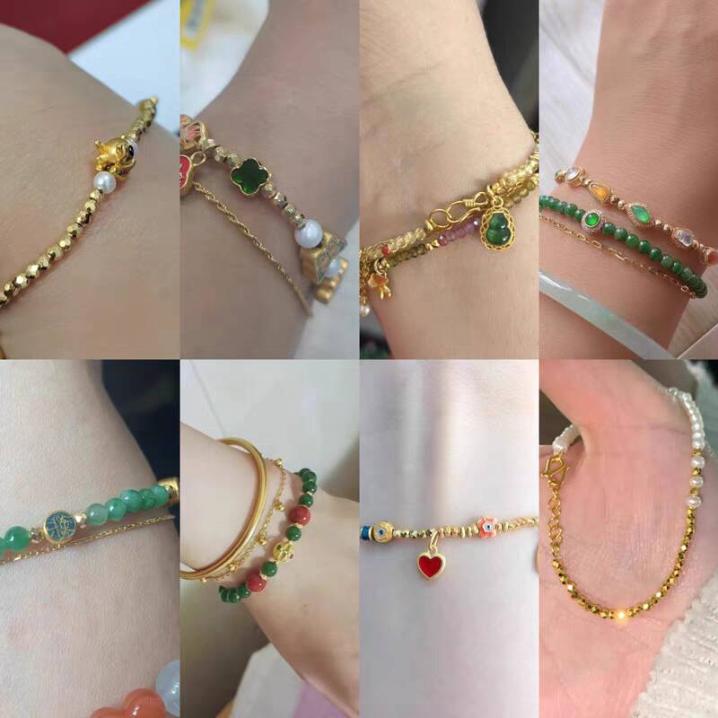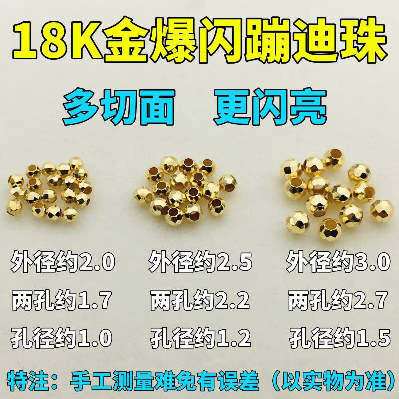 18K金蹦迪珠子散珠镭射足球金珠手链手串diy配件配饰路路通转运珠