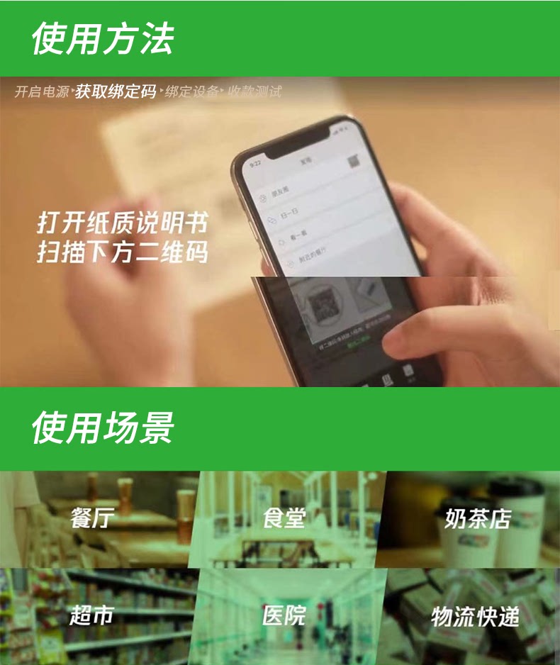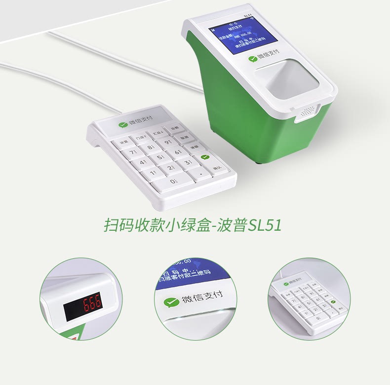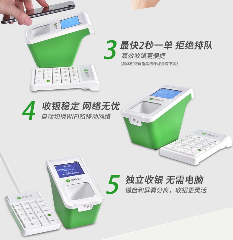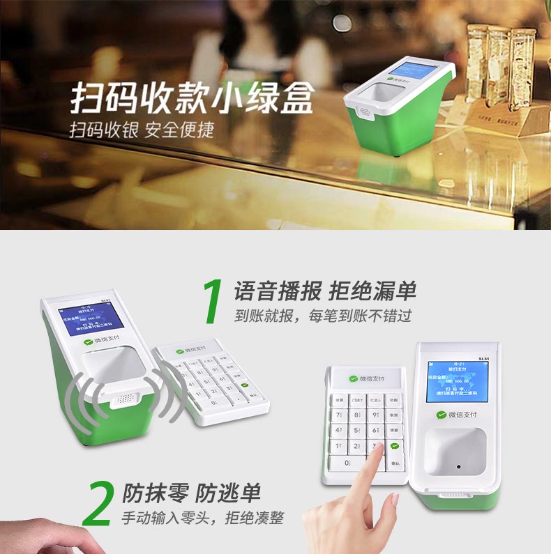 支付宝微信收款机扫码机超市收银餐饮学校食堂独立收款小绿盒W3