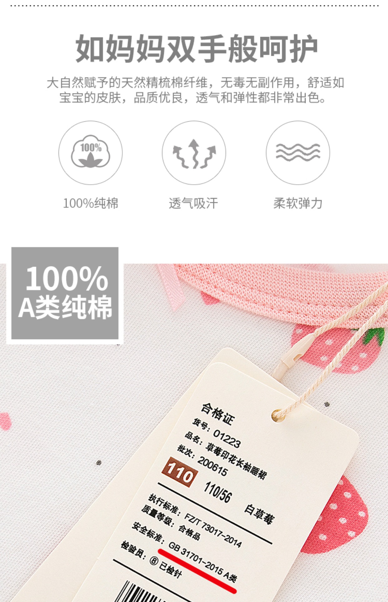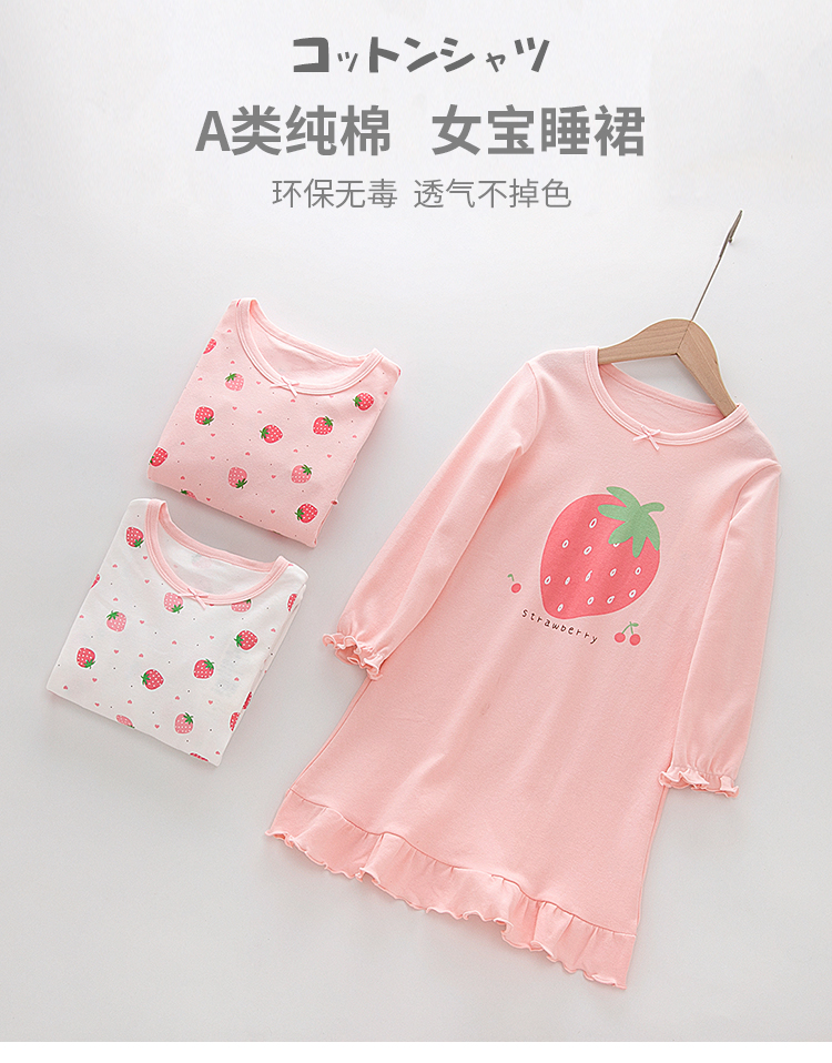 春季儿童纯棉长袖睡裙子女童宝宝家居服起居睡衣裙 中小大童女孩