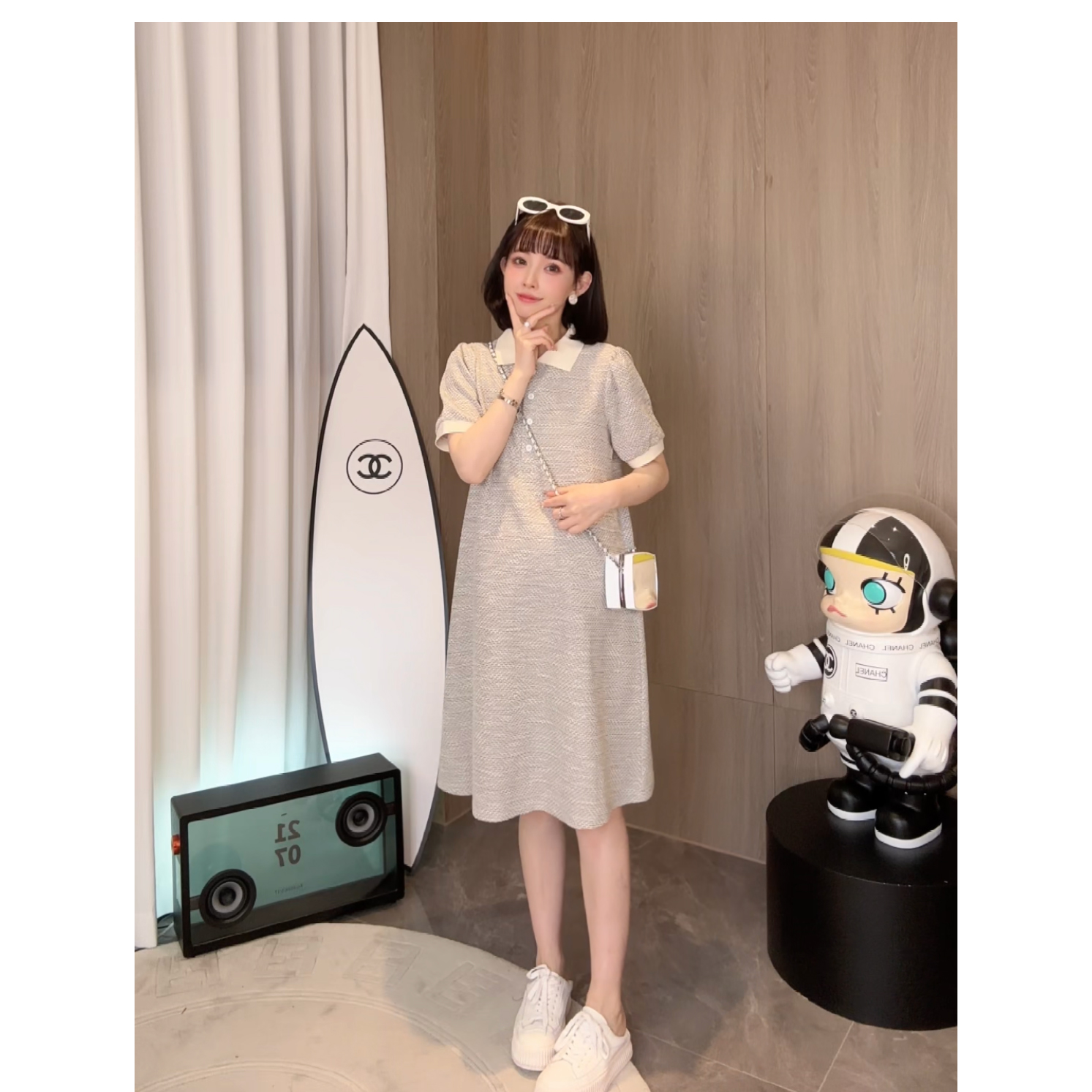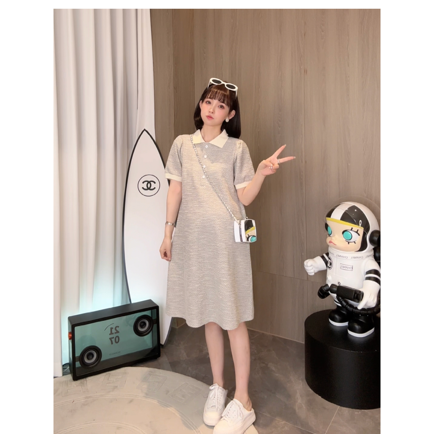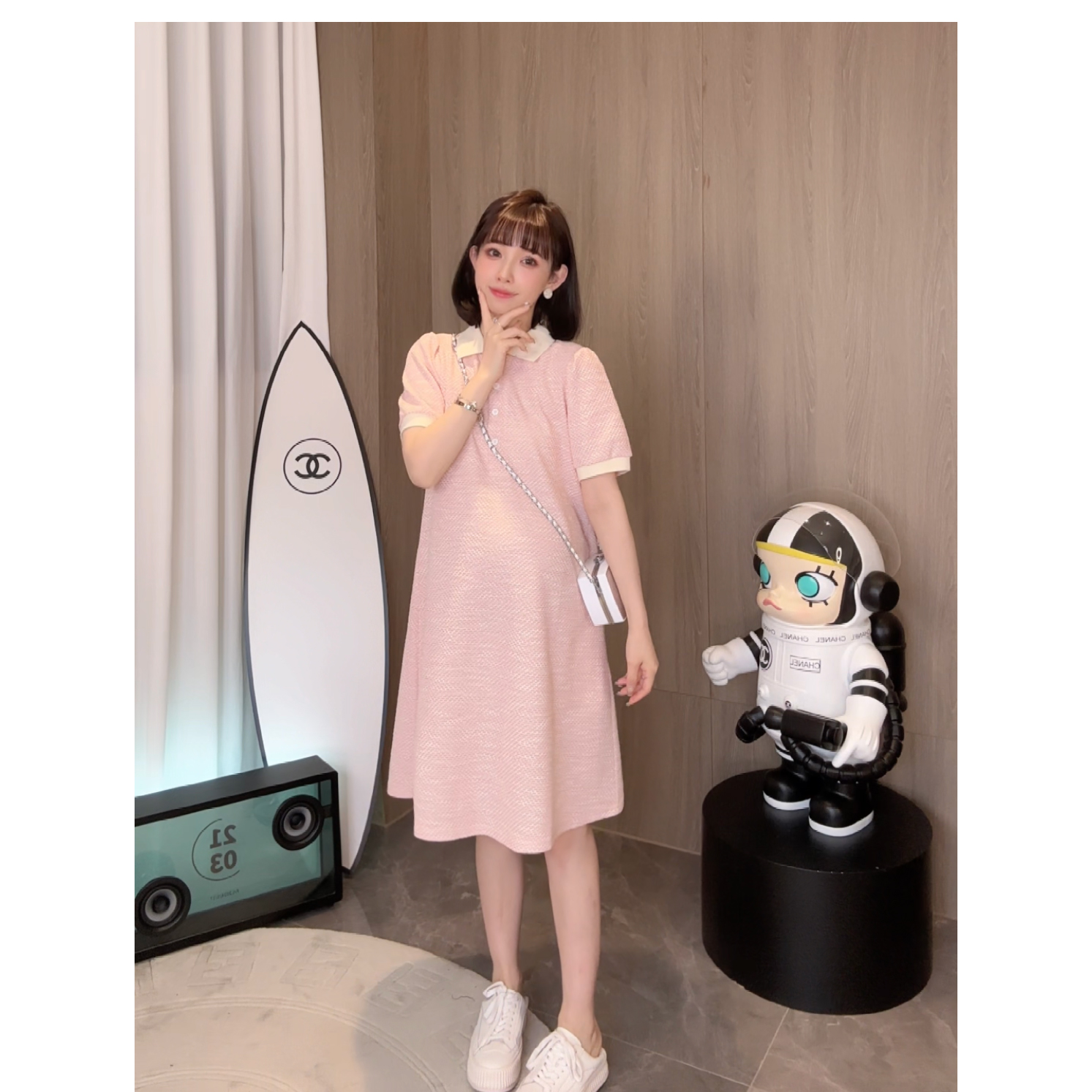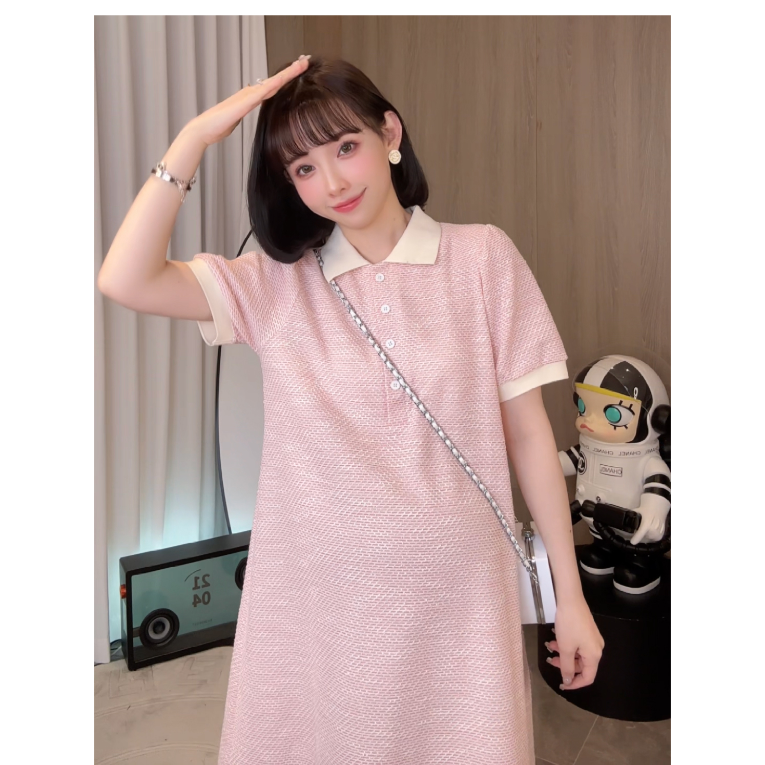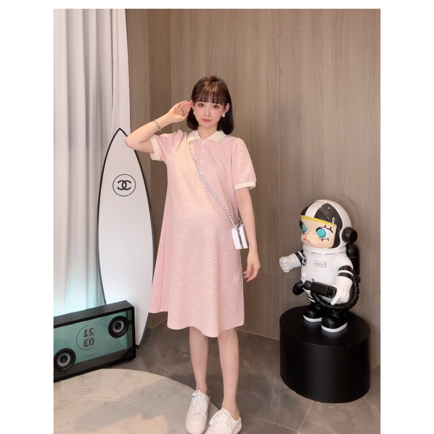 娜娜的孕期穿搭孕妇装夏装短袖洋气中长款polo连衣裙