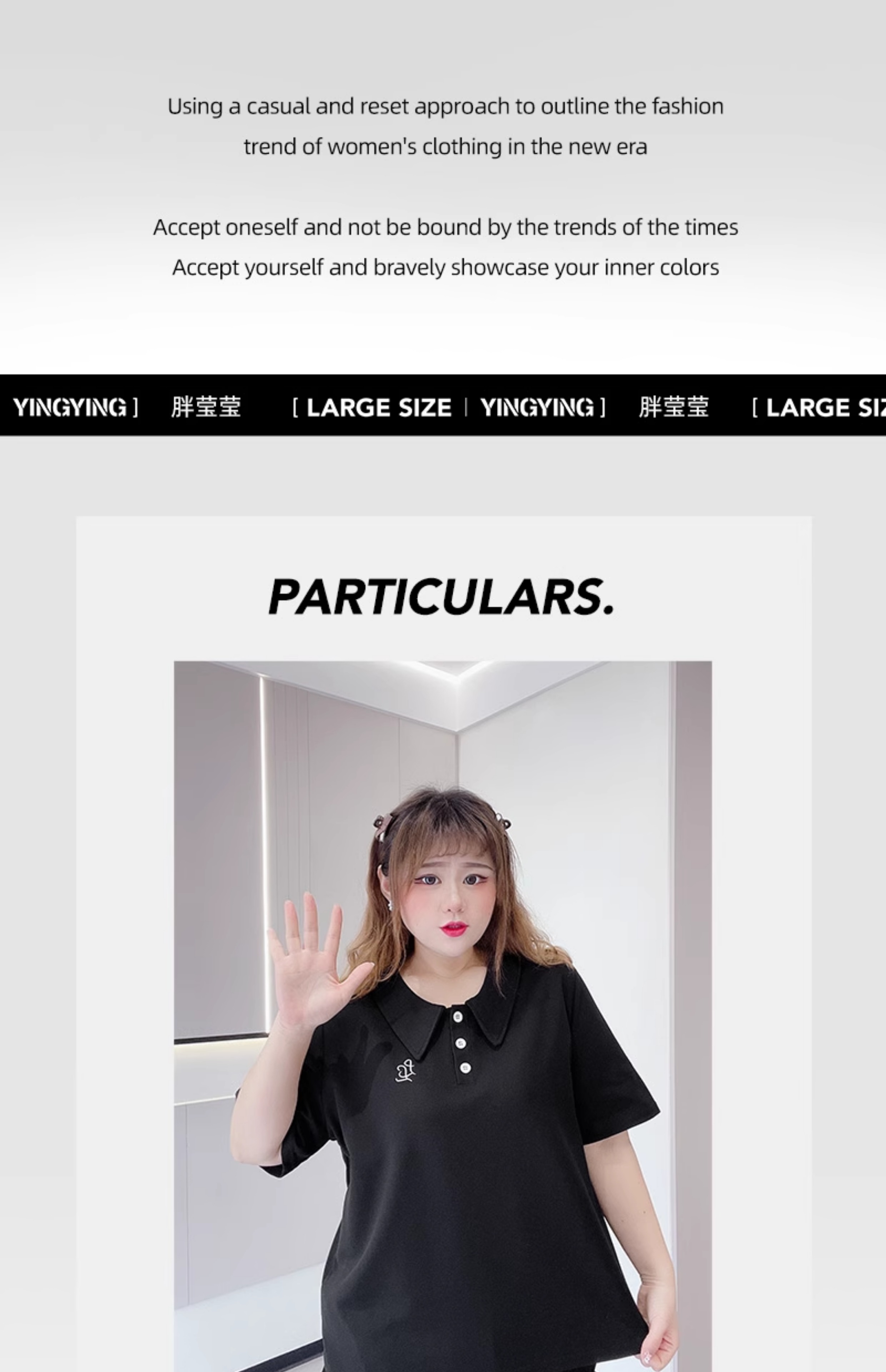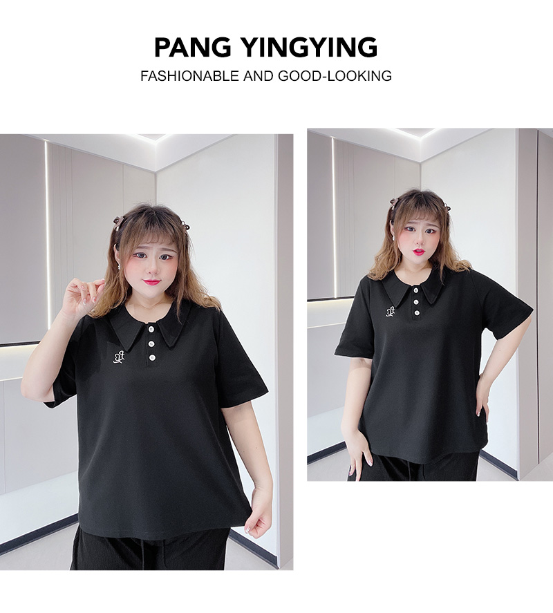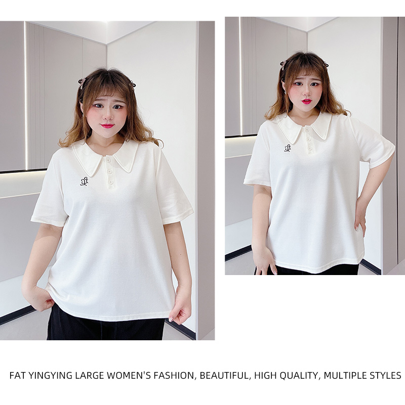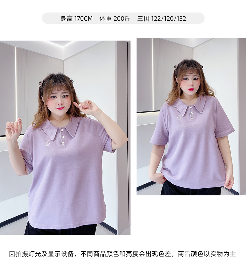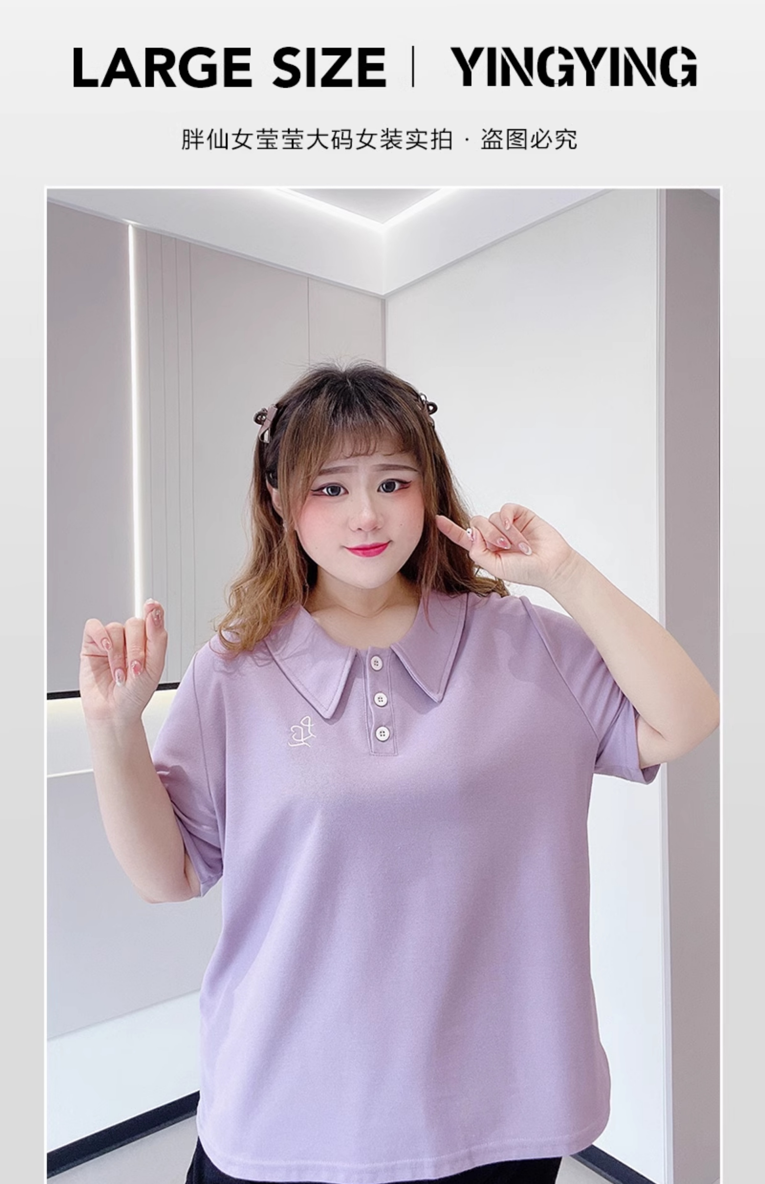 240斤胖莹莹大码女装运动胖妹清新减龄休闲polo领学院风短袖t恤