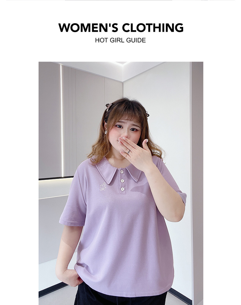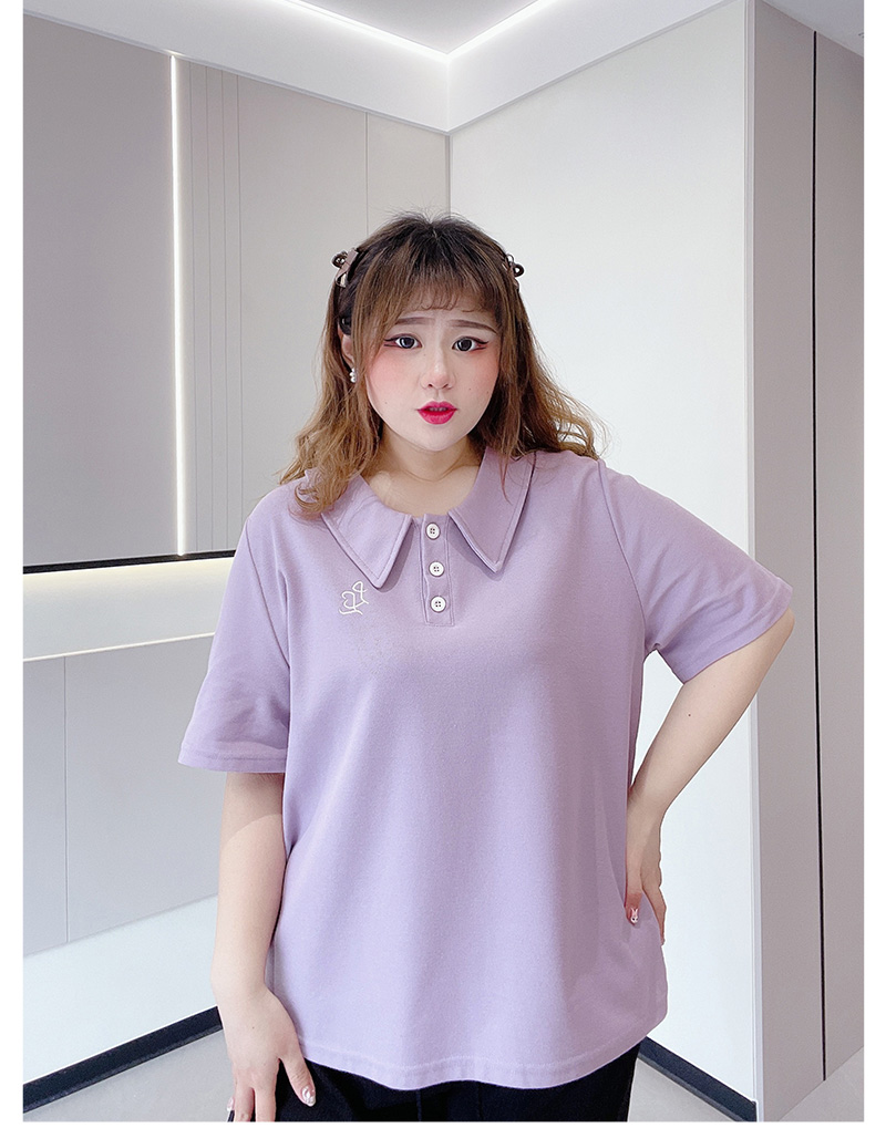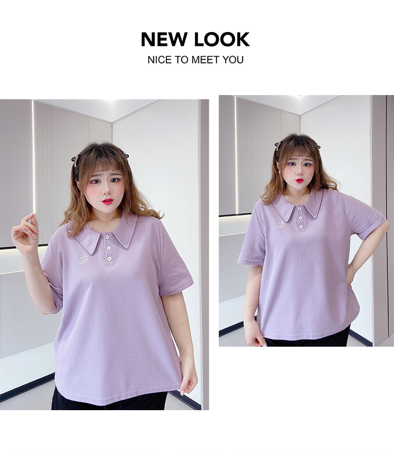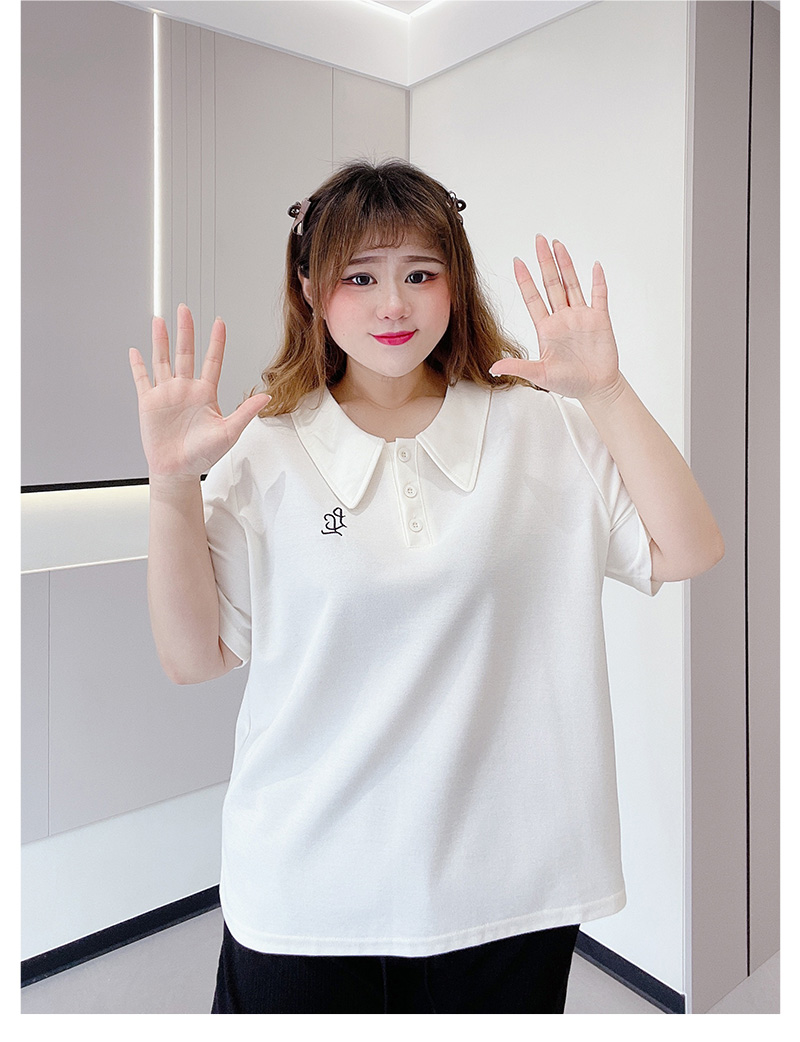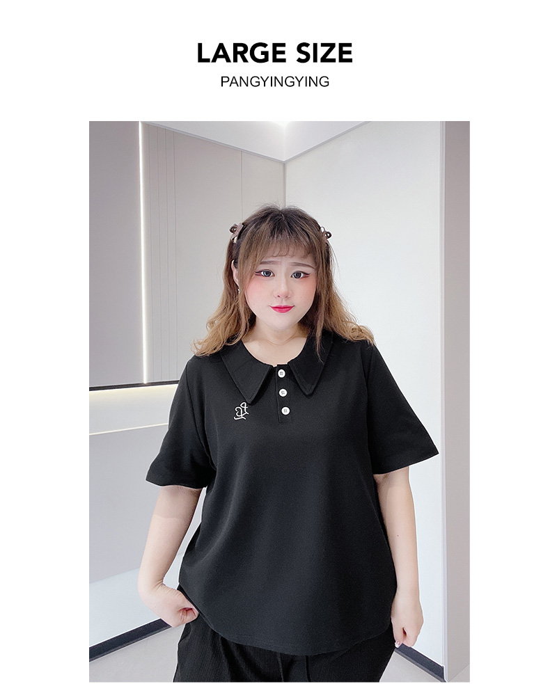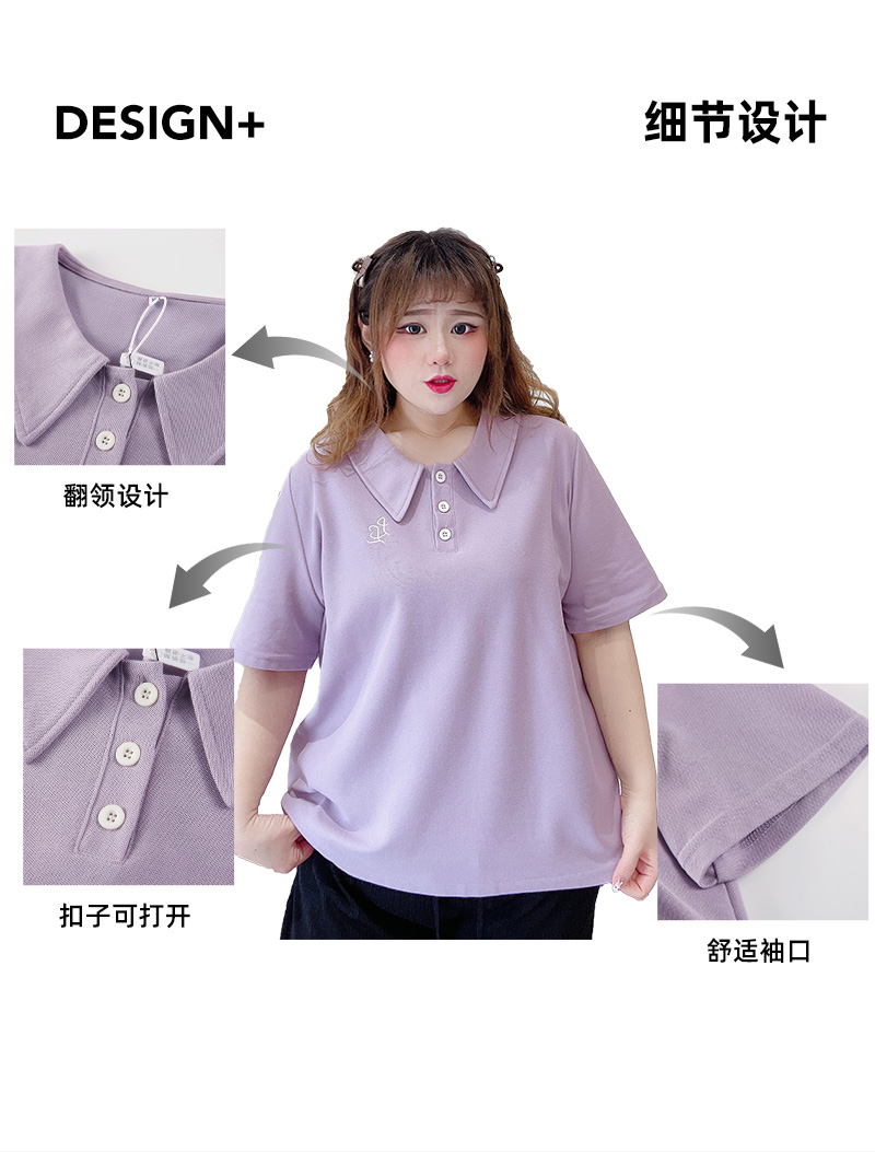 240斤胖莹莹大码女装运动胖妹清新减龄休闲polo领学院风短袖t恤
