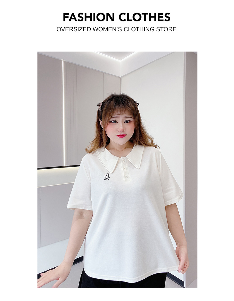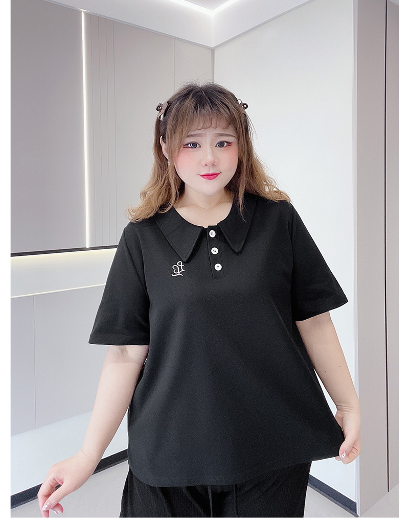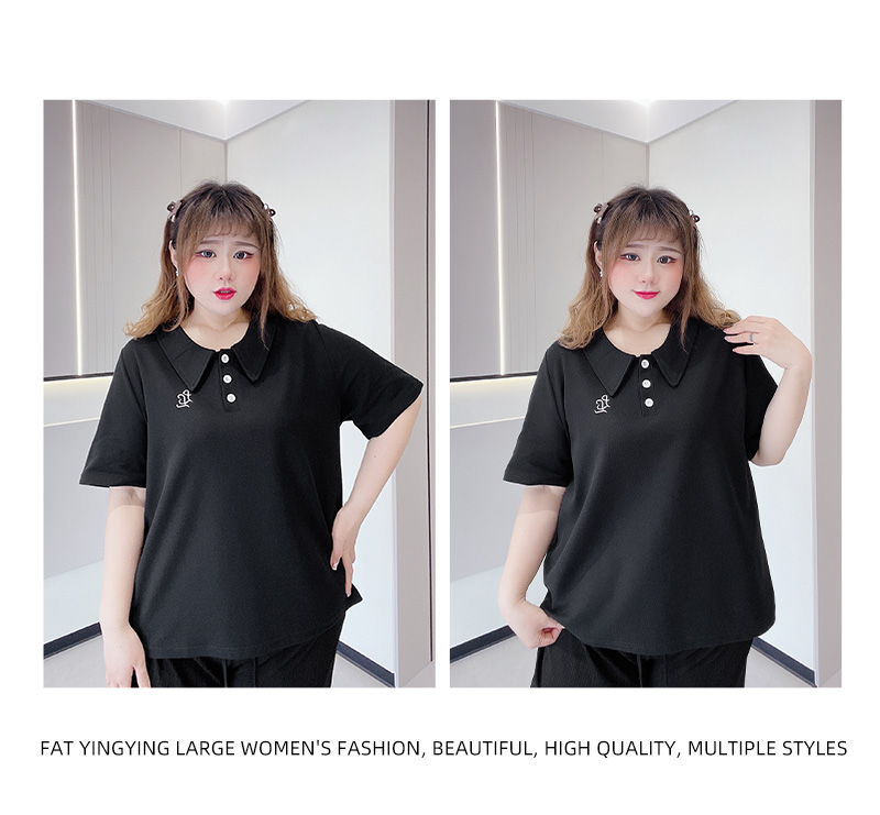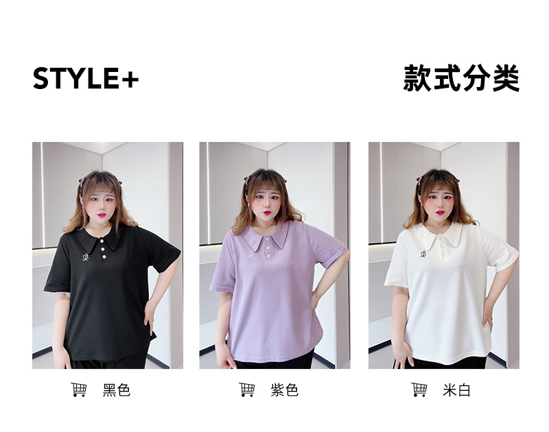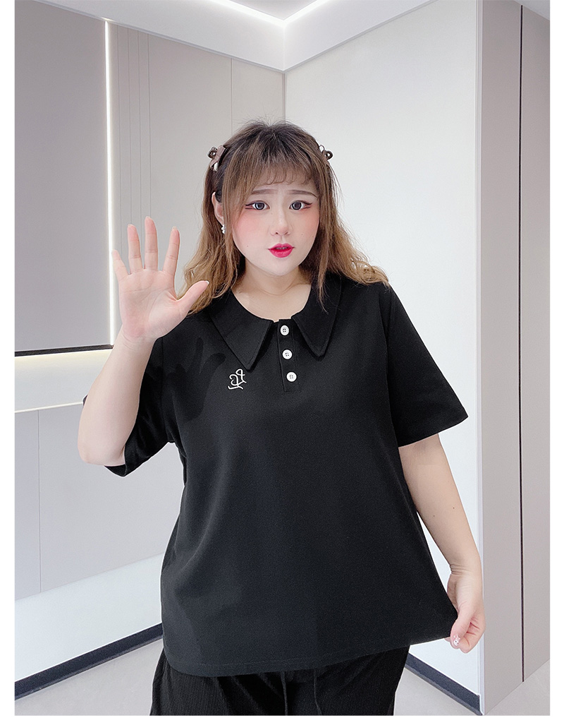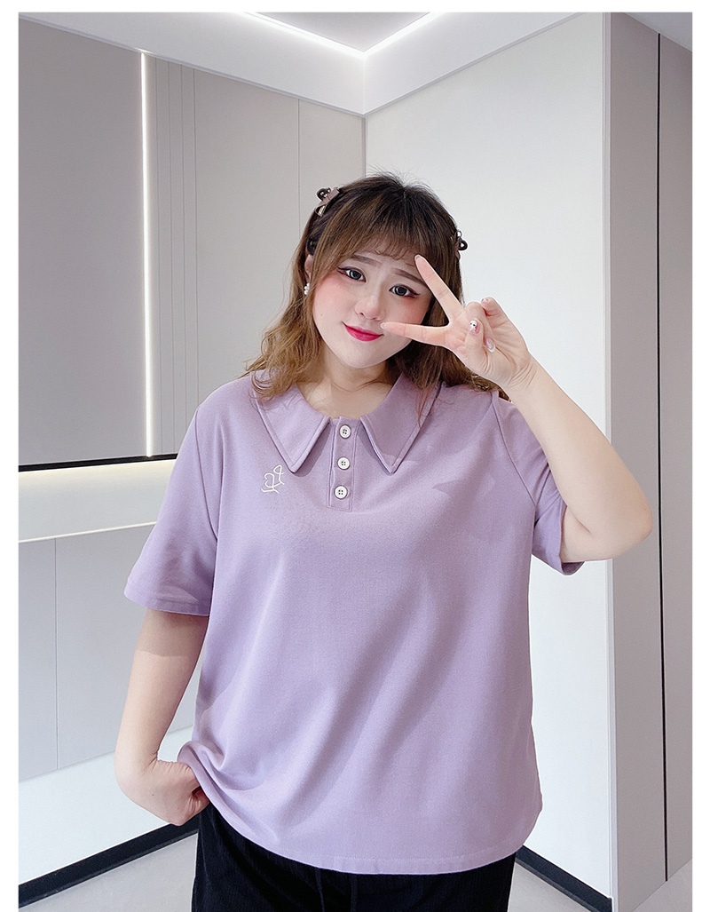240斤胖莹莹大码女装运动胖妹清新减龄休闲polo领学院风短袖t恤
