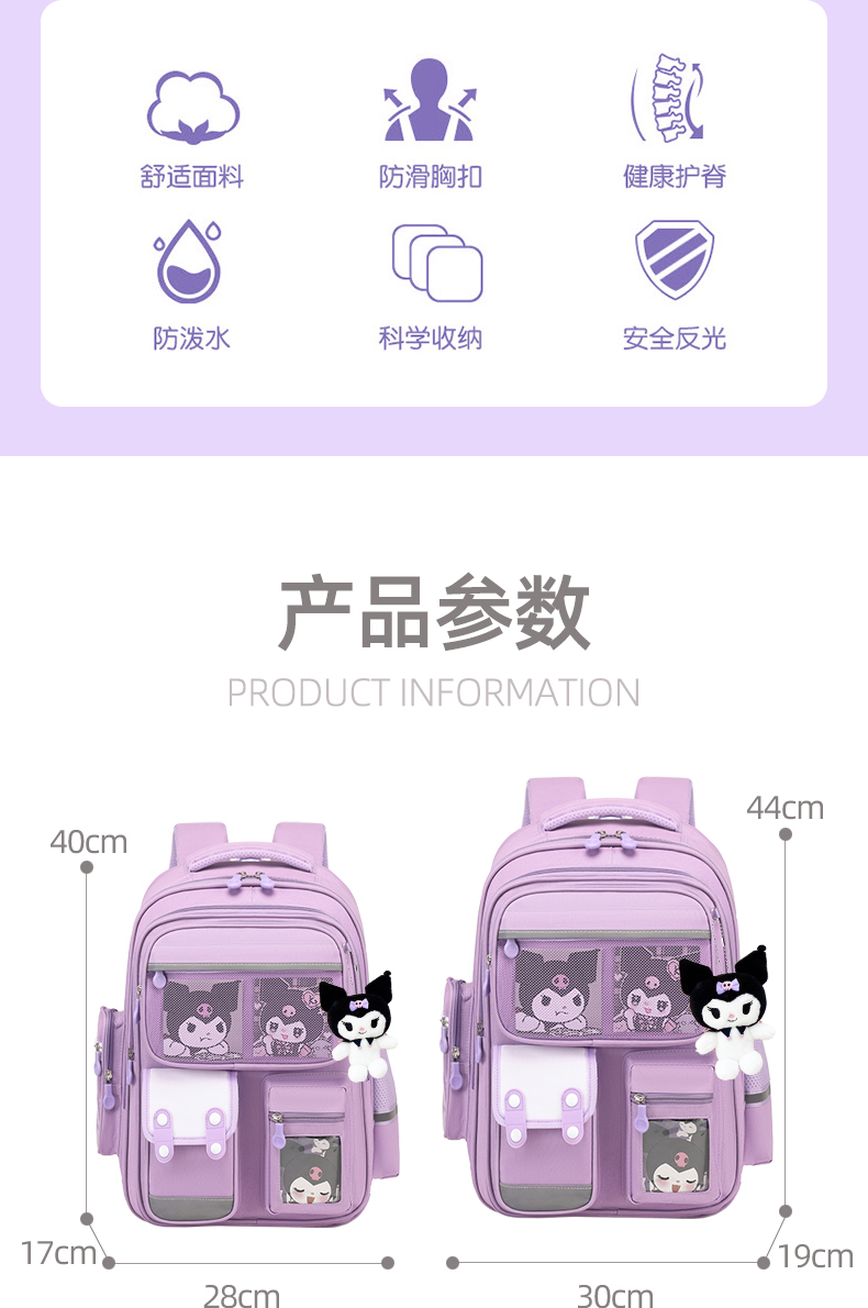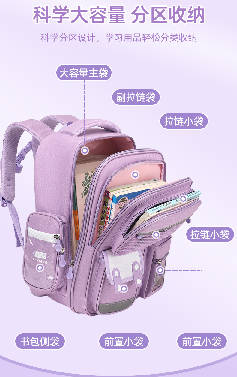库洛书包米女孩小学生一三四五六年级2024新款减负护脊儿童双肩包