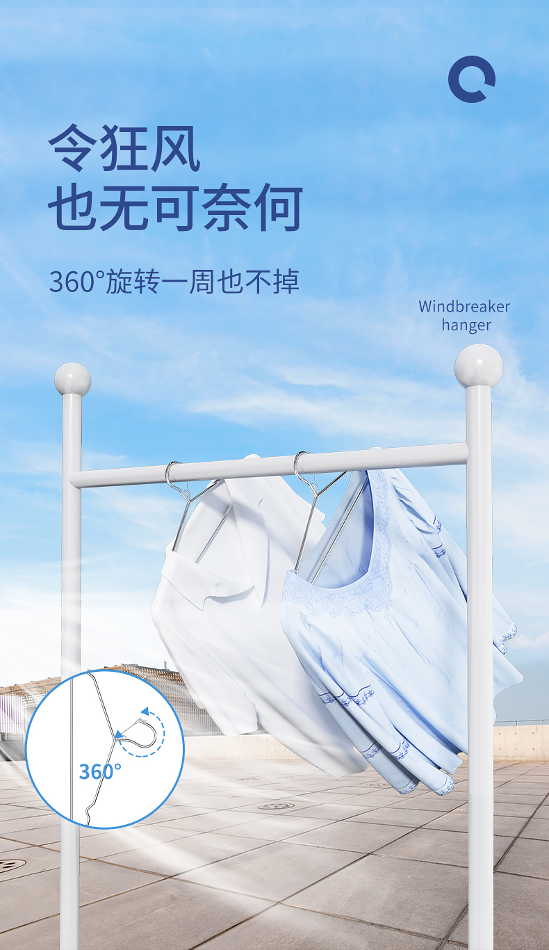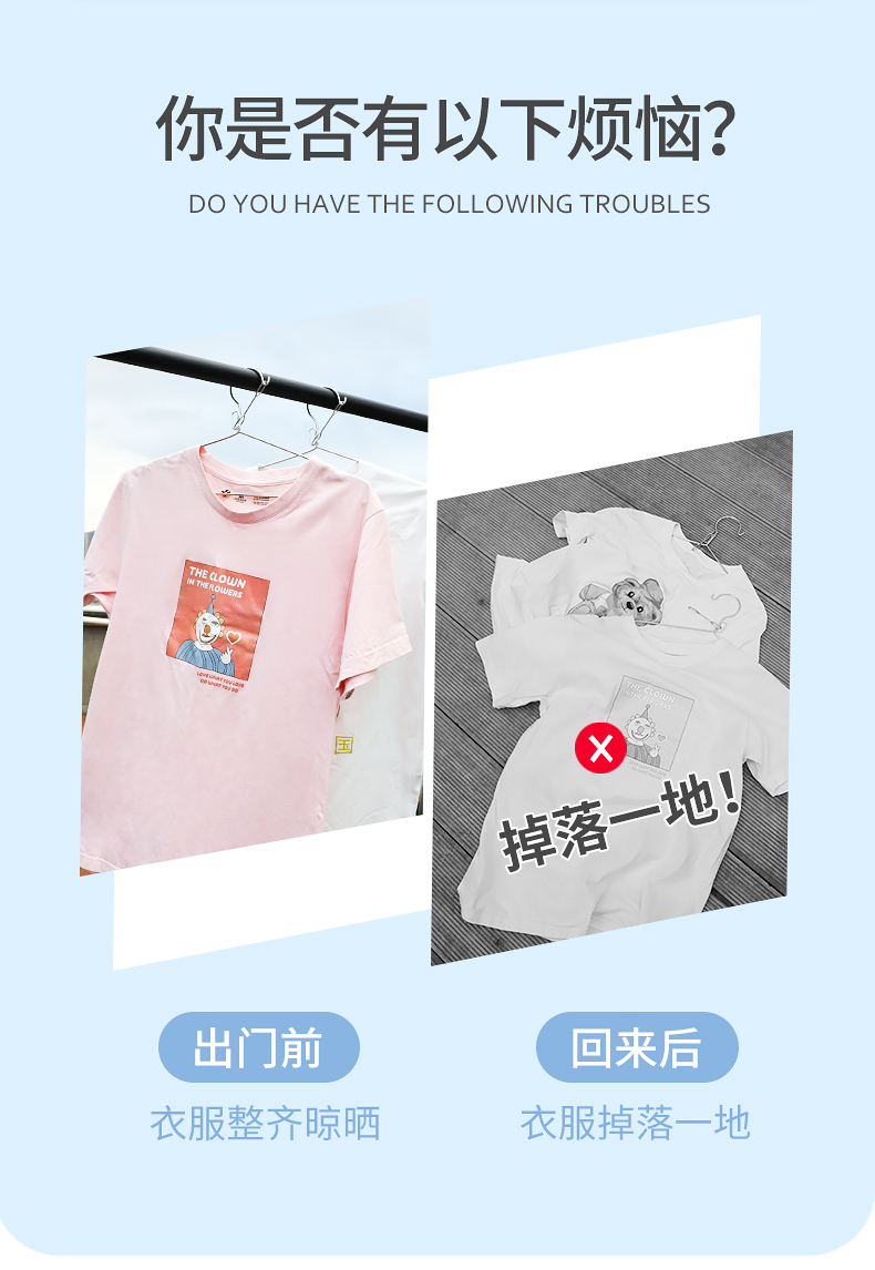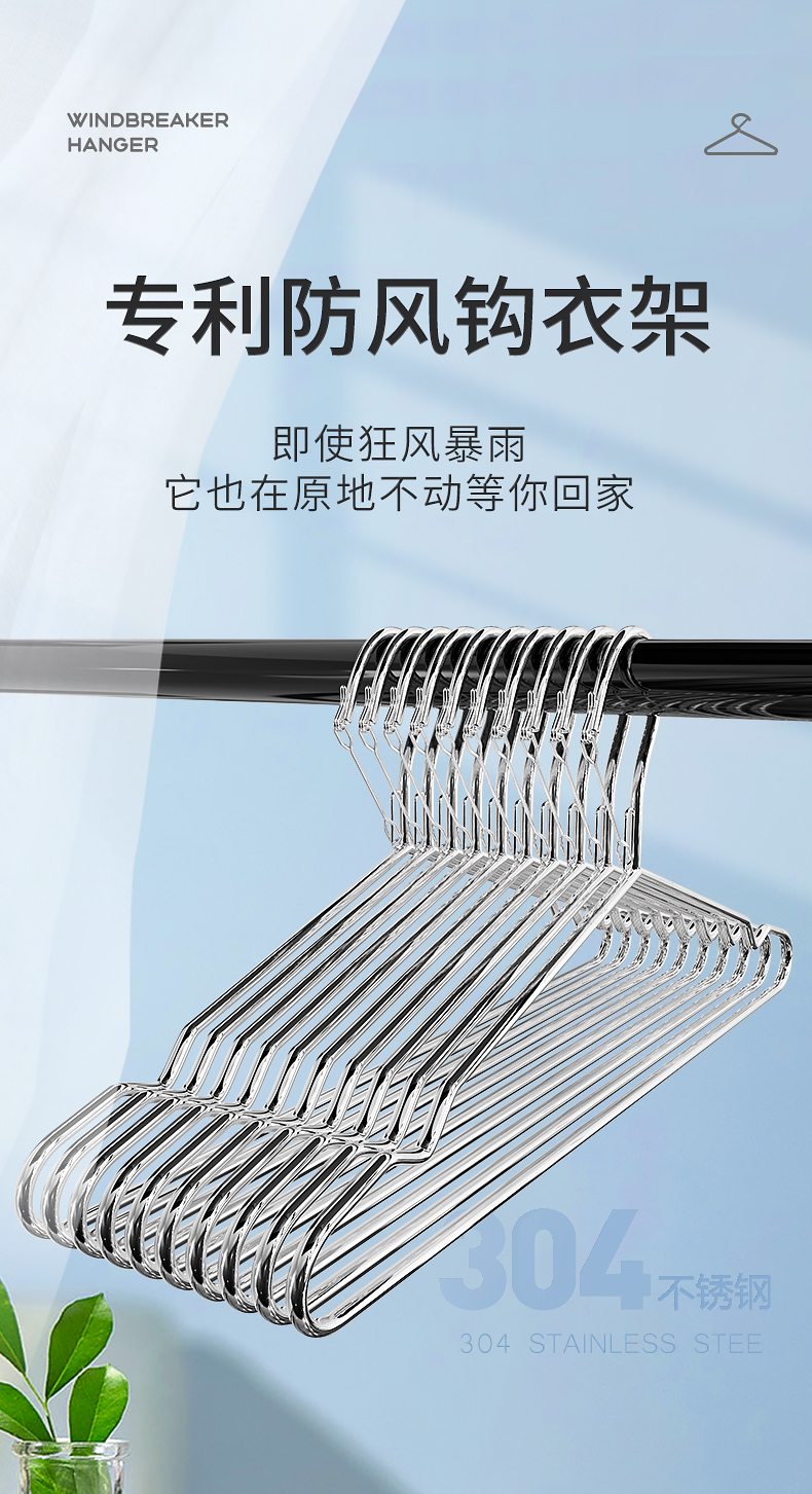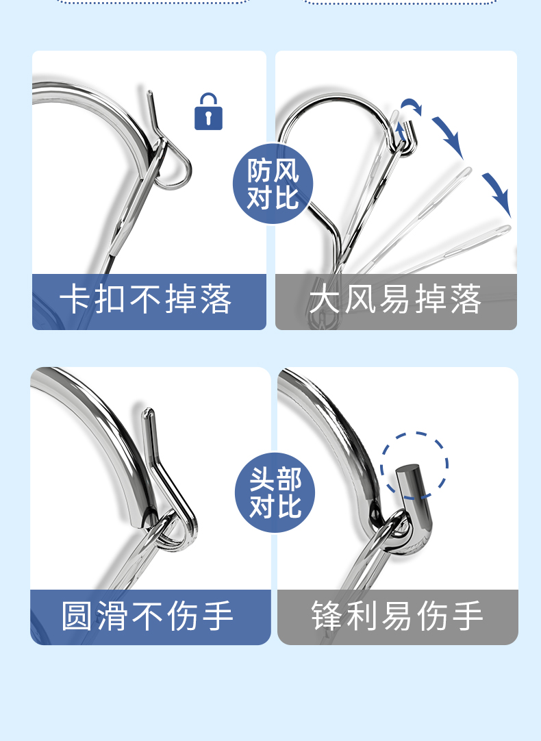 防风衣架不锈钢晾衣架家用固定防风扣防吹落防掉卡扣户外挂衣服架