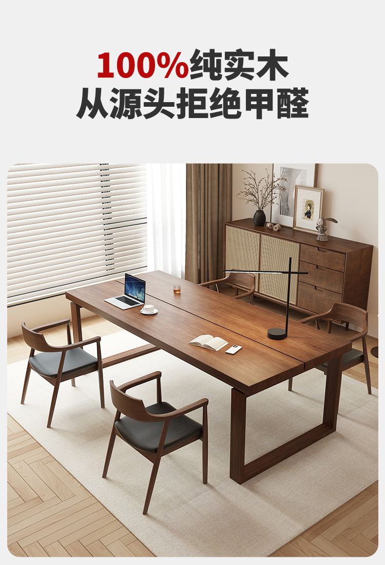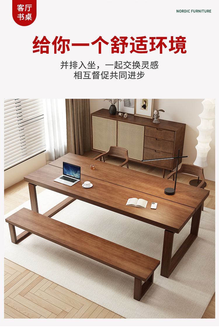莫比恩实木书桌餐桌一体大板长桌家用办公桌工作台客厅书房学习桌