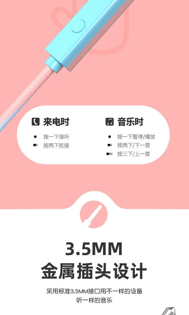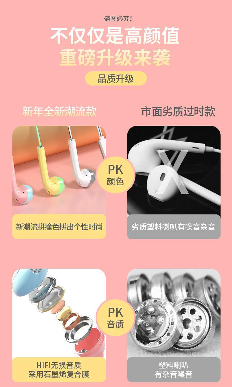 手机通用耳机线高音质适用苹果华为vivopp小米学生听歌可爱耳麦塞