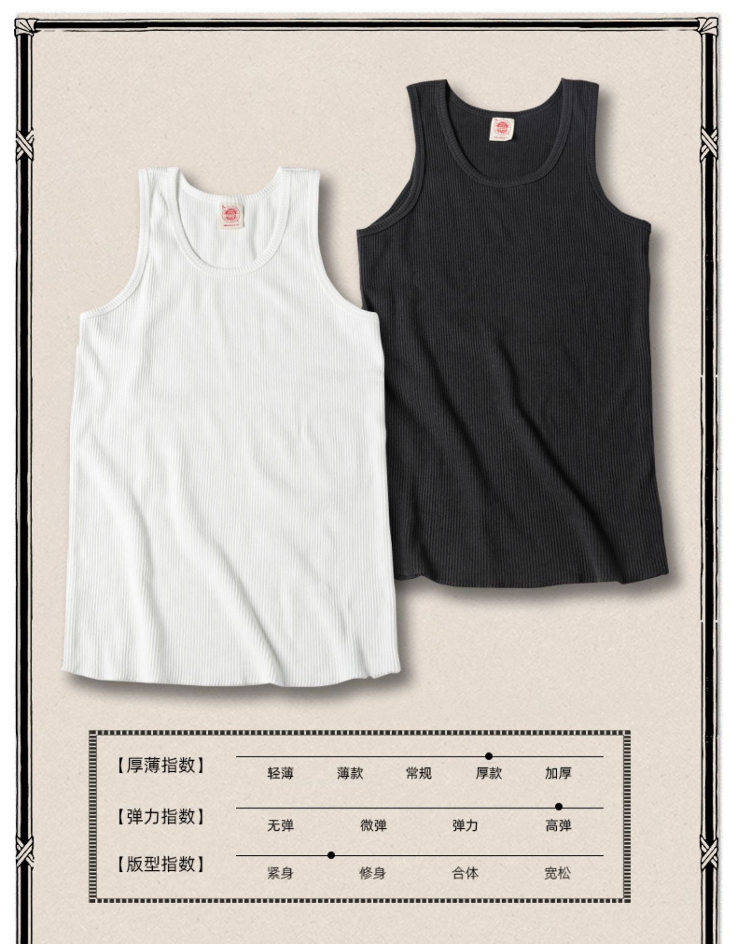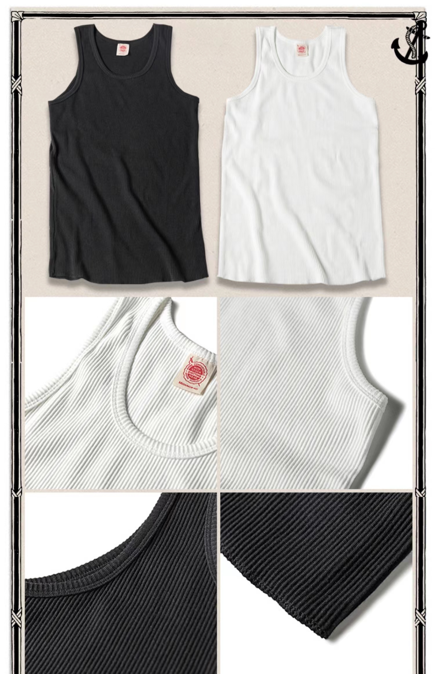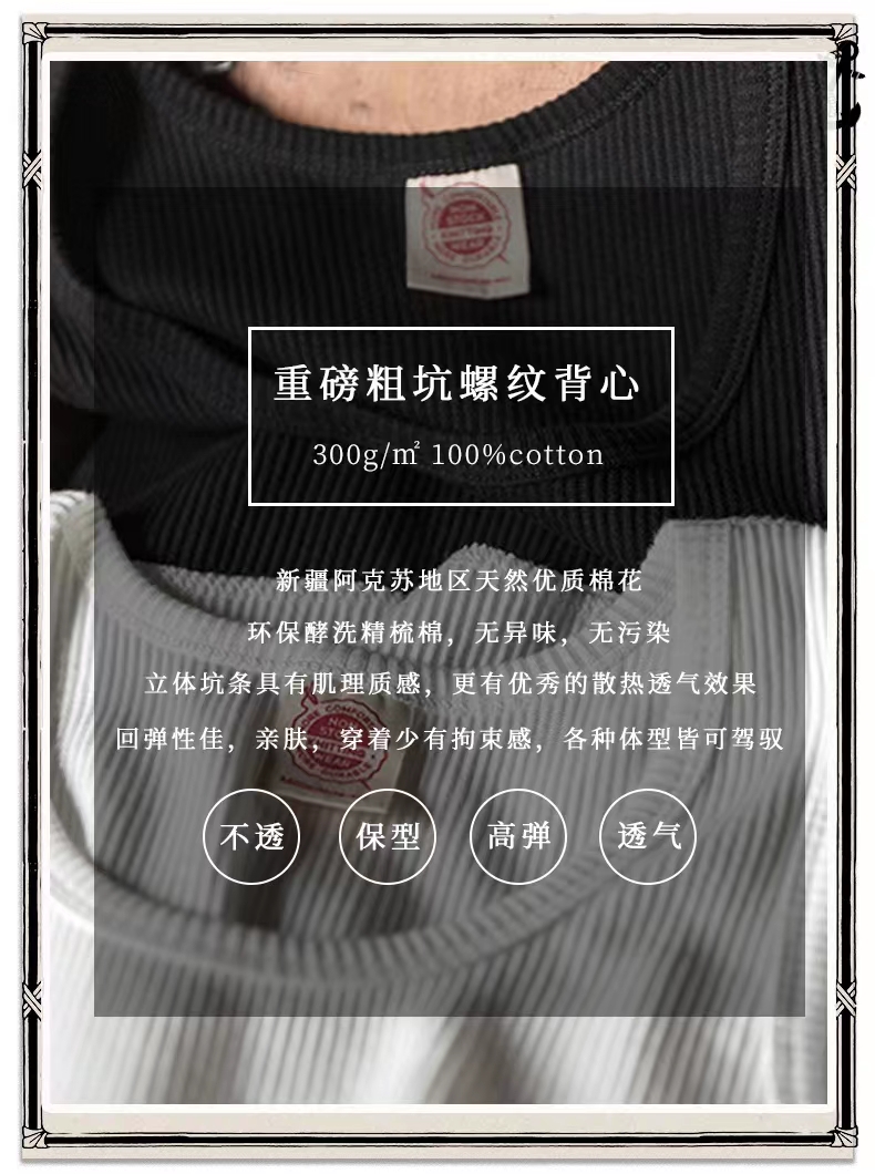 重磅美式无袖运动坎肩背心男螺纹纯棉夏打底修身复古健身休闲汗衫