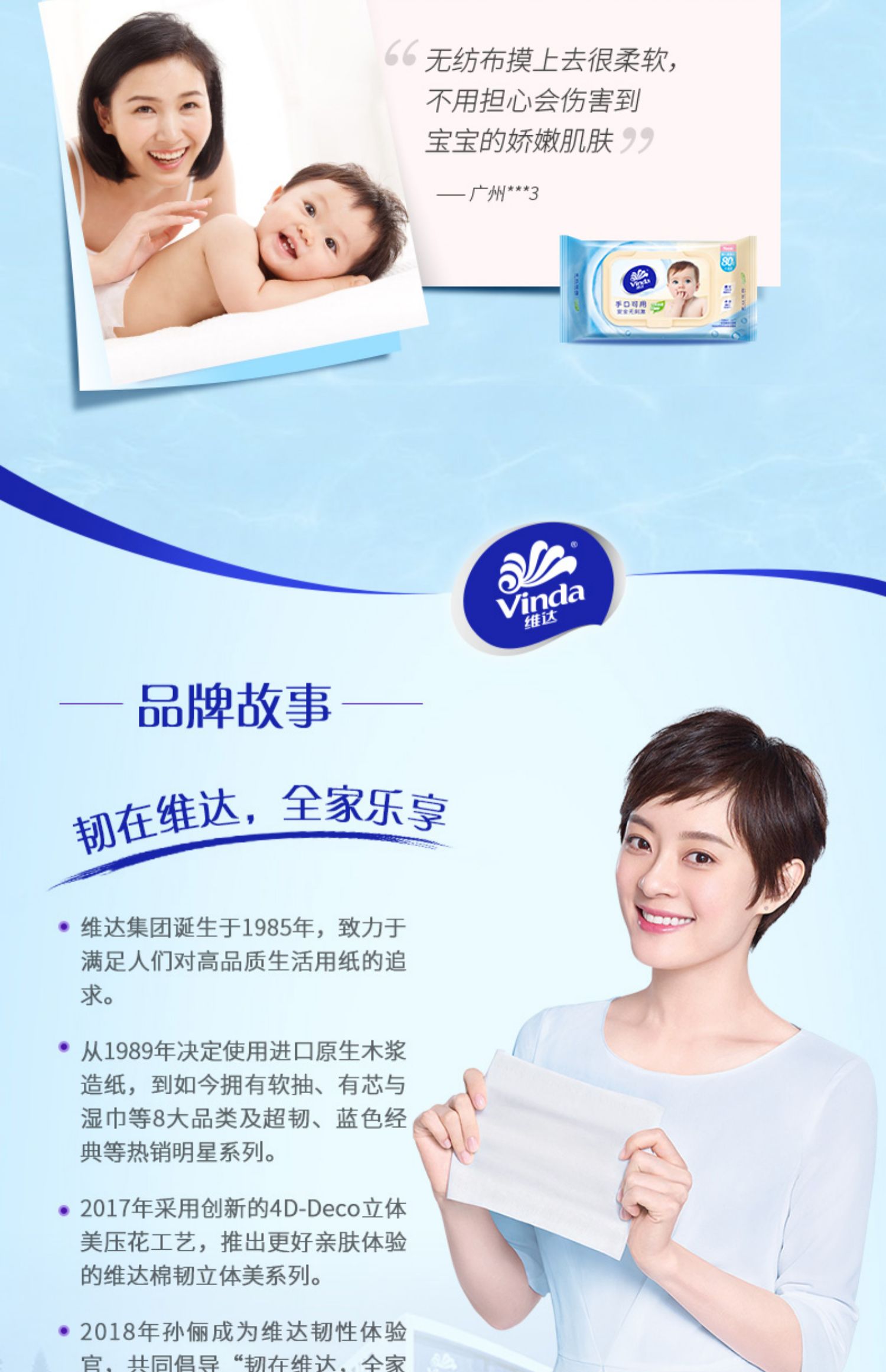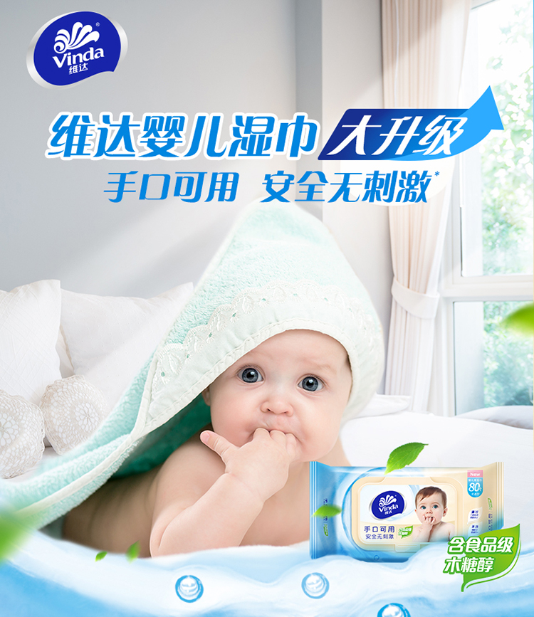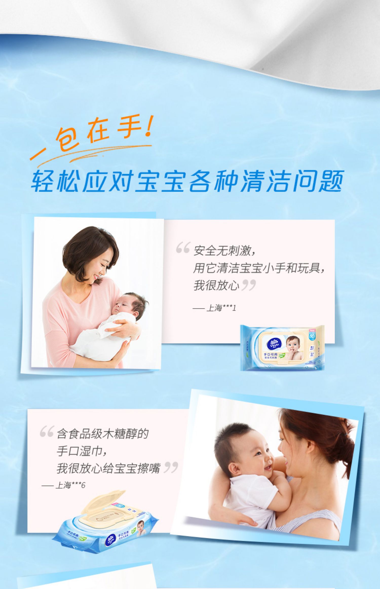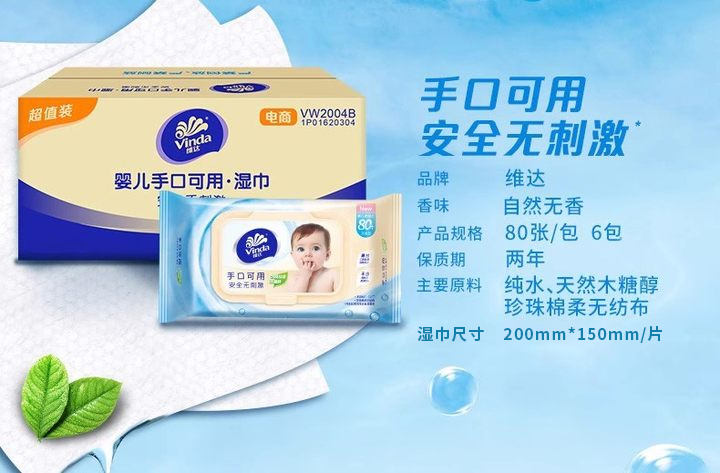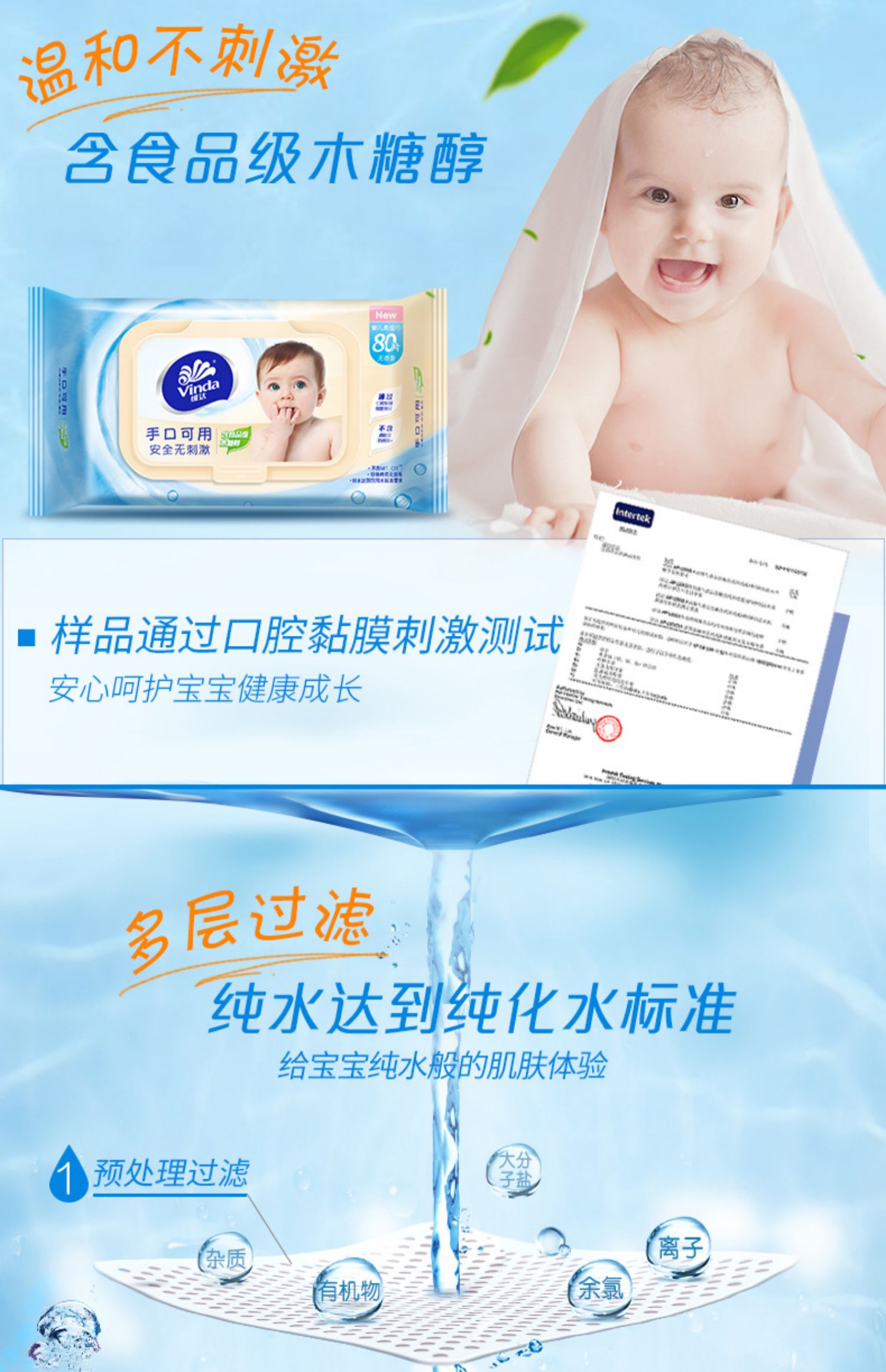 维达婴儿湿巾手口屁可用80片6包整箱宝宝清洁湿巾带盖洁肤湿纸巾
